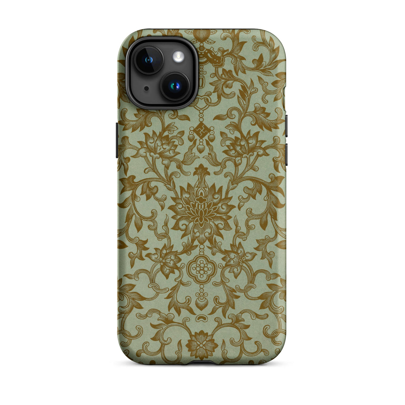 Verdant tendrils entwine, a golden tapestry unfurls. You're whisked into Owen Jones's realm, where East and West collide in a chromatic explosion. This iPhone case isn't just protection; it's a portal to Victorian design revolution.