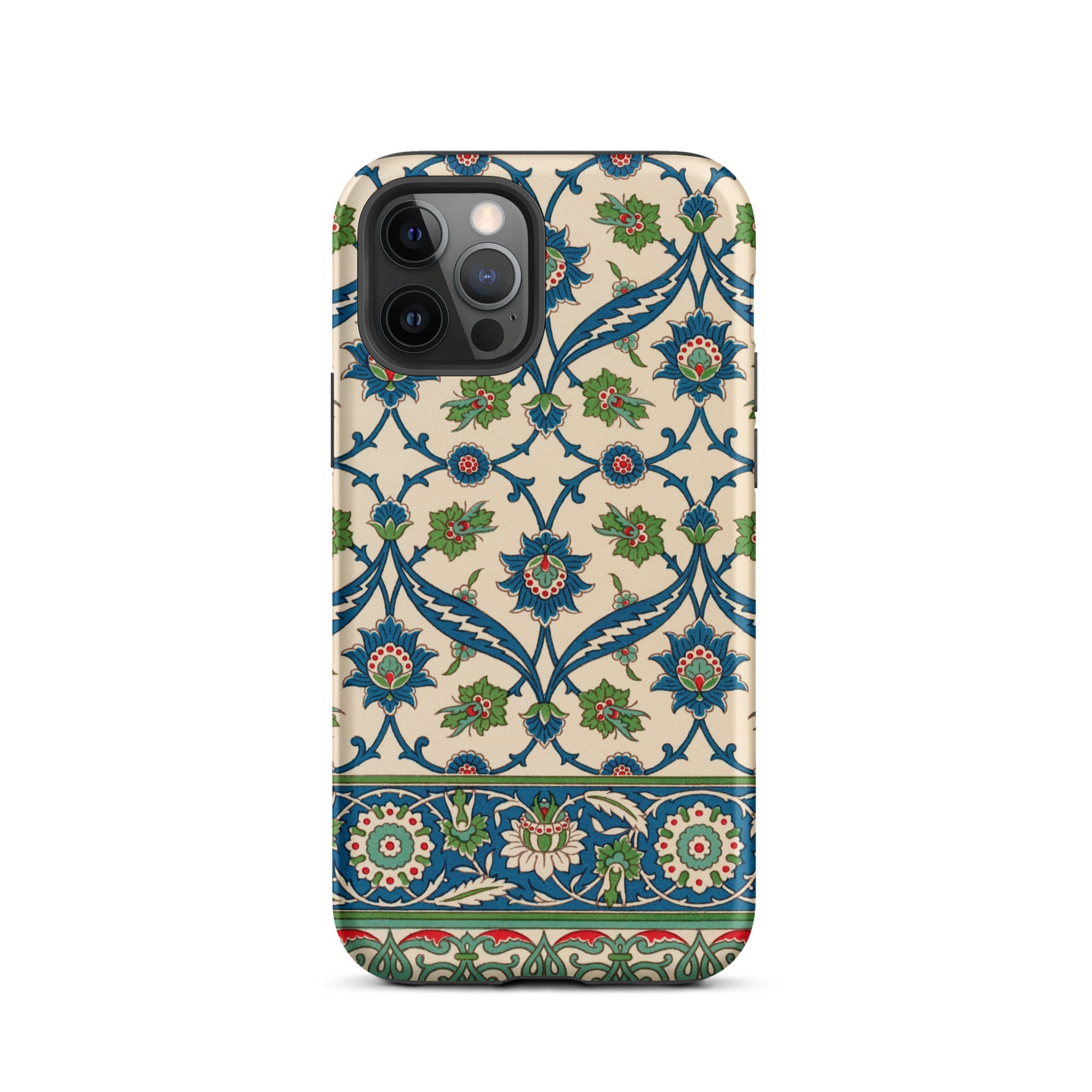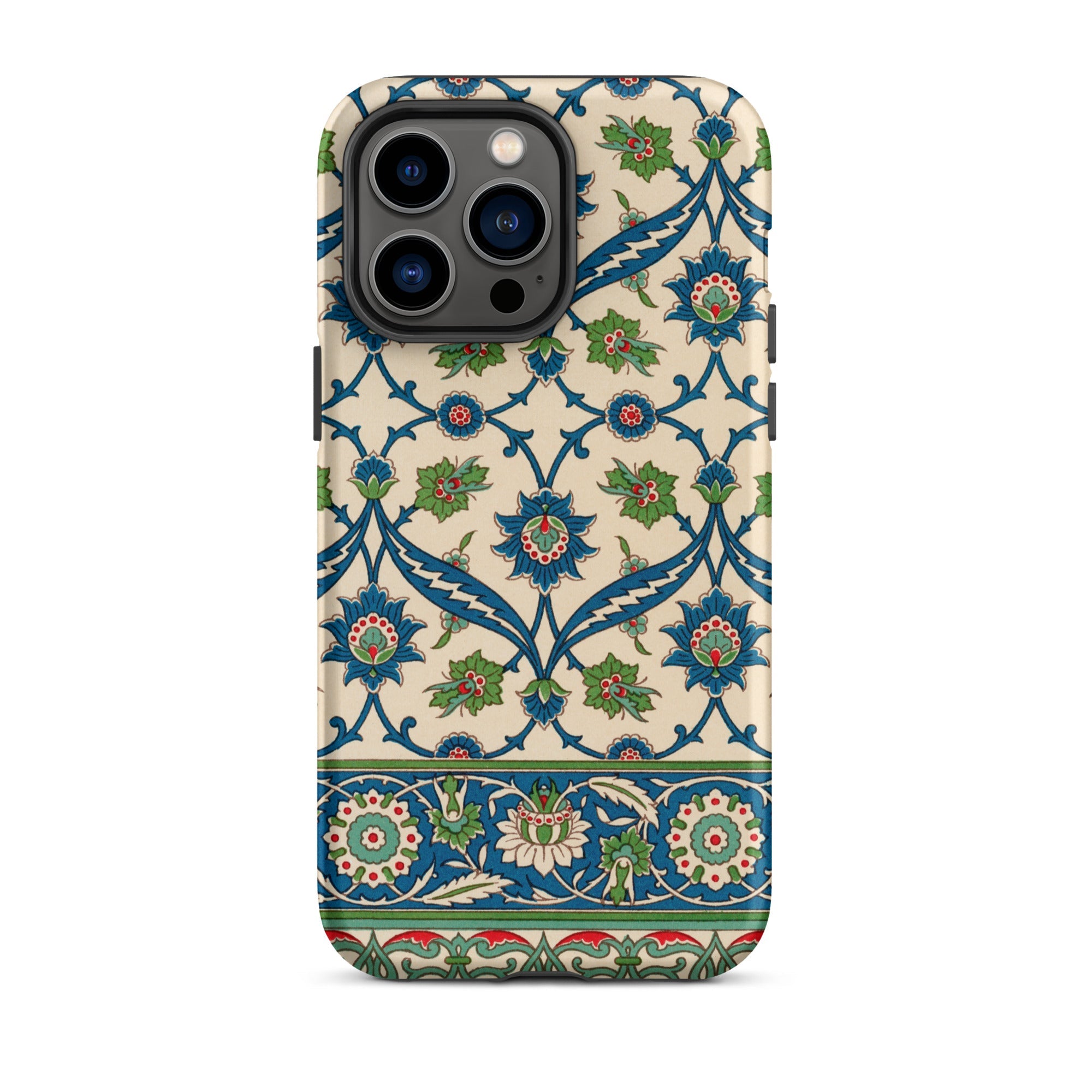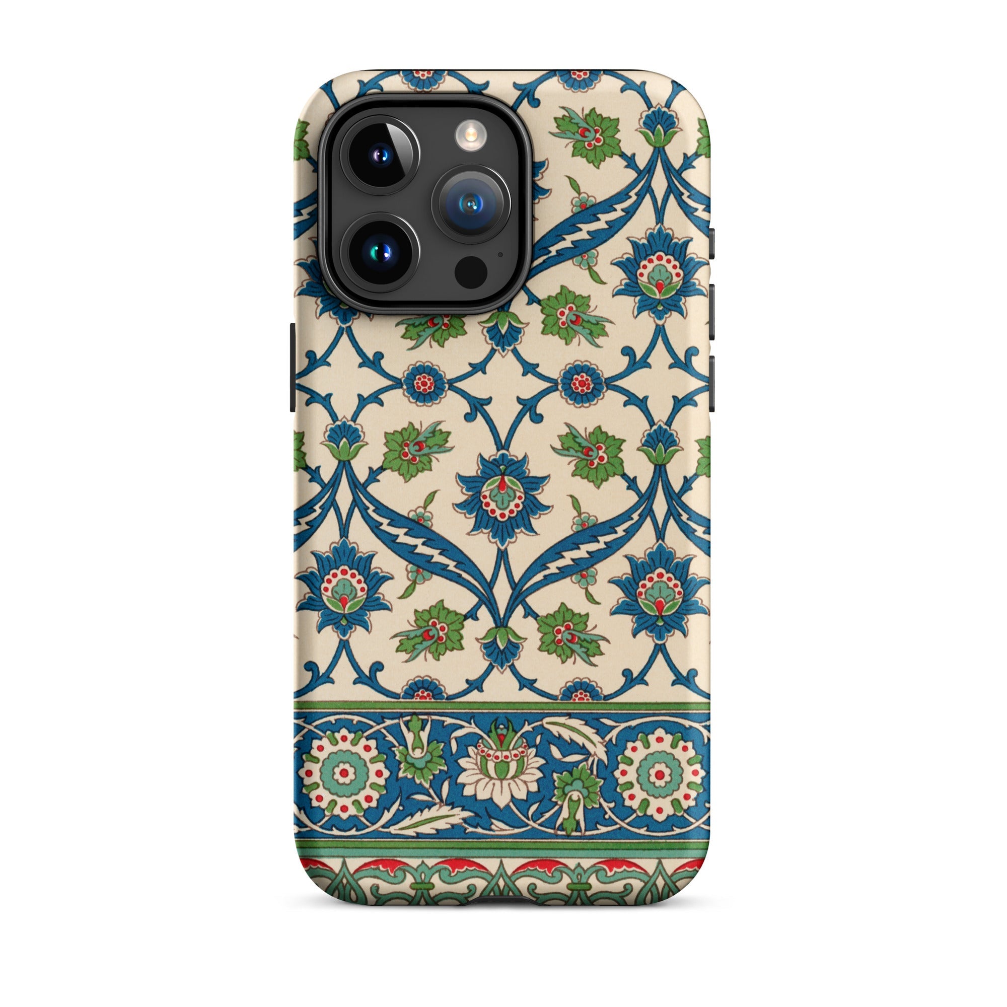 Dive into the enchanting world of Islamic art with this iPhone case featuring Émile Prisse d'Avennes' La Decoration Arabe. This masterpiece transforms your device into a miniature Mamluk treasure, evoking the opulent interiors of Cairo's grand mosques and palaces.