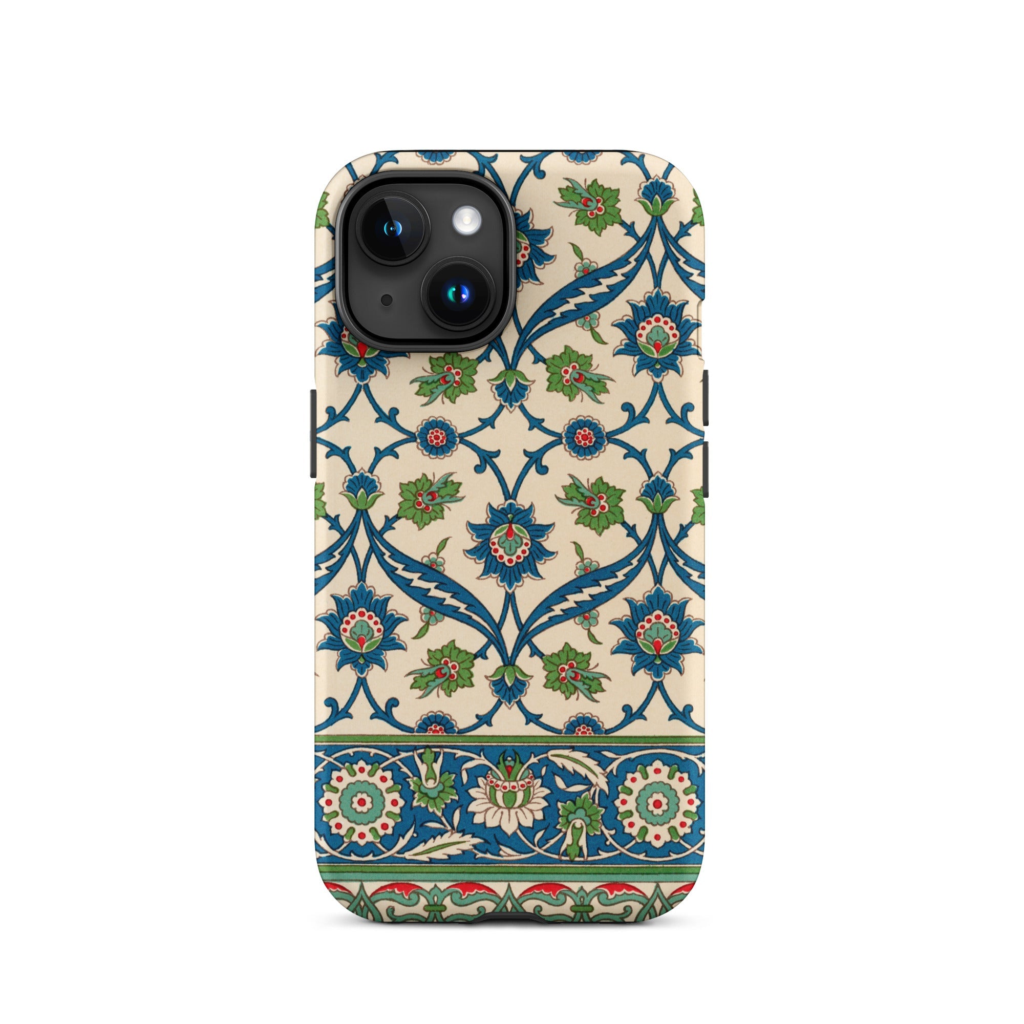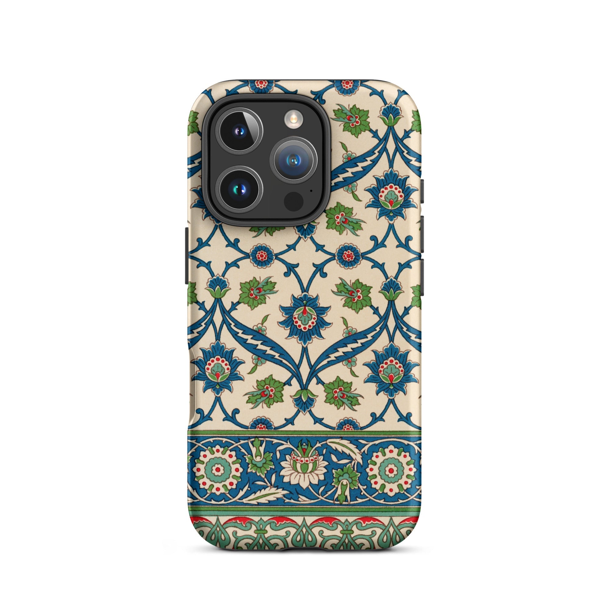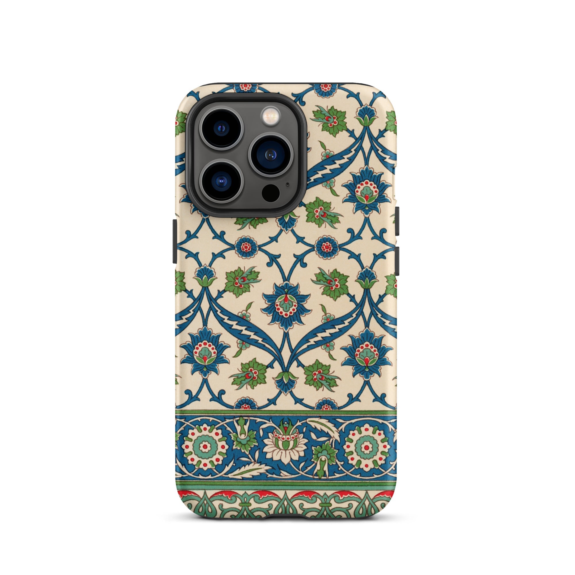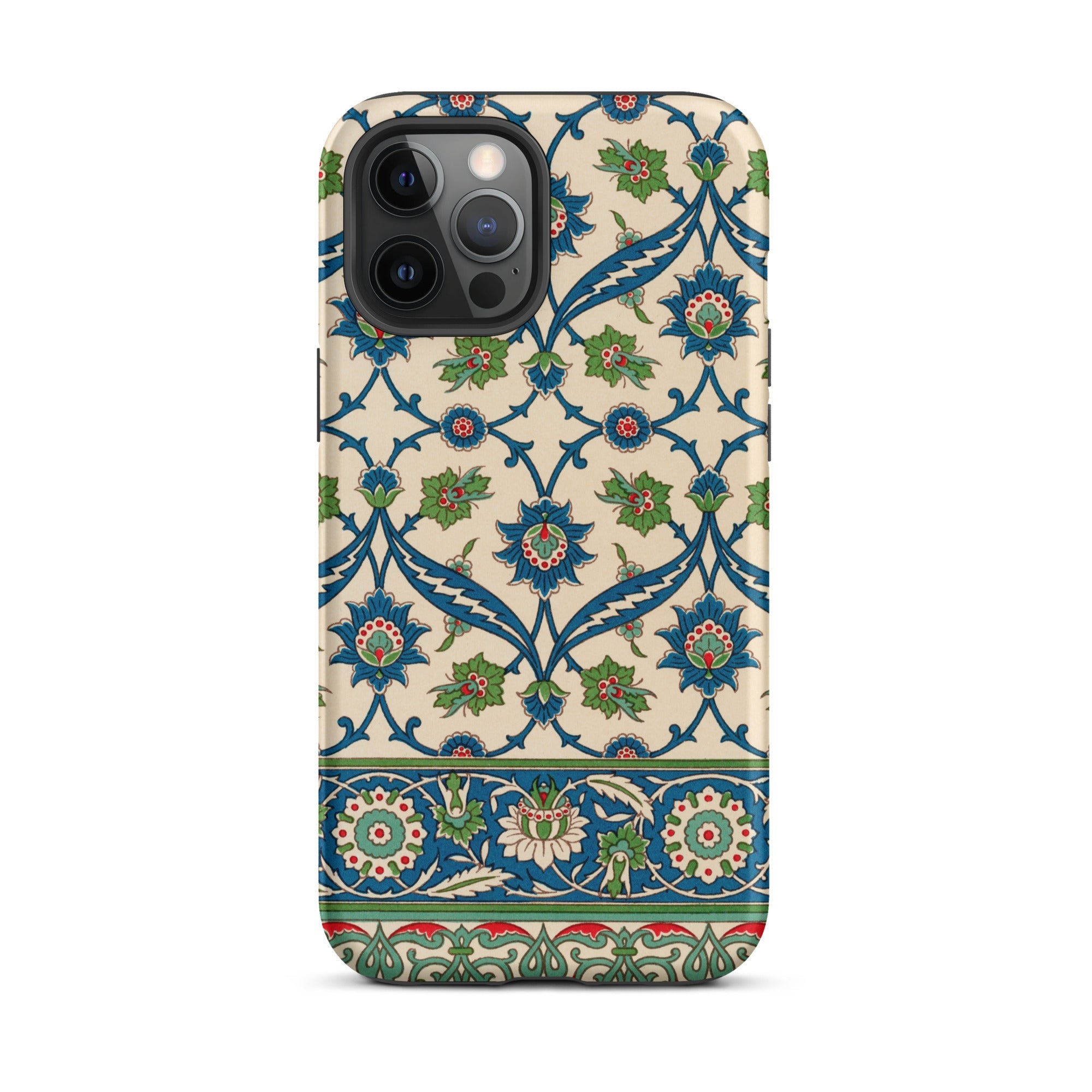 Dive into the enchanting world of Islamic art with this iPhone case featuring Émile Prisse d'Avennes' La Decoration Arabe. This masterpiece transforms your device into a miniature Mamluk treasure, evoking the opulent interiors of Cairo's grand mosques and palaces.