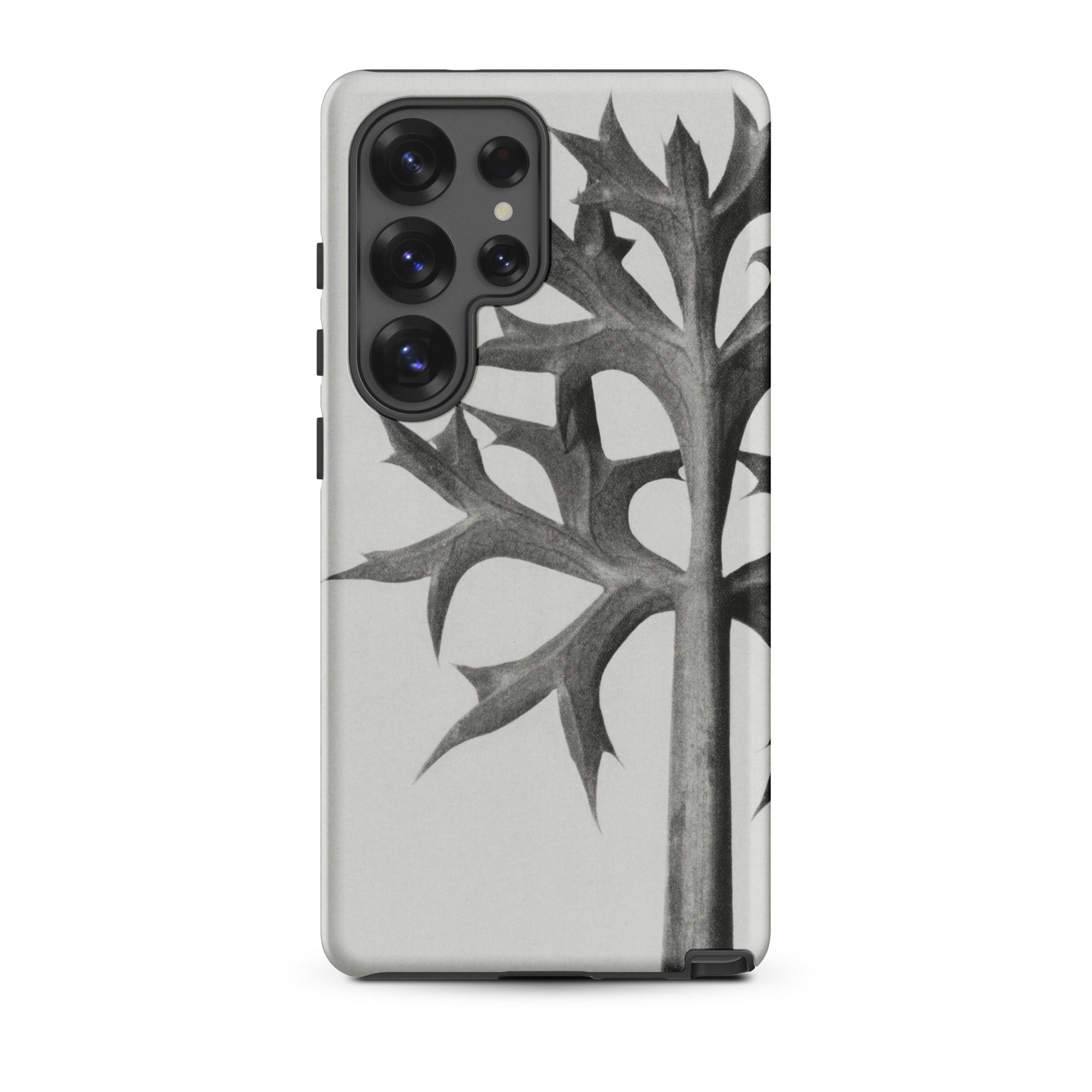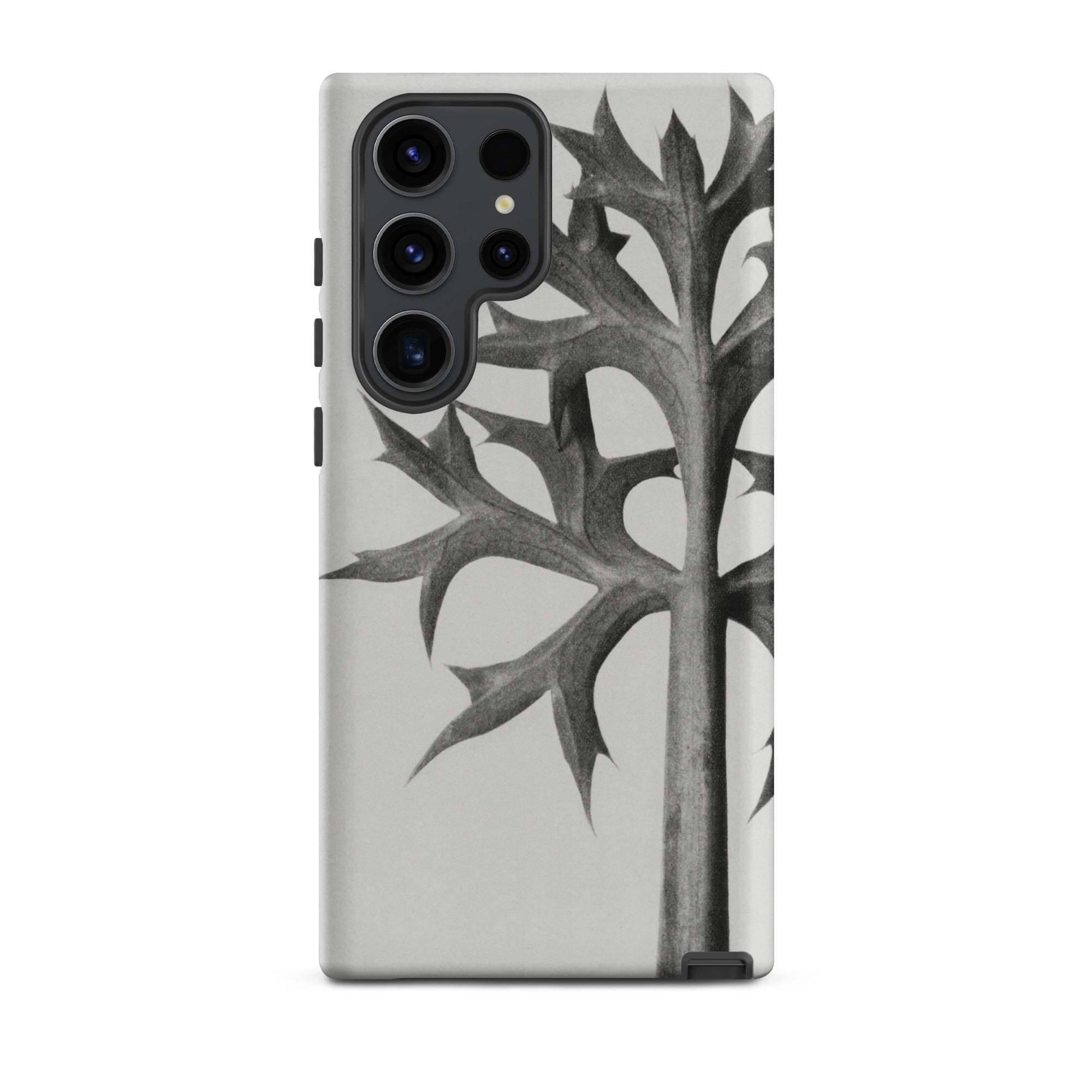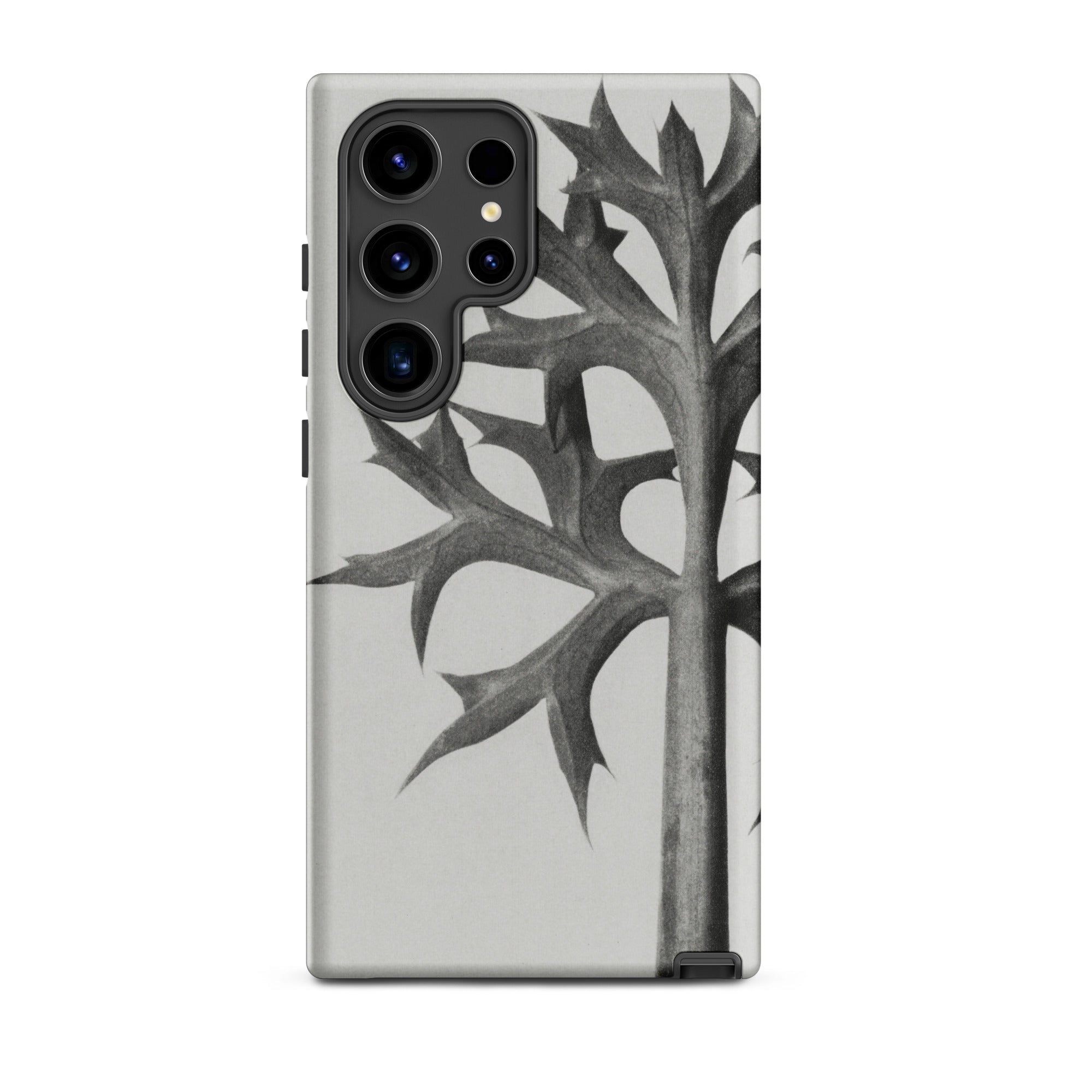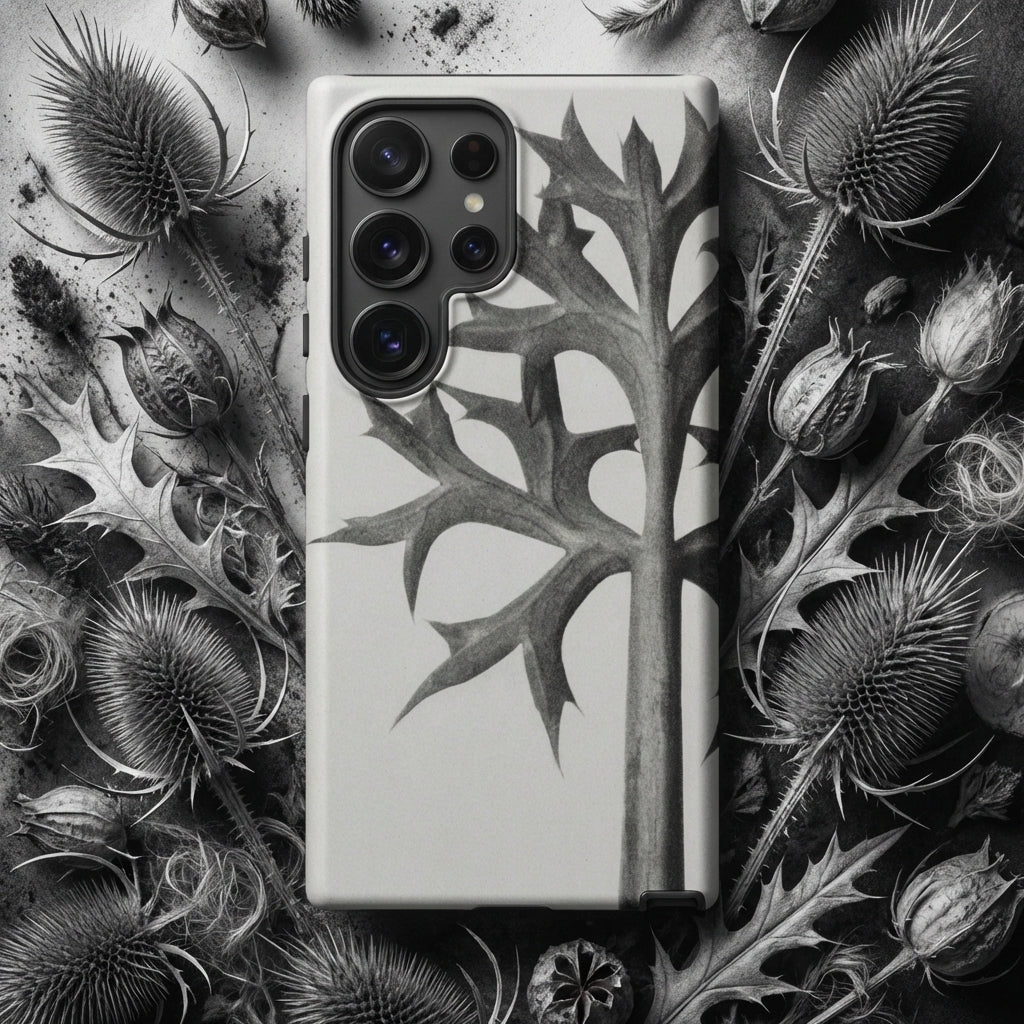 Encase your phone in Blossfeldt's botanical enigma, where the Mediterranean Sea Holly's thorny tendrils dance across your device. This isn't just a case—it's a time capsule from the Neue Sachlichkeit movement, capturing the essence of 1920s German photography on your 21st-century gadget.
