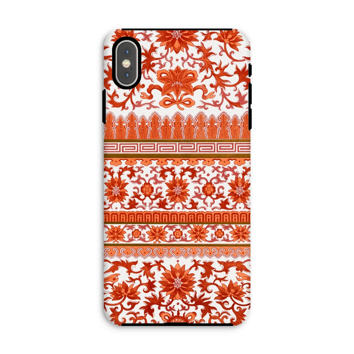 Blazing scrolls unfurl across your iPhone, a digital tapestry of Chinoiserie dreams. Owen Jones' fiery vision ignites the screen, lotus blossoms erupting in scarlet cascades. Greek key borders march beneath feathered fronds, a fusion of East and West that defies Victorian conventions. You're not just protecting your tech; you're wielding a pocket-sized rebellion against the beige tyranny of the everyday.