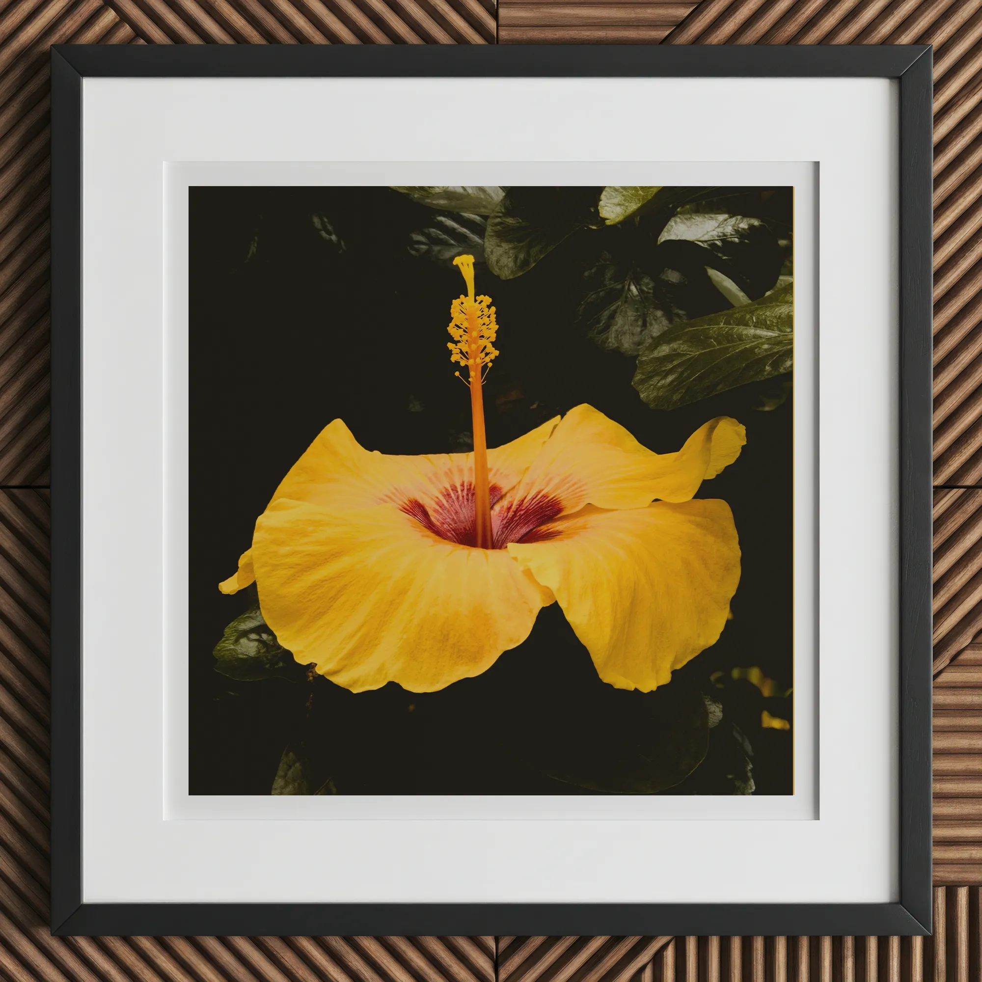 Display this yellow hibiscus print to infuse your space with Southeast Asian charm, inviting contemplation of natural wonders and far-flung adventures. Perfect for tropical decor enthusiasts, travel aficionados, and those who cherish nature's ephemeral beauty, this Hoi An floral photograph promises to be a daily visual symphony in your home or office.