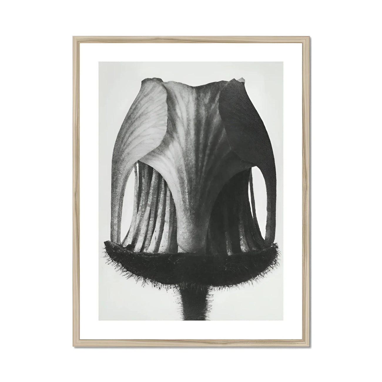 This luscious Karl Blossfeldt photograph unveils the hidden artistry of nature. A striking black and white print capturing the Geum rivale, or nodding avens flower, in its budding stage. Blossfeldt's masterful lens transforms this humble water avens plant into a sculptural wonder, revealing intricate details you've never noticed before.