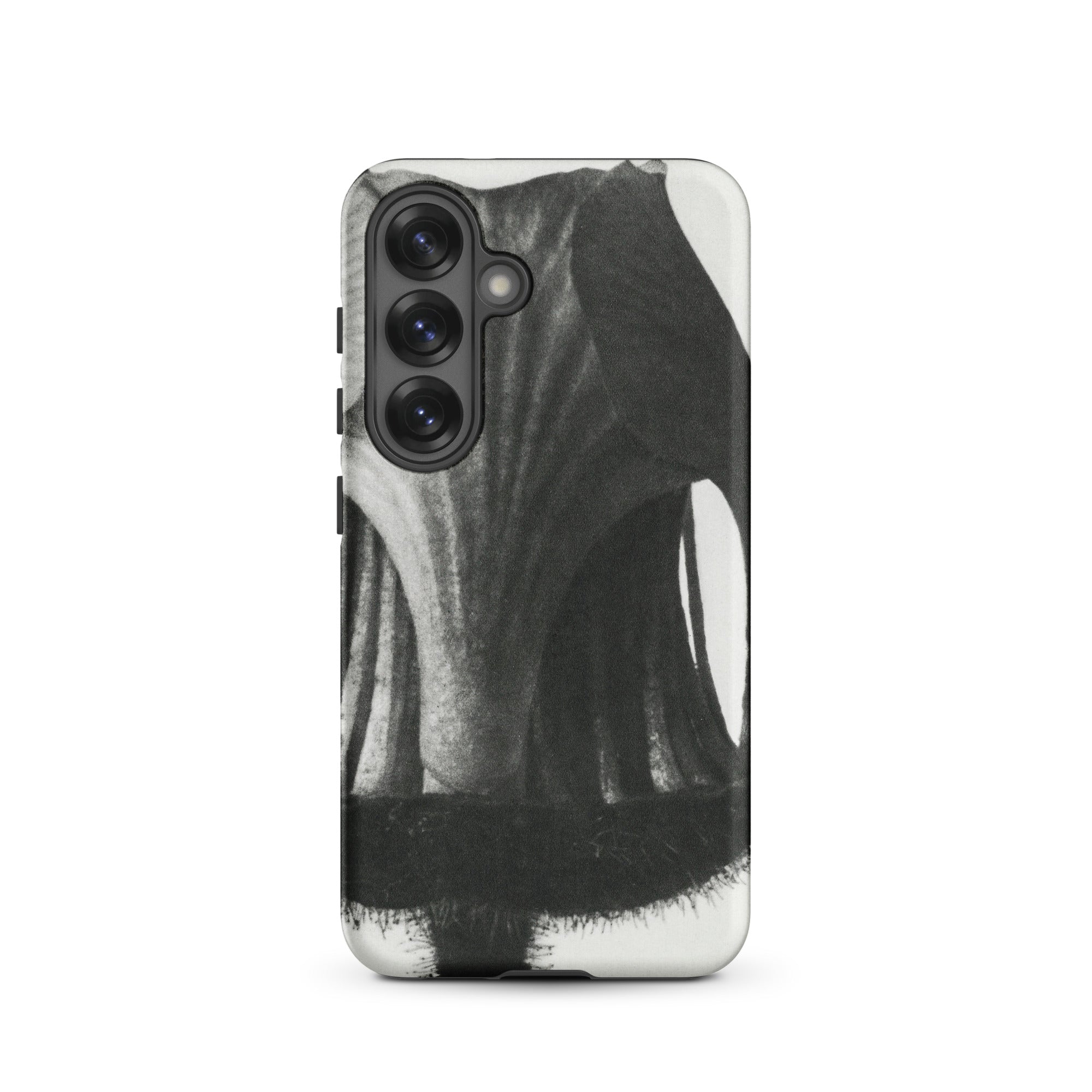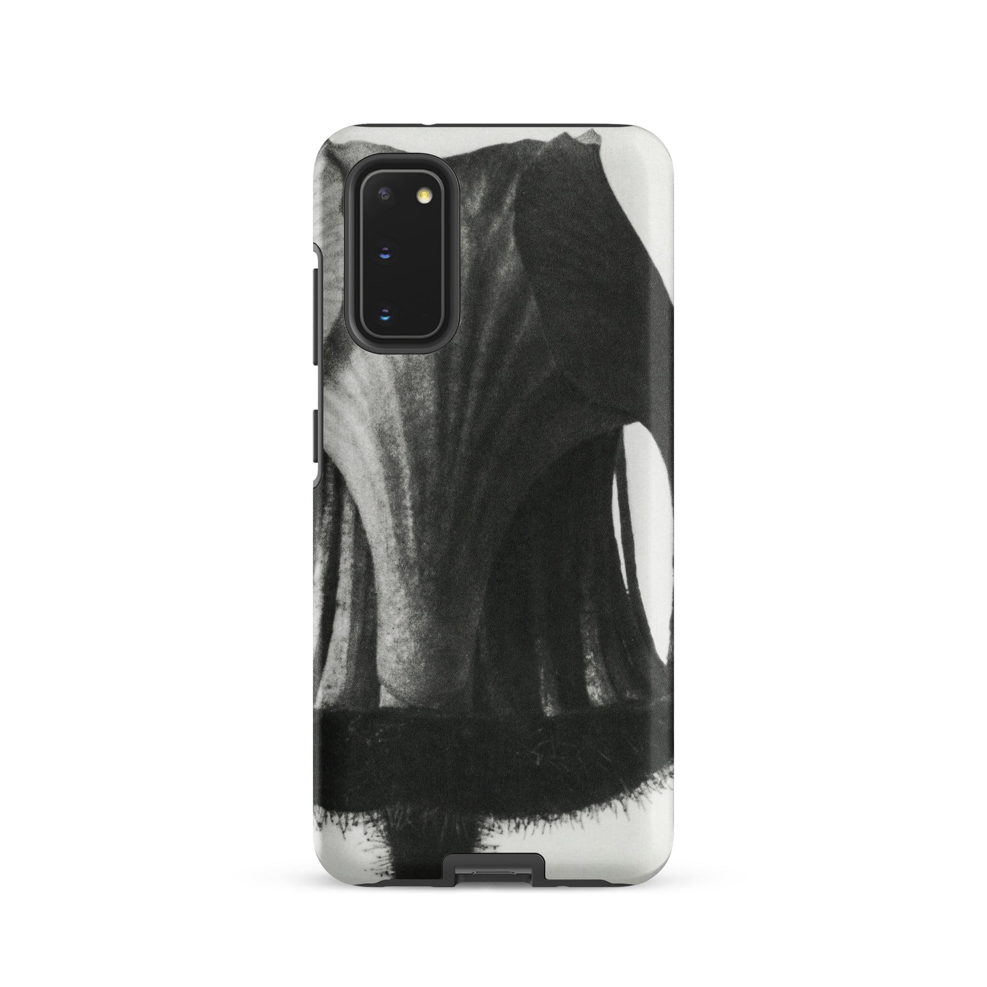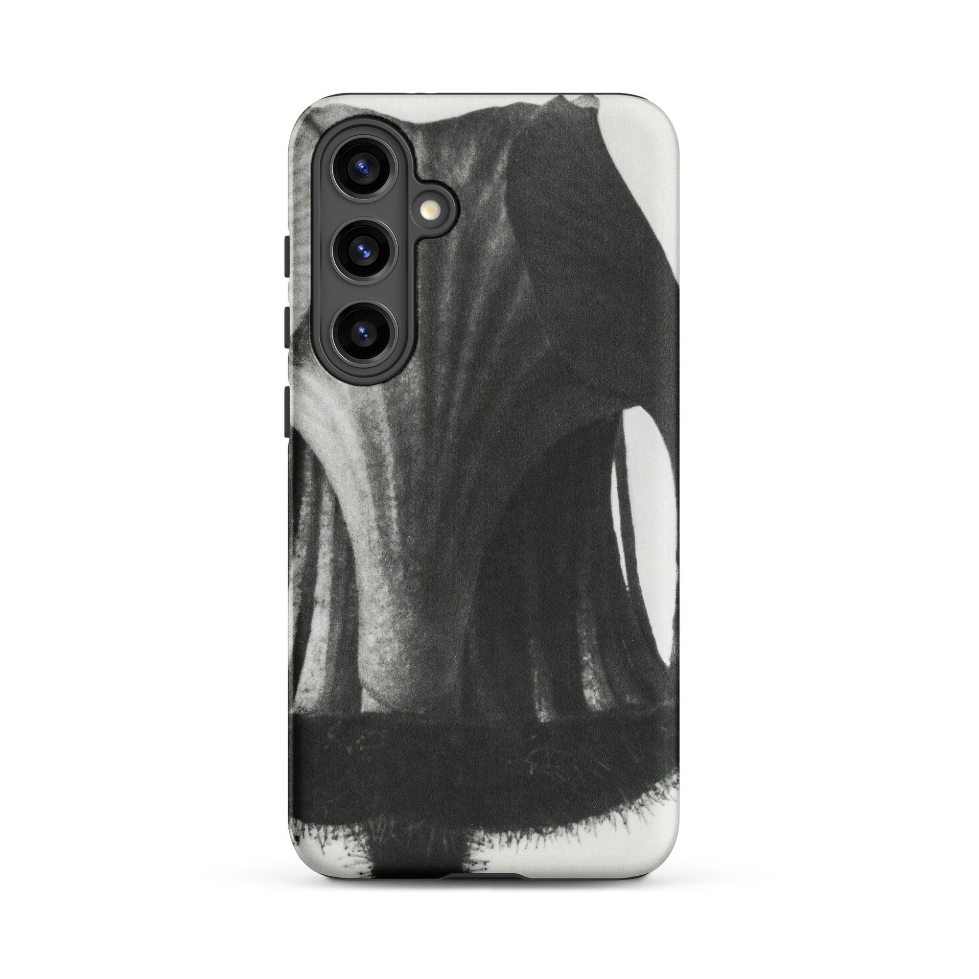 On this Samsung case, the flower’s curled posture suggests a quiet gravity, a slow bow to pollinators and wind. A fusion of botanical photography, modernist abstraction and organic symmetry, it protects your device with the same resilient grace that lets these blooms endure spring floods and mountain rains.