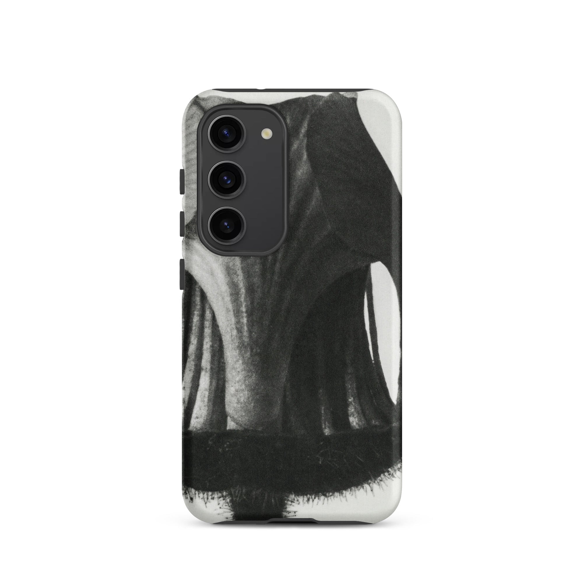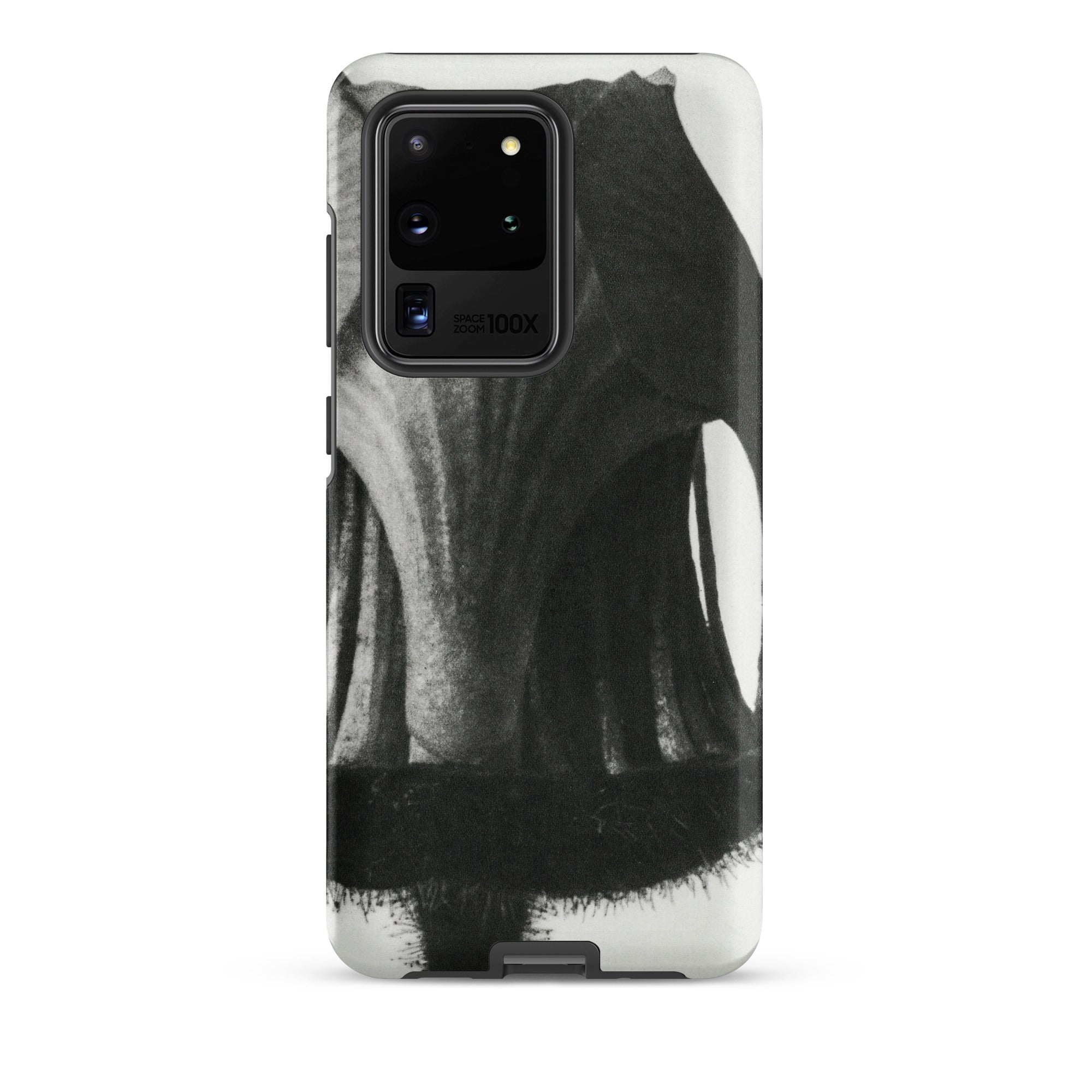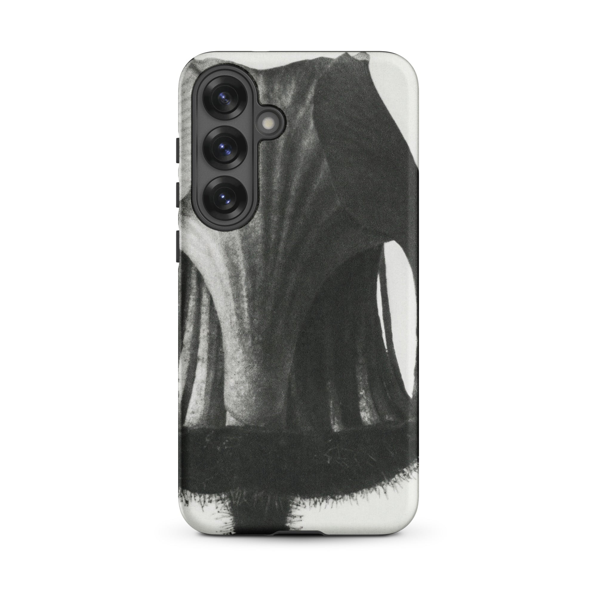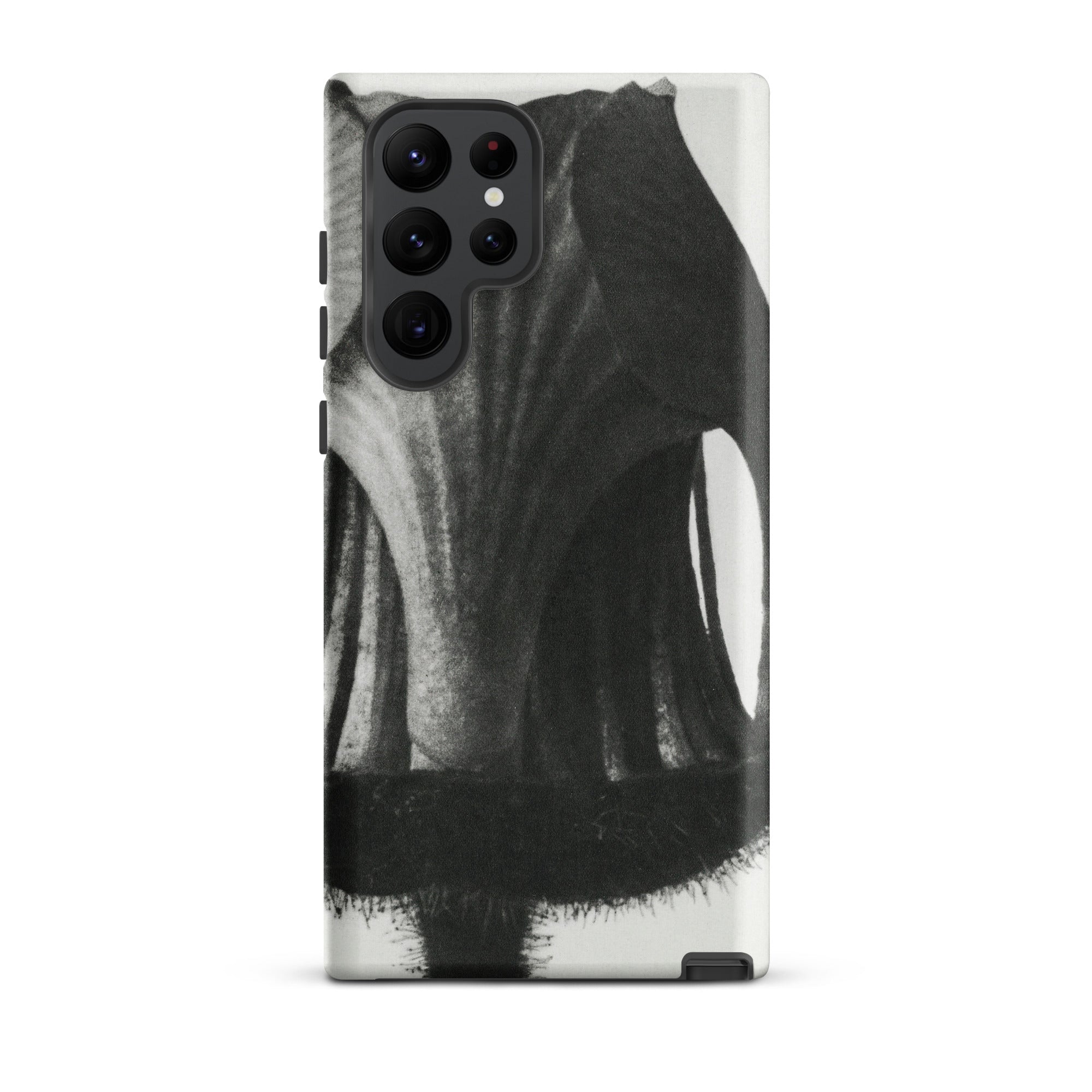 On this Samsung case, the flower’s curled posture suggests a quiet gravity, a slow bow to pollinators and wind. A fusion of botanical photography, modernist abstraction and organic symmetry, it protects your device with the same resilient grace that lets these blooms endure spring floods and mountain rains.