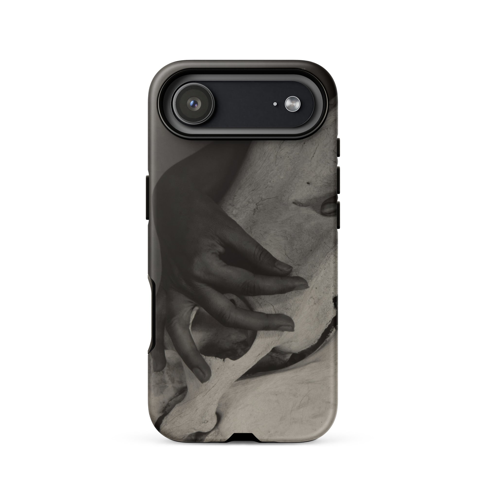 Crafted for lovers of high-contrast black-and-white art, this case transforms your device into a meditation on time, decay, and memory. A statement of minimalist surrealism, it resonates with those who find beauty in the unresolved, the unspoken. Each touch is a quiet reminder: flesh fades, but form endures—etched in light, held in shadow, forever suspended in silver grain.