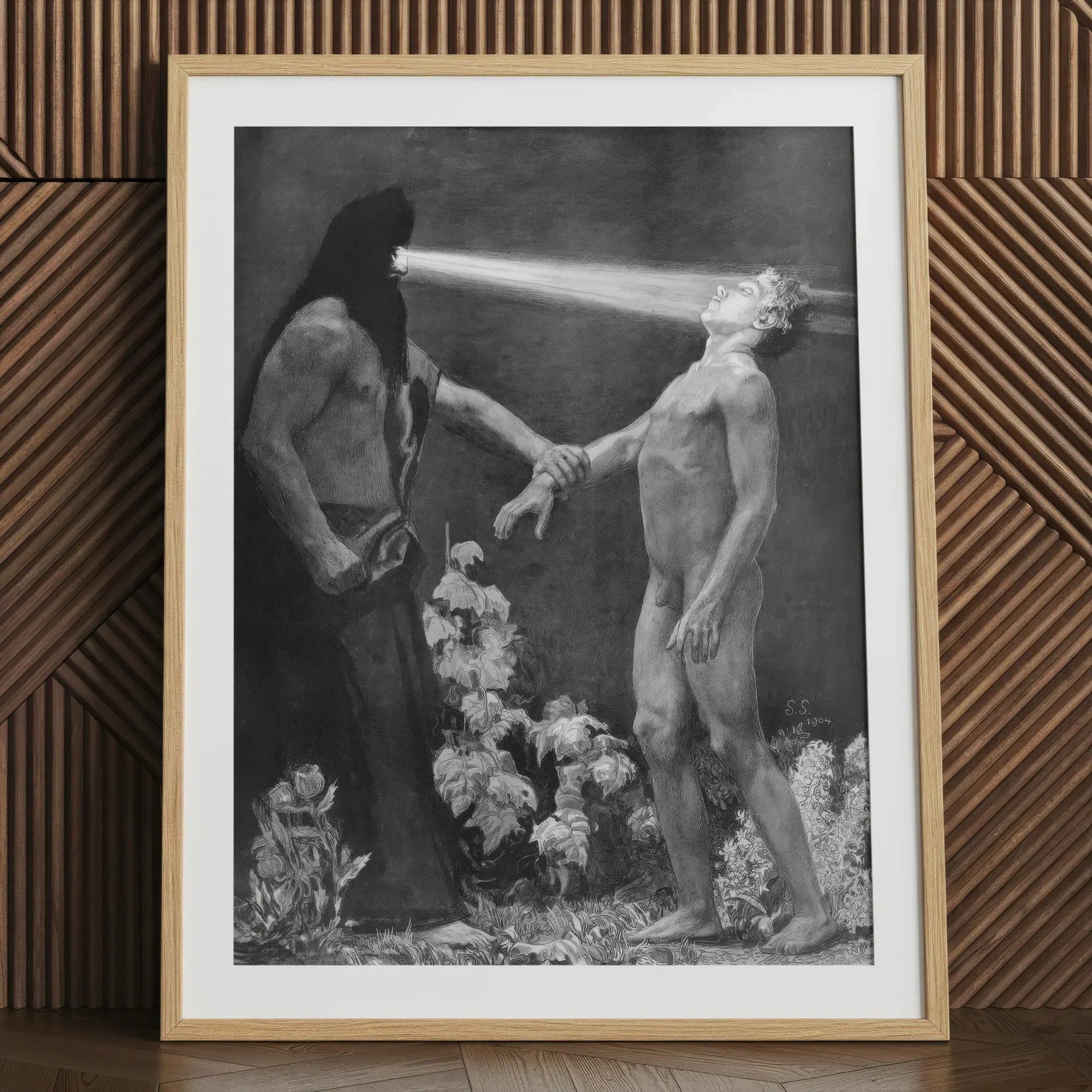 Schneider, master of moral eroticism, transforms optical rays into metaphysical instruments, visualizing the transfer of will itself. The palette’s pale ochres and stormed umbers pulse with psychological voltage, echoing Symbolist obsessions with purity, temptation, and bodily redemption.
