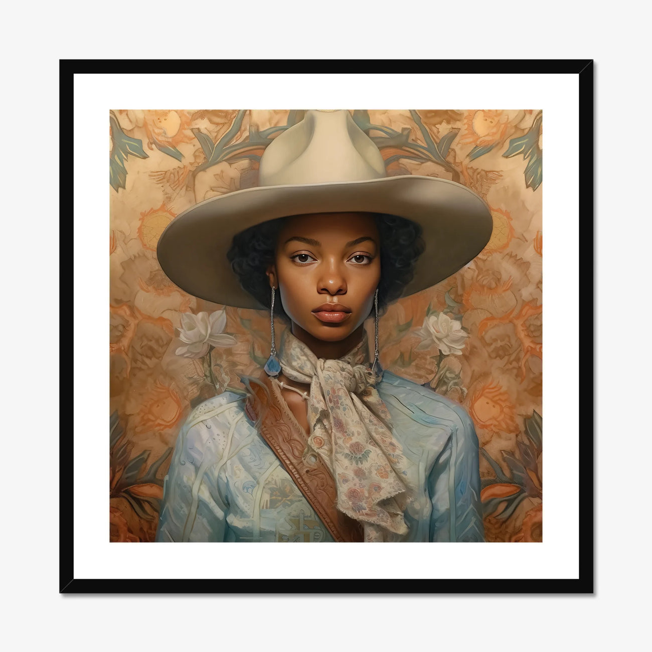 Imani does not stand in history’s margins. She is its beating heart, a reclamation in motion, an anthem in color, a promise carried on the wind. This framed canvas is not just a portrait. It is a testament, a reckoning, a vision of Black cowgirl strength, lesbian pride, and the unstoppable force of those who forge new frontiers.
