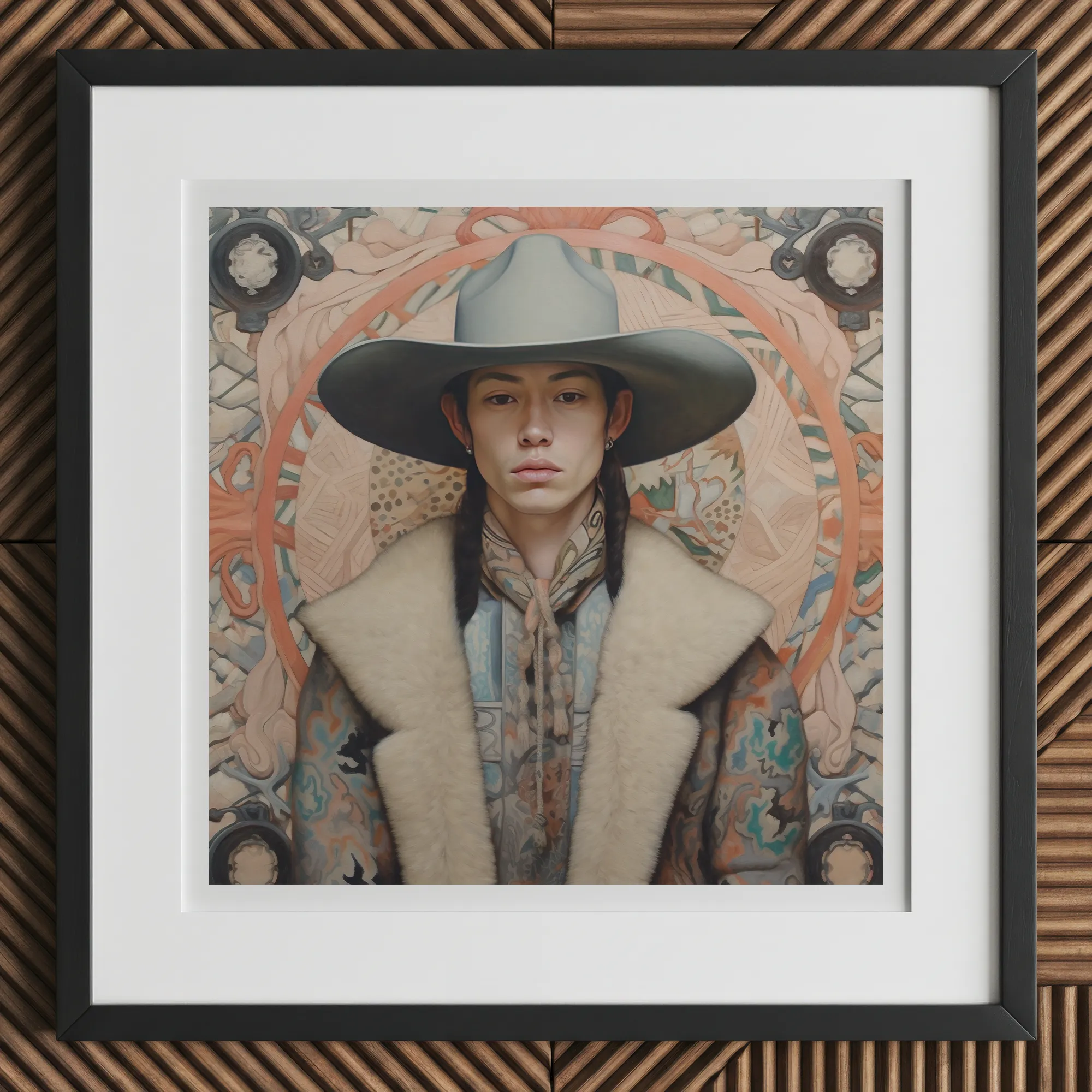 The West was never a single story. It was a thousand untamed lives, colliding like hooves against dry earth, shifting like wildfire across an open range. And here stands Jacy—a gay Native American cowboy immortalized in this art print—not as an echo of history, but as a force that rewrites it.