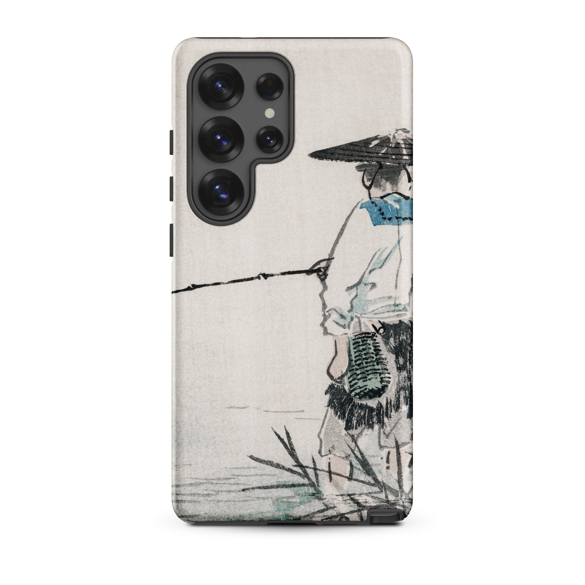 Embrace the zen of Japanese fishing culture, wrapped in a durable case that marries form and function. Let Bairei's fisherman be your guide, a reminder of simpler times amid the digital chaos.