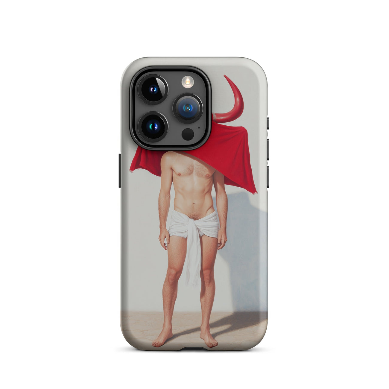 This isn't just a phone case – it's a conversation starter, a pocket-sized gallery of symbolism. The crisp linework and bold red against monochrome evoke the drama of the bullring, while whispering of deeper themes – cultural identity, human-animal duality, the theatricality of strength.