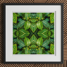 You plunge into a verdant vortex of symmetry and surprise with this kaleidoscopic leaf print. Botanical brilliance meets digital wizardry as ordinary foliage from Koh Chang's jungles transforms into an extraordinary fractal feast. Mirrored and multiplied, the intricate veins and electric hues of tropical leaves birth mesmerizing mandalas that blur reality's edges.