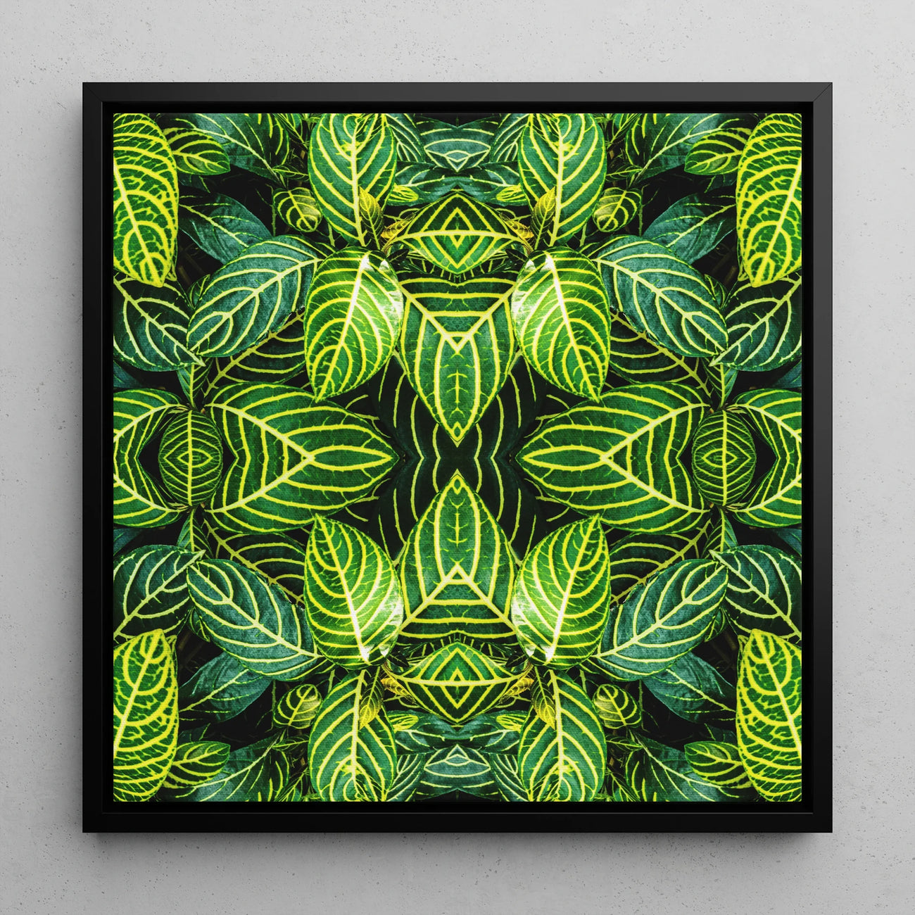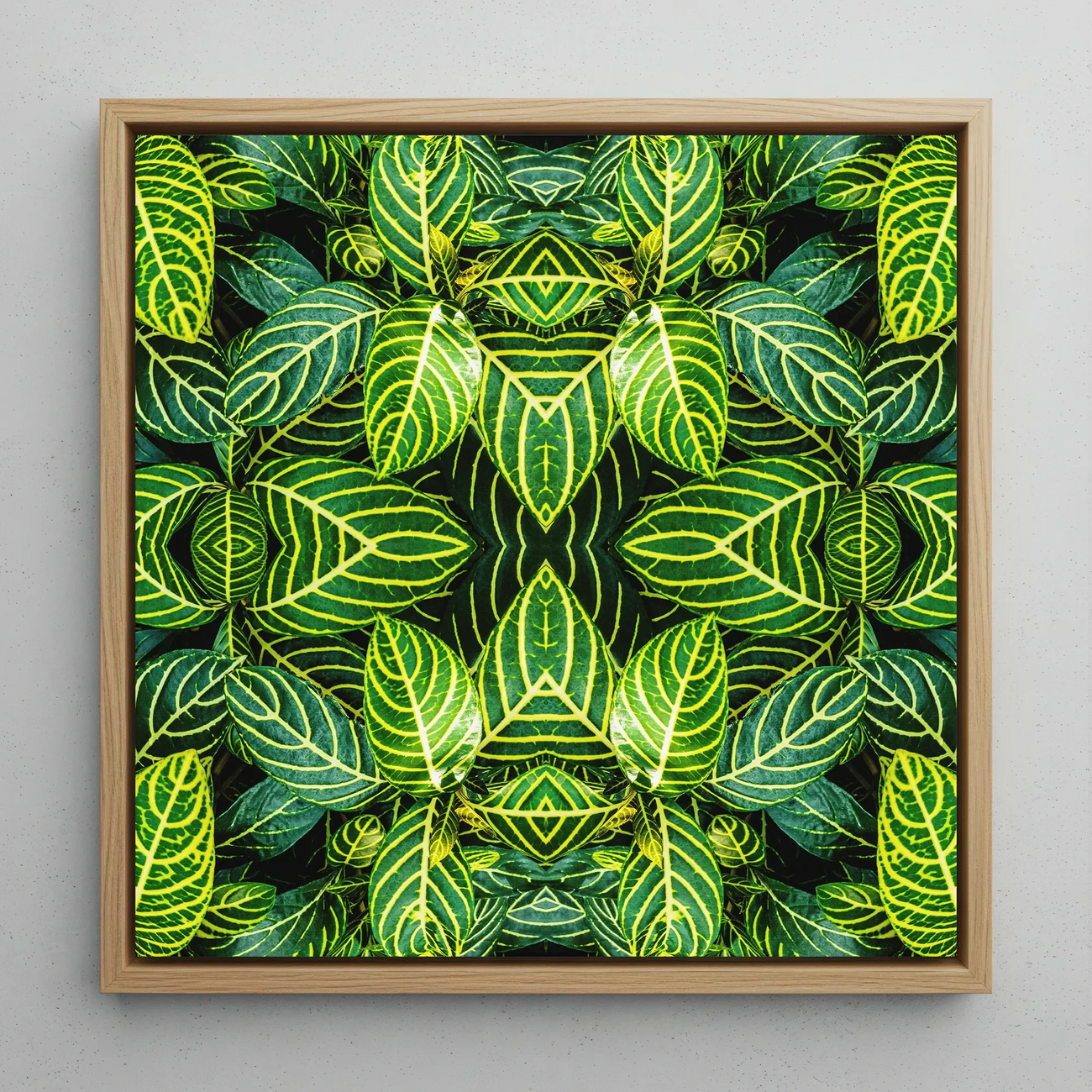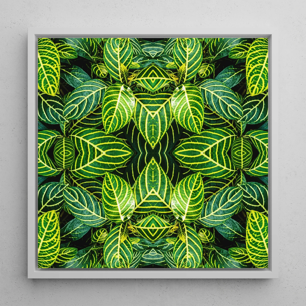 This isn't just wall decor – it's a portal to photosynthetic nirvana. The symmetrical sorcery transforms mundane leaves into a botanical Rorschach test, challenging perceptions and igniting synapses. Each mirrored curve and replicated vein speaks to the fractal patterns underpinning reality itself.