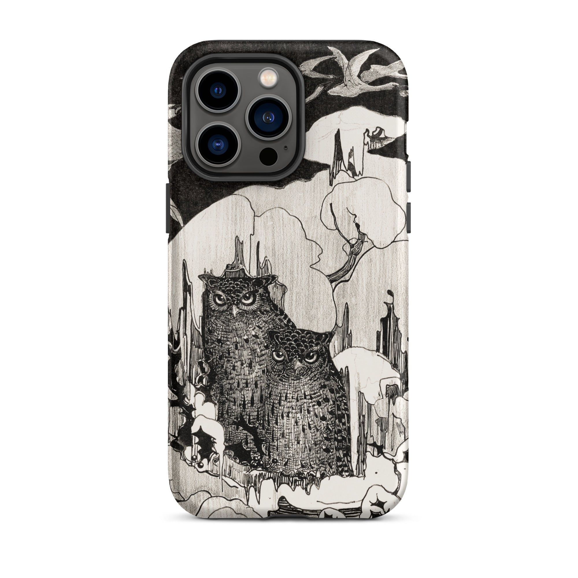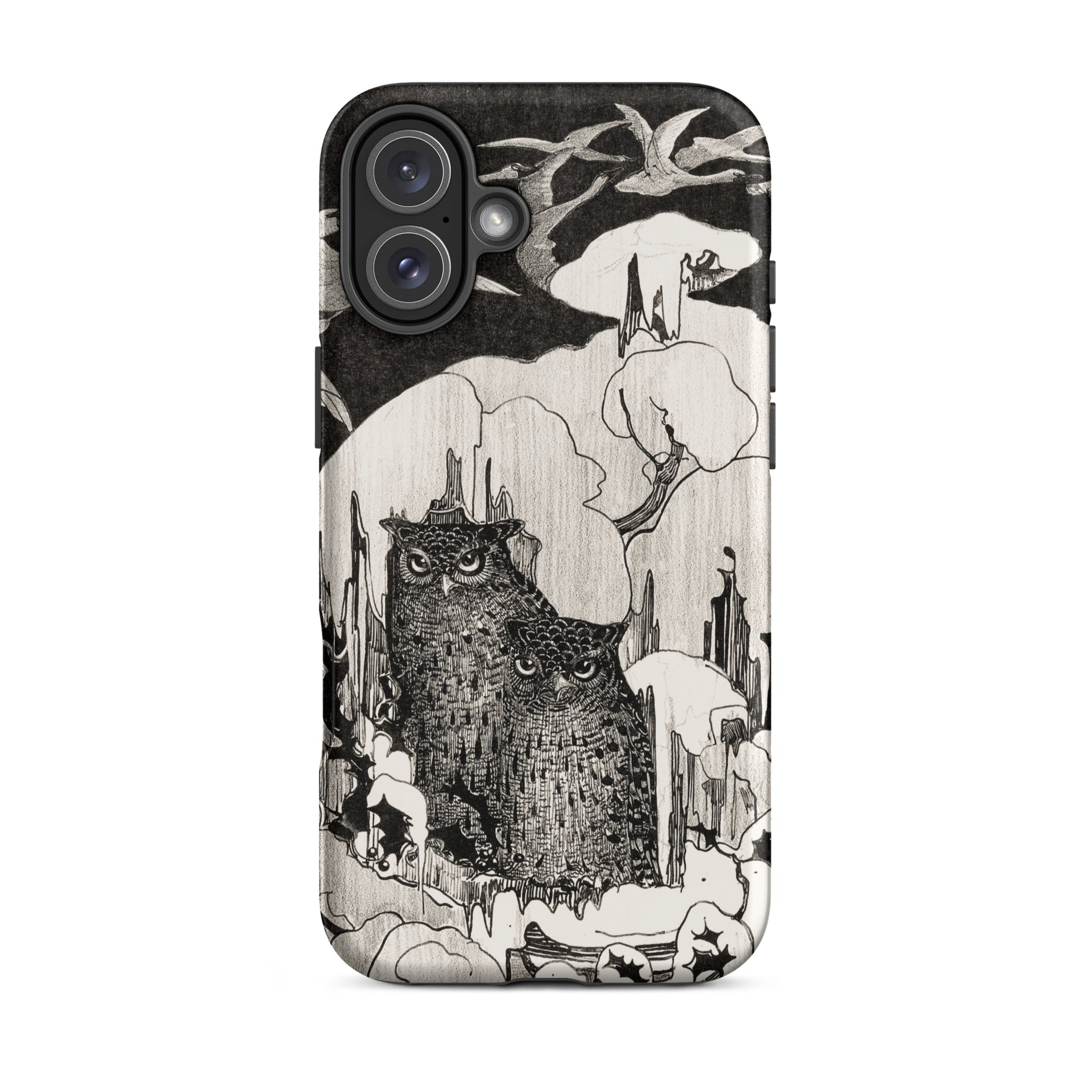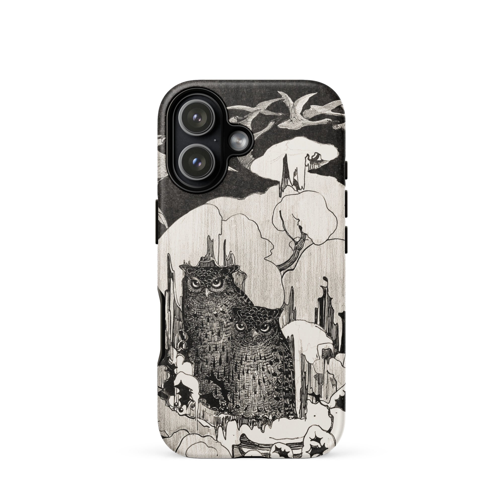 This isn’t a wildlife illustration. It’s an allegory of winter’s patience. The case preserves van Hoytema’s 1902 lithograph not as ornament but as atmosphere: nocturnal guardians in a dream-drenched winterscape. Let your phone become a woodland reliquary for the quiet violence of snow, bark, and owl-glare.