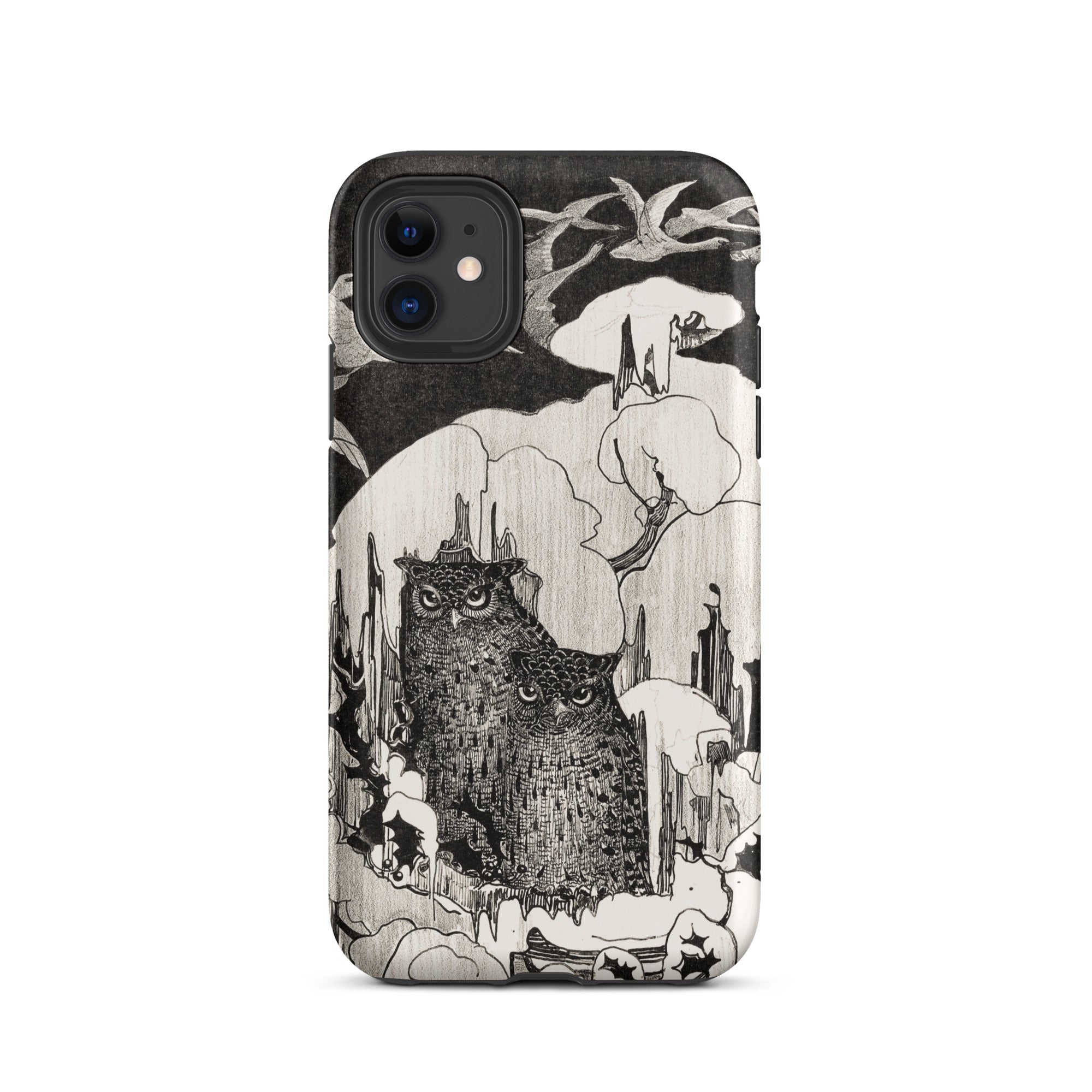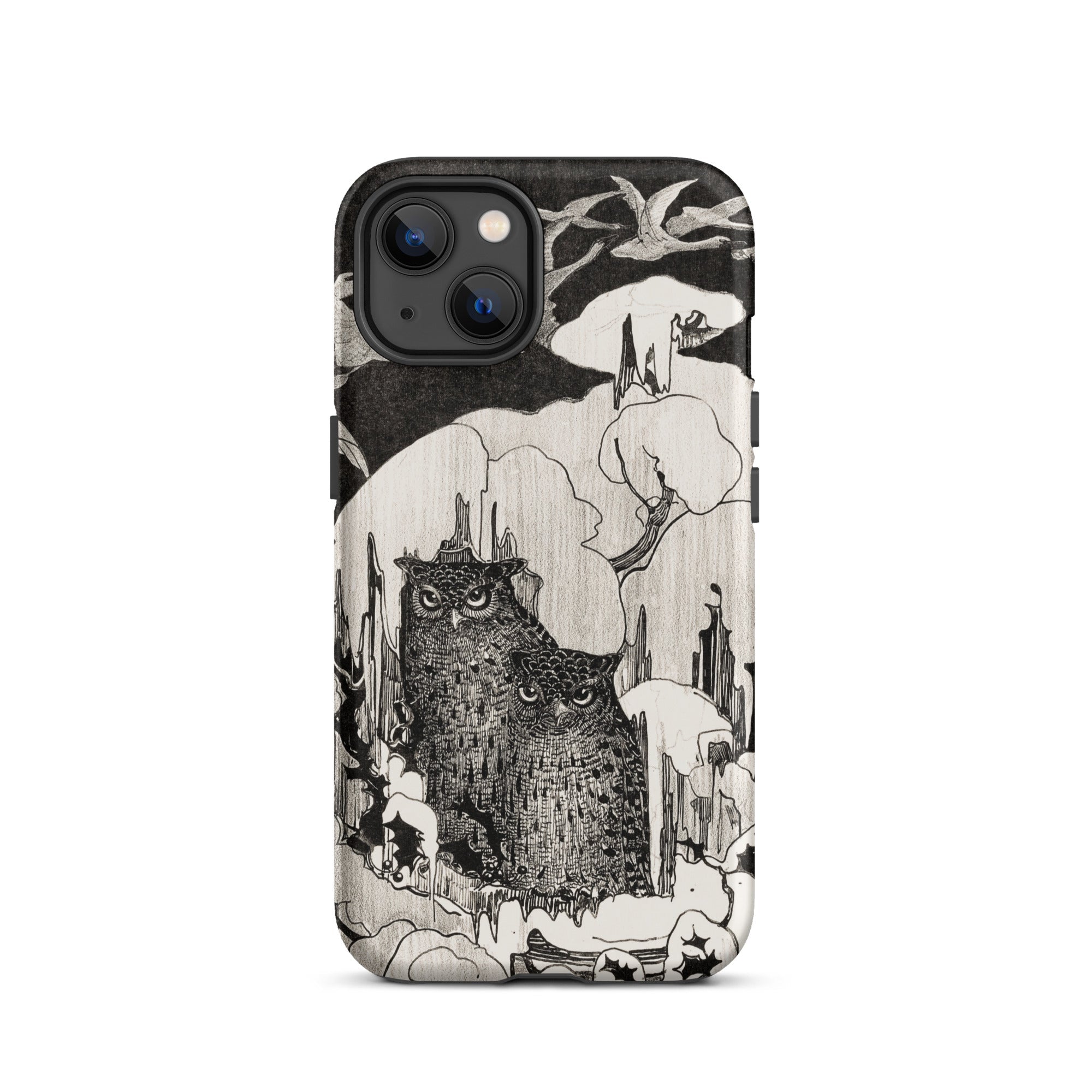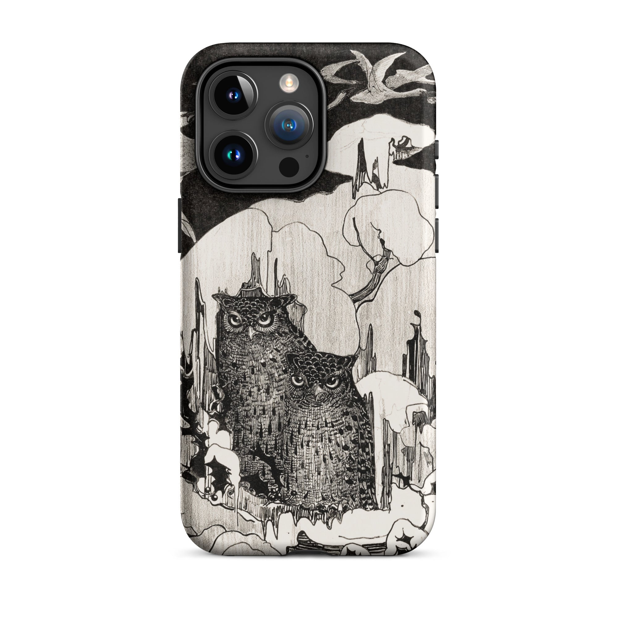 This isn’t a wildlife illustration. It’s an allegory of winter’s patience. The case preserves van Hoytema’s 1902 lithograph not as ornament but as atmosphere: nocturnal guardians in a dream-drenched winterscape. Let your phone become a woodland reliquary for the quiet violence of snow, bark, and owl-glare.