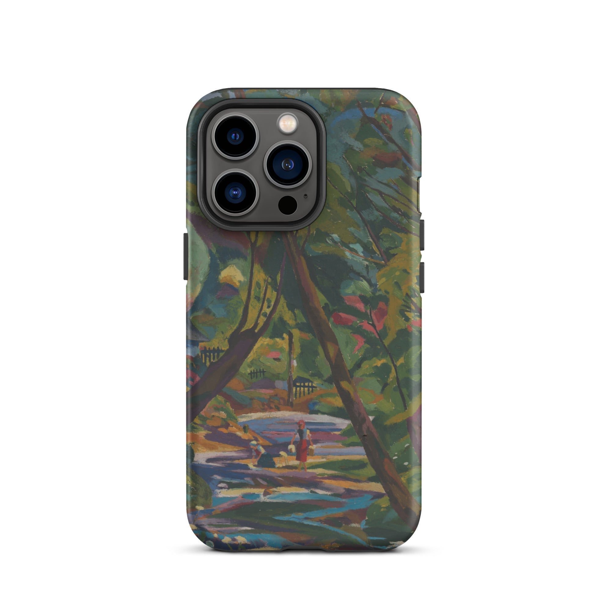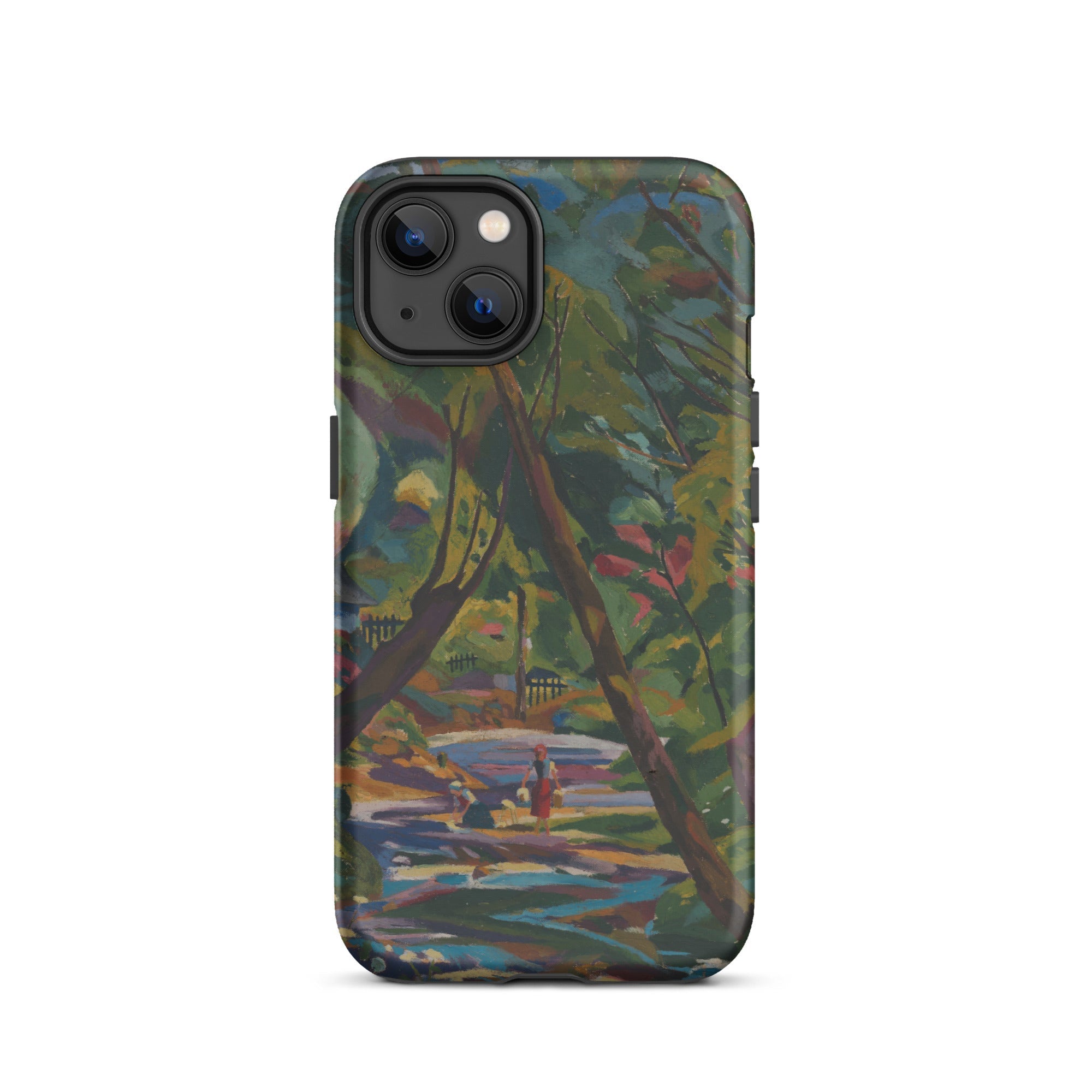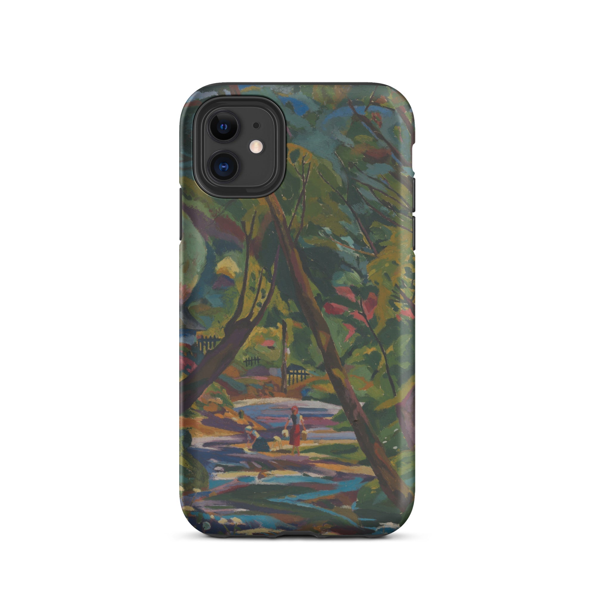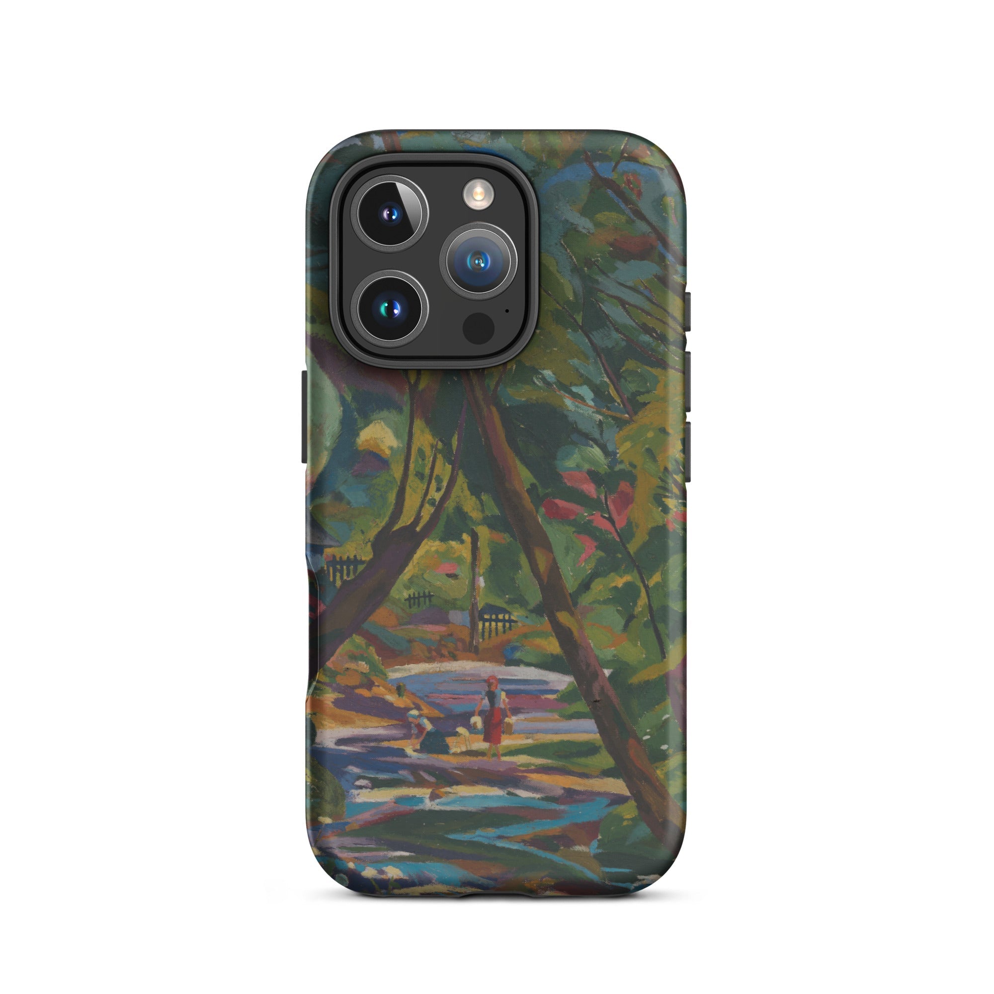 A river of color, a forest of untamed rhythm—Kubinsky Stream by Arnold Peter Weisz-Kubínčan spills across this Expressionist art iPhone case like a dream half-remembered. Verdant shadows pulse with energy, slashed by bold reds, fractured golds, and the cool hush of a winding stream. Figures linger at the water’s edge, ephemeral yet eternal, as if caught in the flickering light of a lost world.