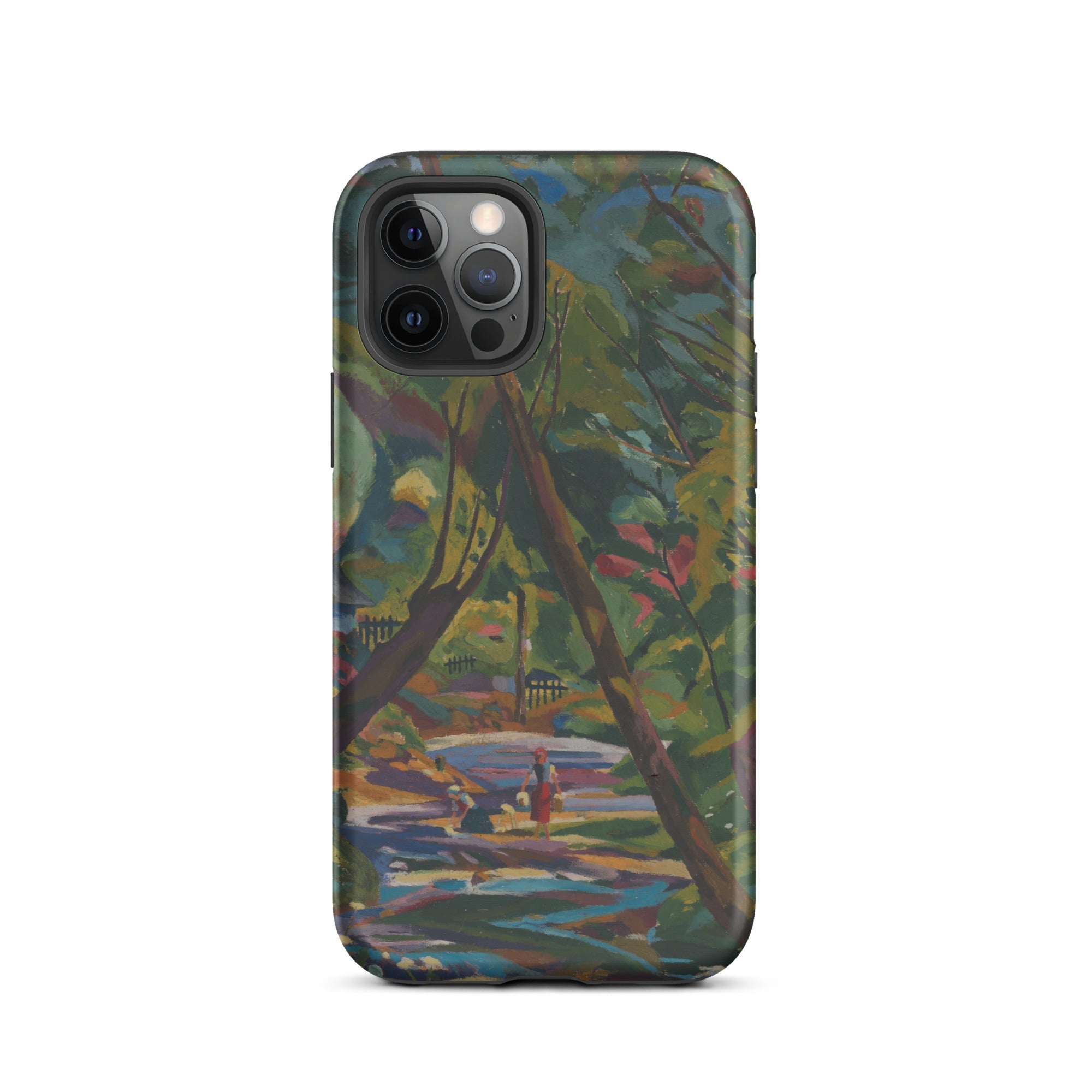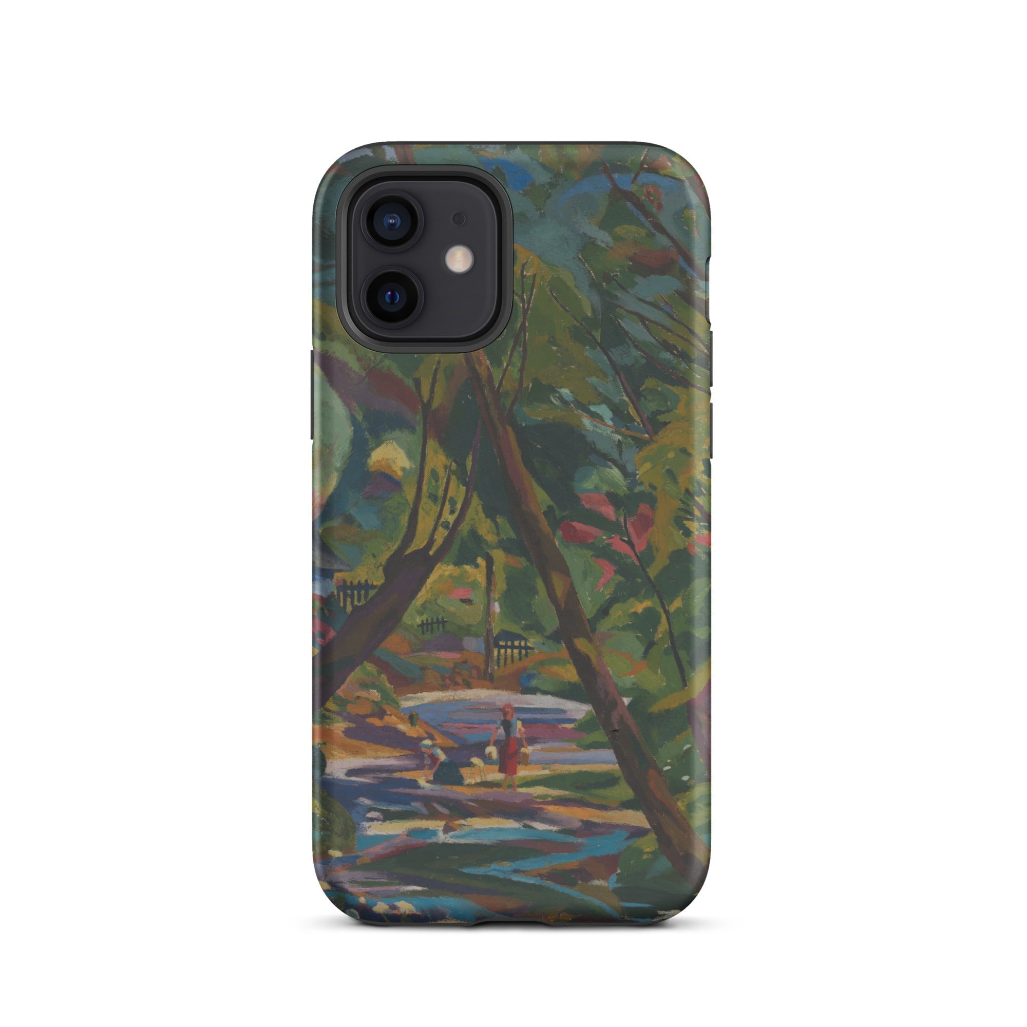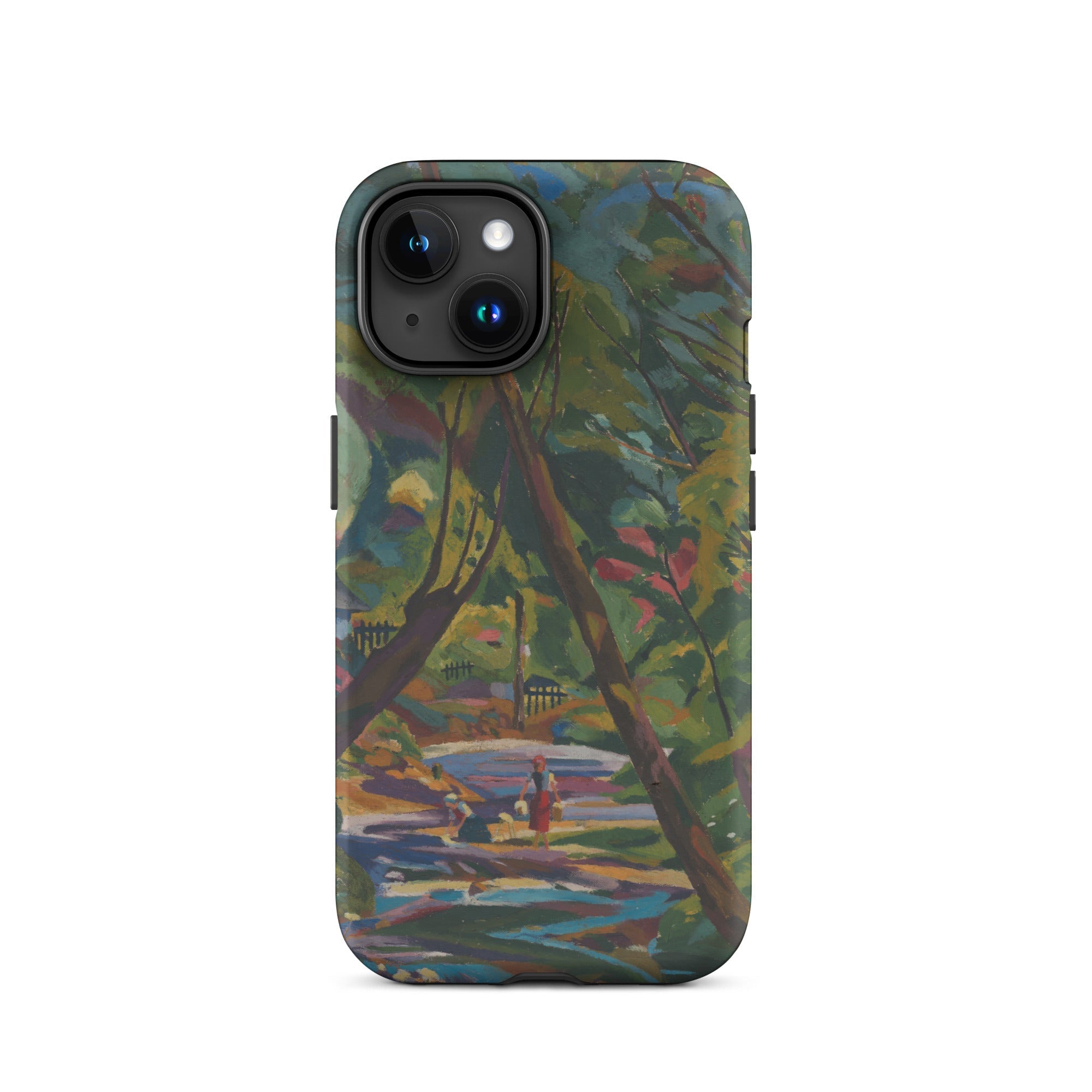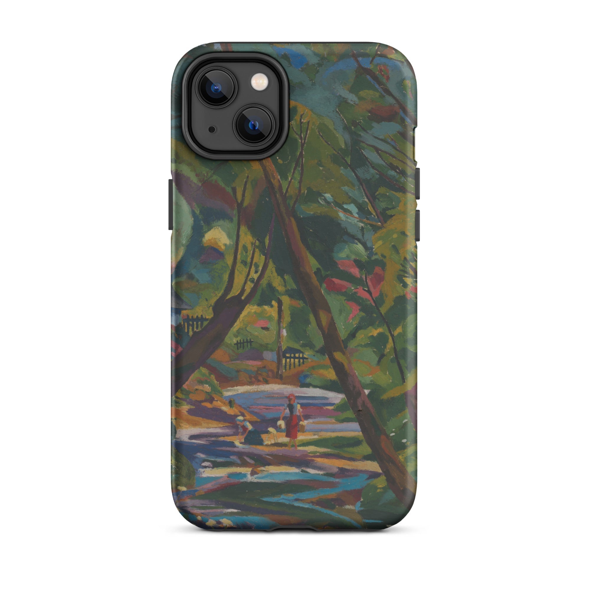 A river of color, a forest of untamed rhythm—Kubinsky Stream by Arnold Peter Weisz-Kubínčan spills across this Expressionist art iPhone case like a dream half-remembered. Verdant shadows pulse with energy, slashed by bold reds, fractured golds, and the cool hush of a winding stream. Figures linger at the water’s edge, ephemeral yet eternal, as if caught in the flickering light of a lost world.