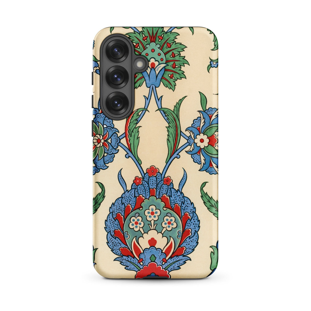 Émile Prisse d’Avennes recorded this motif during his 19th-century travels, translating architectural ornament into a portable visual archive. On this Samsung case, his work feels alive again—every line a trace of his hand, every color a nod to the pigments of ceramic glaze.