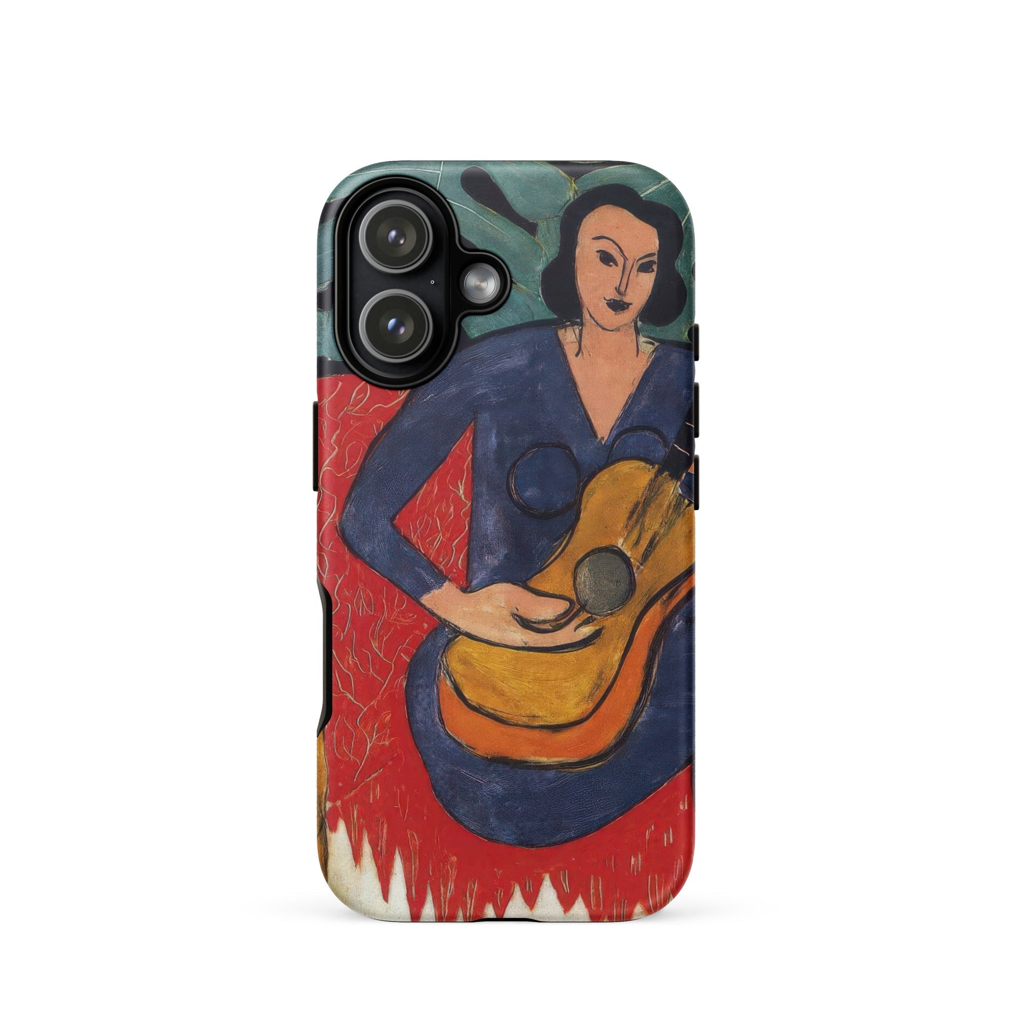 This Henri Matisse iPhone case captures La Musique in pure, physical tempo. Her guitar arcs like a second ribcage; ochre, flame, woodgrain flattened into Fauvist clarity. No shadows, no softness—only fierce edges where color meets rhythm.