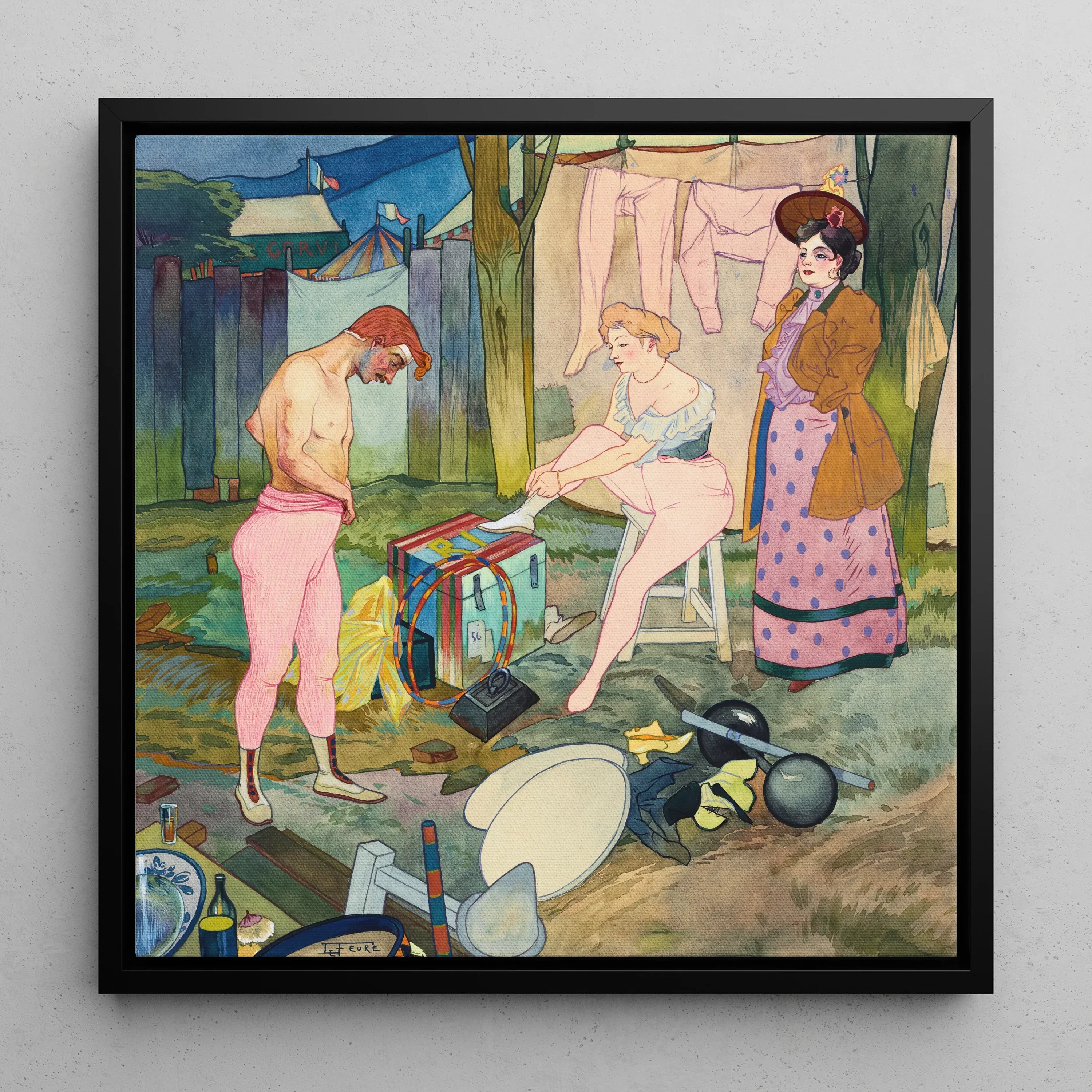 Step right into the sultry backstage of Belle Époque circus with this float framed canvas of Le Cirque Corvi. Georges de Feure's Art Nouveau masterpiece sizzles with fin-de-siècle decadence, transforming your wall into a portal to 1890s Parisian nightlife.