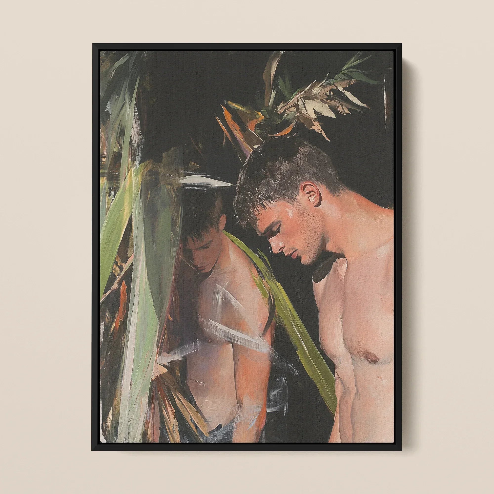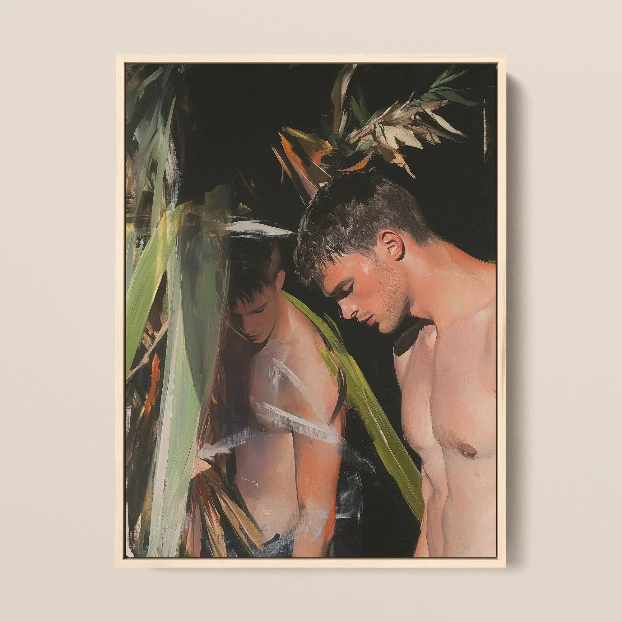 Just the unwashed throb of citrus-skinned men with nowhere to be except here, now, wrapped in each other's erotic future. Hang them where seduction needs no explanation—bathrooms, beach cabanas, altar-like ledges where wet bodies preach the gospel of head.