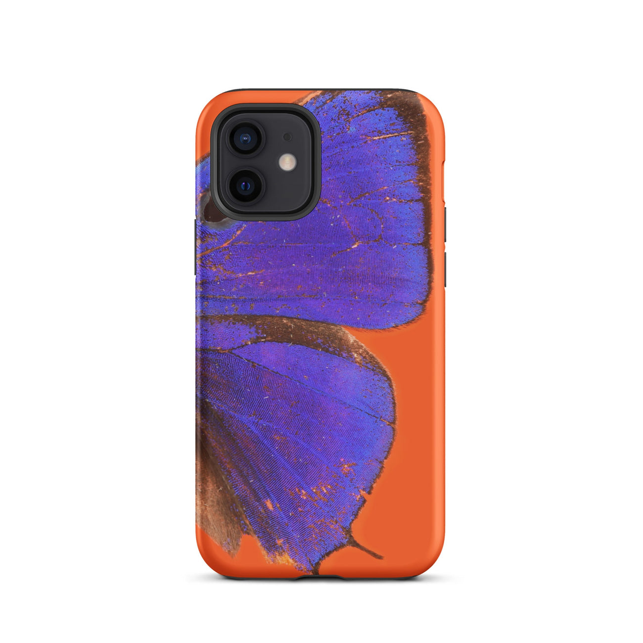 Half a butterfly, all blaze—this is what happens when the Morpho gods spill their drink across a vermillion sky. The wings don’t rest—they flare. Each vein glistens like graphite dragged over velvet. The wing, a bruised imperial violet veined in rust and cobalt, seems too tender for the touch. Yet it clings with ferocity to the burnt orange behind it. Chasing the call of a rainforest sunset, waiting to swaddle the wings of this indigo celestial.