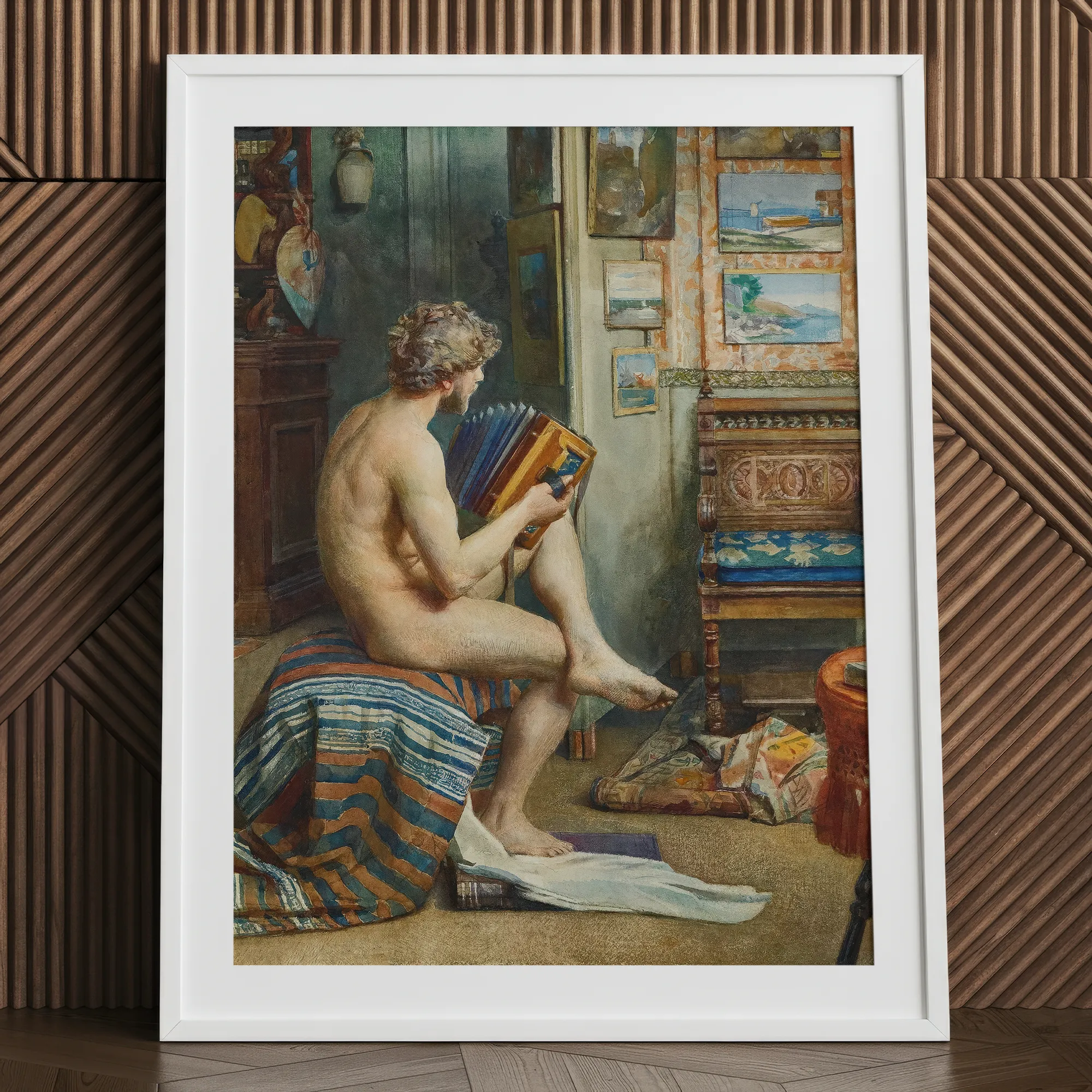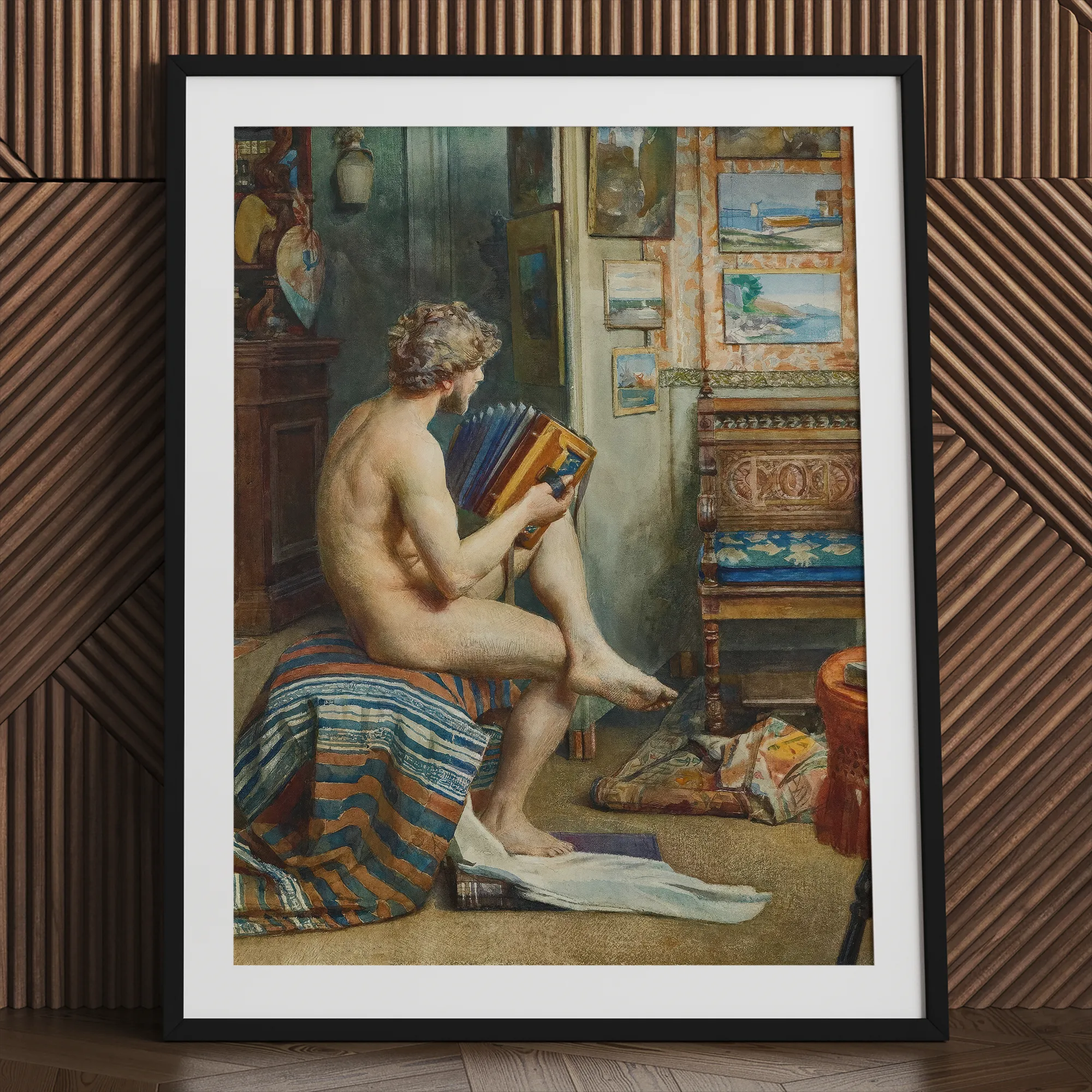 This painting isn't just nude portraiture; it's a love letter to the messy, glorious act of making art. It whispers of absinthe-soaked nights and paint-spattered dawns, of the intoxicating tango between creator and creation. Renevier doesn't just capture a moment; he bottles the very essence of artistic inspiration, served up with a wink and a squeeze of that enticing accordion.