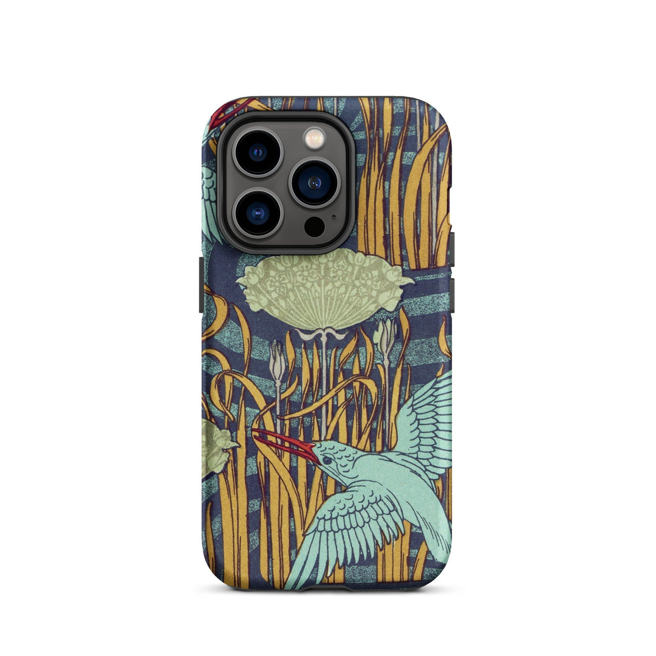 Dive into the aquatic realm of Maurice Pillard Verneuil's Martins-Pêcheurs with this eye-catching iPhone case. You'll flaunt a slice of Art Nouveau brilliance, where kingfishers and water lilies intertwine in a rhythmic dance of form and color.