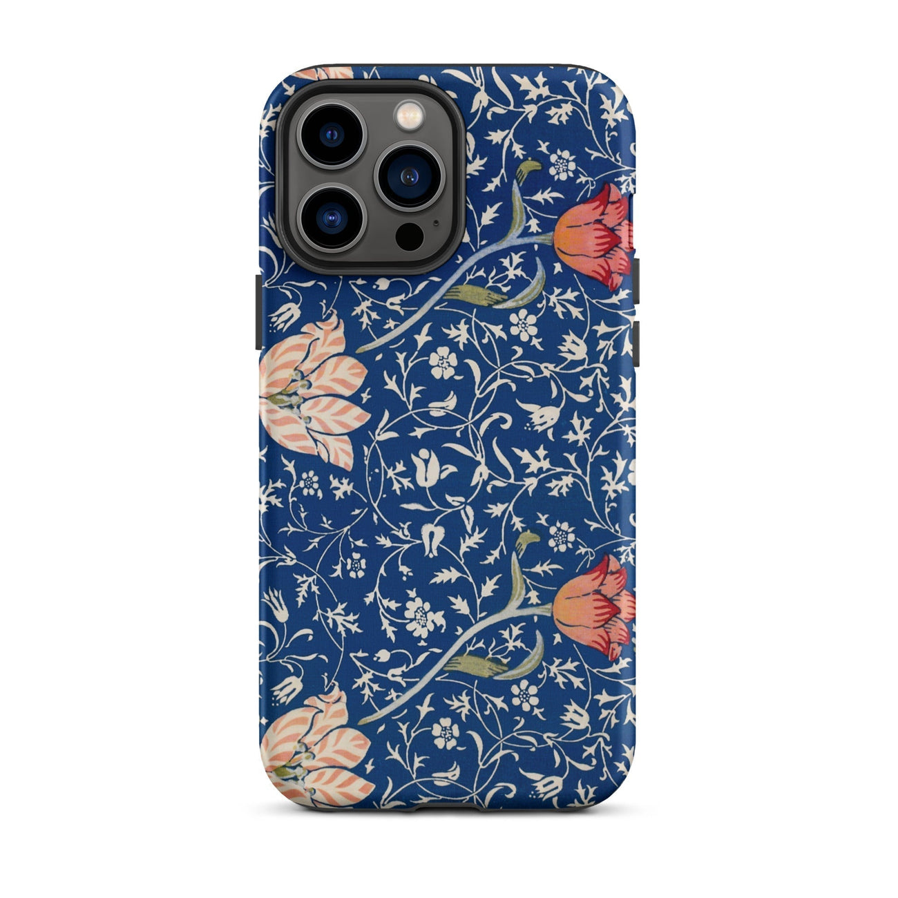 Transform your iPhone into a pocket-sized Victorian conservatory with this Medway case, where William Morris's horticultural wizardry blooms in the palm of your hand. This 1885 textile marvel, now adorning your digital companion, narrates tales of Arts and Crafts rebellion against industrial monotony. One where you're cradling a miniature indigo cosmos, where coral tulips and peachy blossoms perform an eternal waltz amidst pale, serpentine foliage.