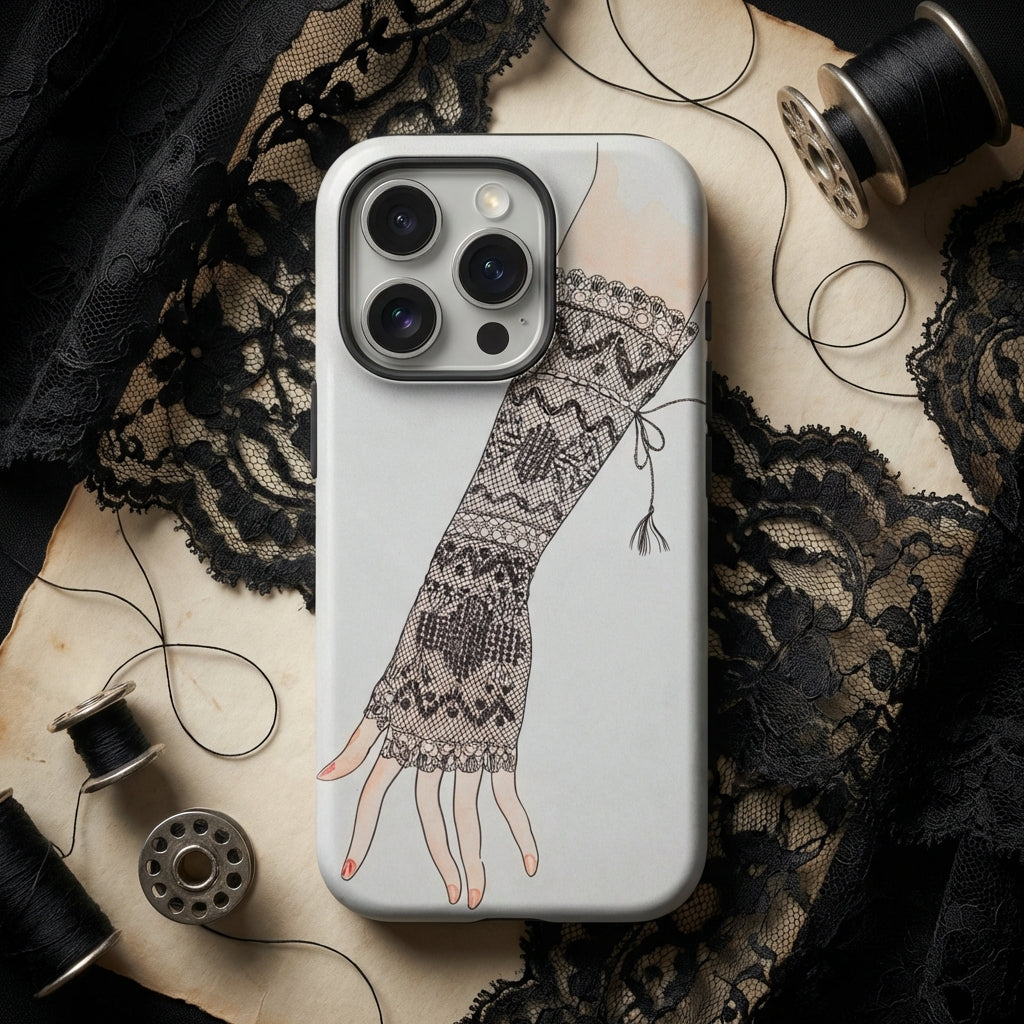 A whisper of lace, a trace of time—wrapped around your iPhone like a relic of forgotten elegance. A veil between past and present, where 1930s fashion artistry meets modern function. Lillian Causey’s meticulous rendering of a lace mitt, originally a watercolor for the Index of American Design, transforms your iPhone case into a portal of vintage refinement.
