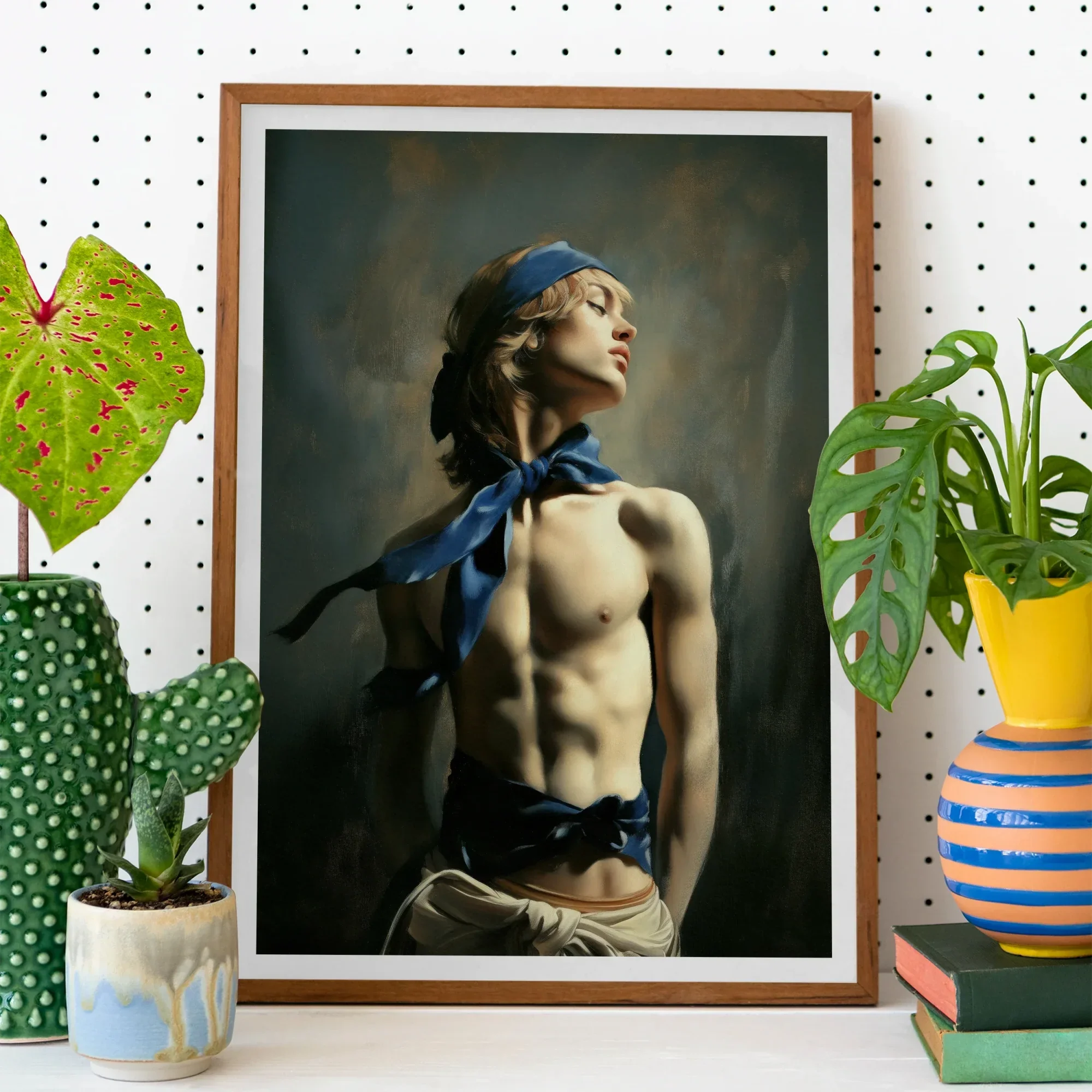 Hang this arresting portrait and let it transport you to realms of adventure and beauty. More than a sailor—Molly's a symbol of queer empowerment, a figure of sexual freedom and indulgence. Here, the Italian sailor transforms into something beyond myth, swept into the ether of homoerotic art history. Perfect for lovers of maritime art, Italian culture enthusiasts, and connoisseurs of the male form in fine art. This evocative piece breathes life into any space, igniting conversations and stirring the imagination.