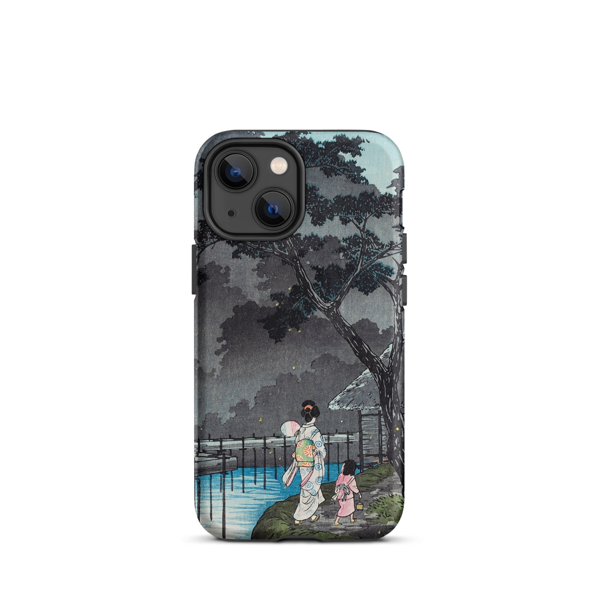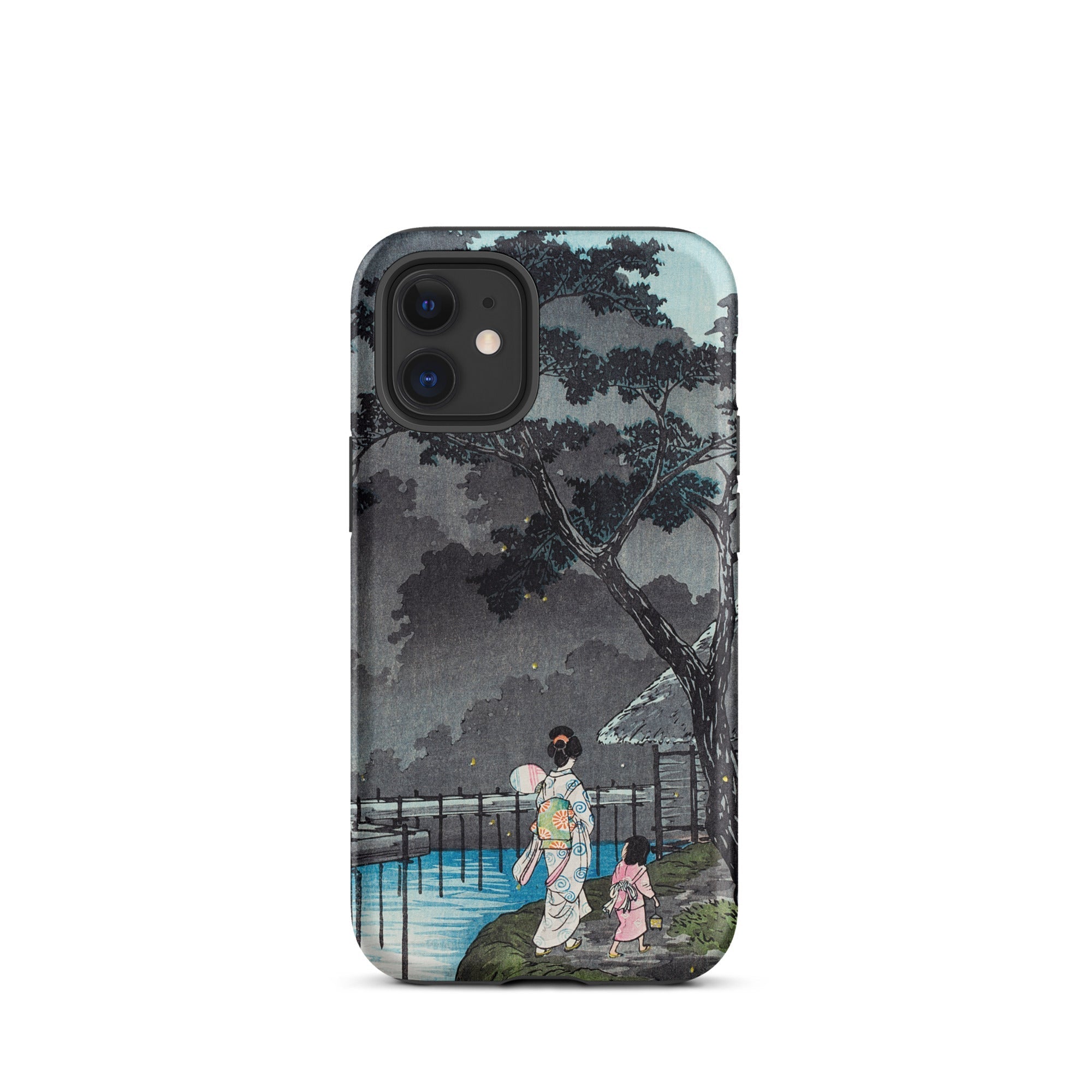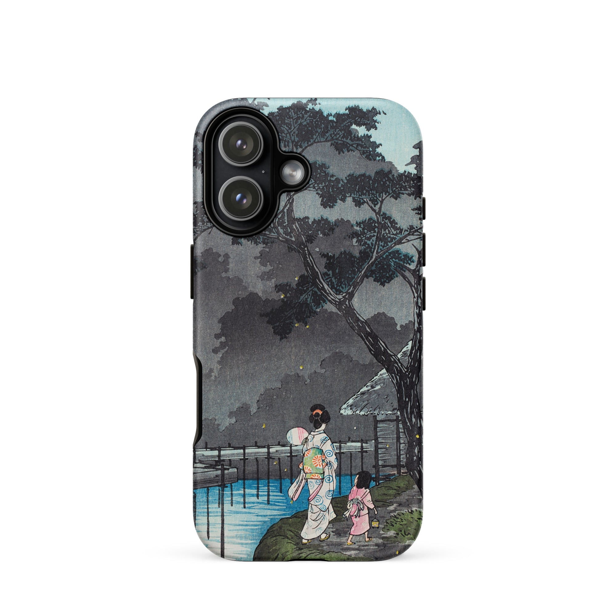 Moonlight spills like liquid silver over the quiet banks of Sekiguchi, where a mother and child walk beneath the hush of twilight. This iPhone case transforms Hiroaki Takahashi’s Shin-Hanga woodblock print into a portable masterpiece, rich in mono no aware—the fleeting sadness of beauty.
