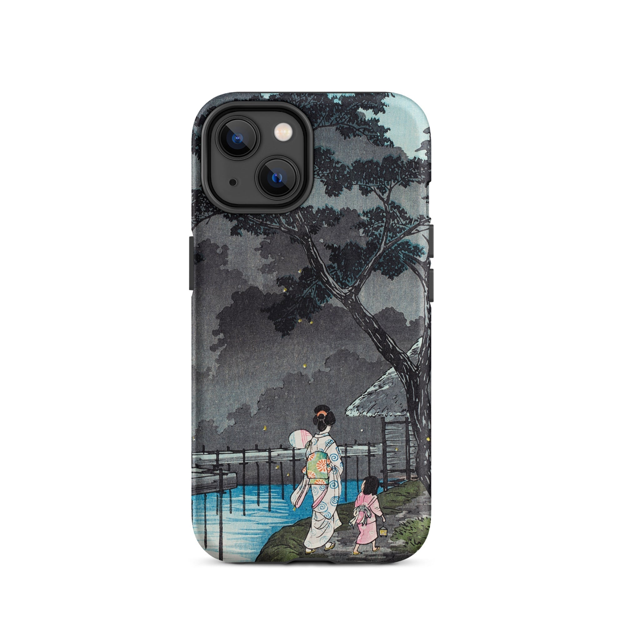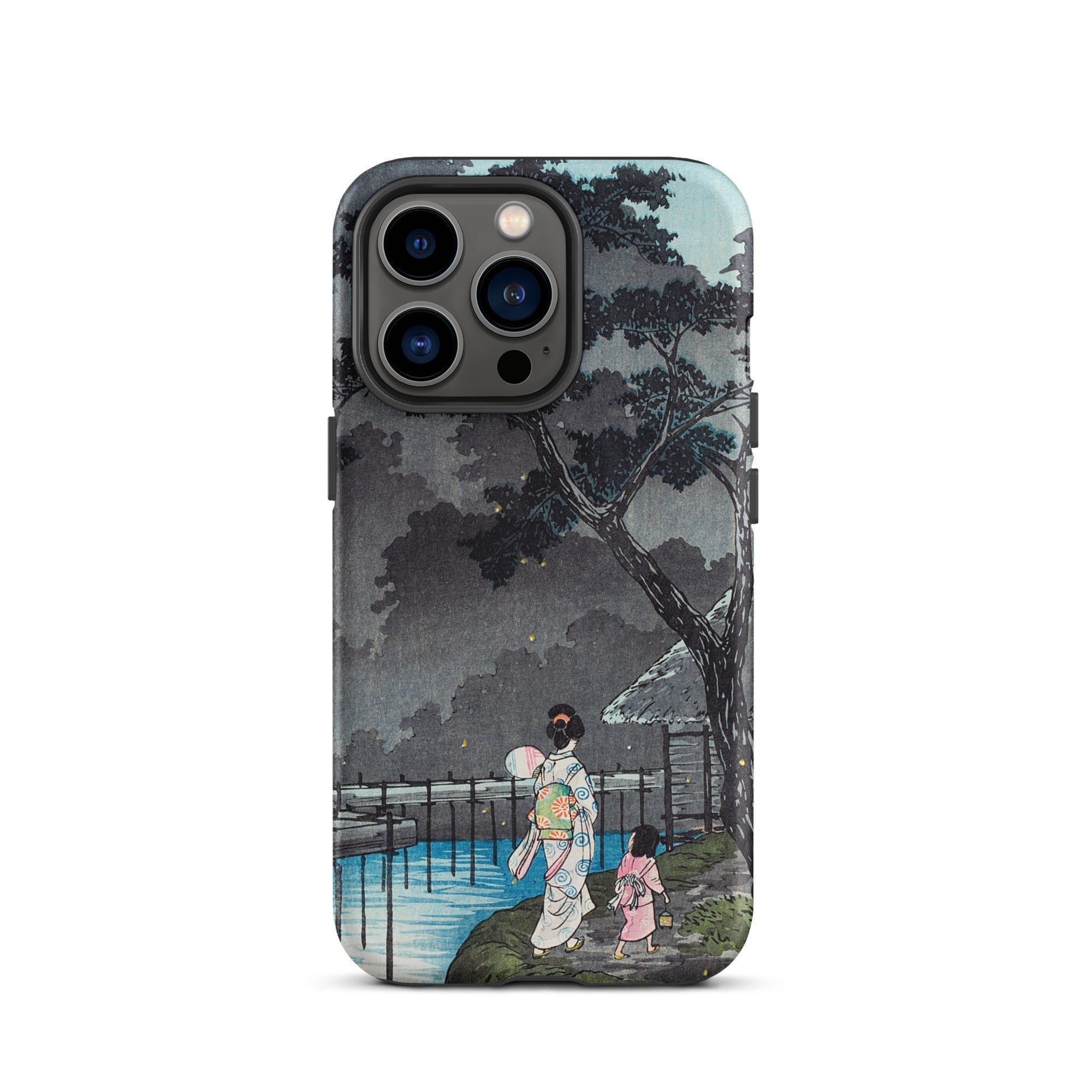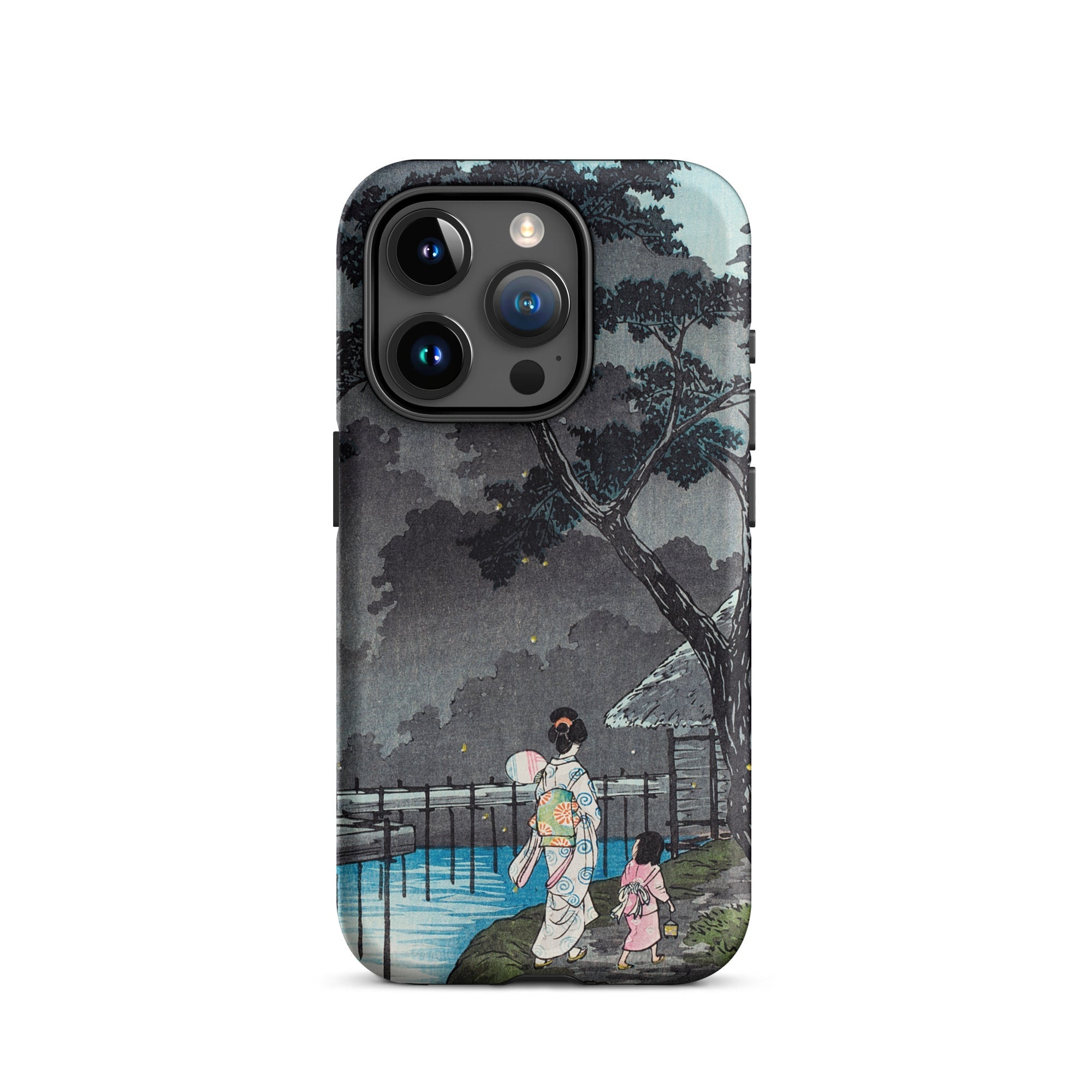 Moonlight spills like liquid silver over the quiet banks of Sekiguchi, where a mother and child walk beneath the hush of twilight. This iPhone case transforms Hiroaki Takahashi’s Shin-Hanga woodblock print into a portable masterpiece, rich in mono no aware—the fleeting sadness of beauty.