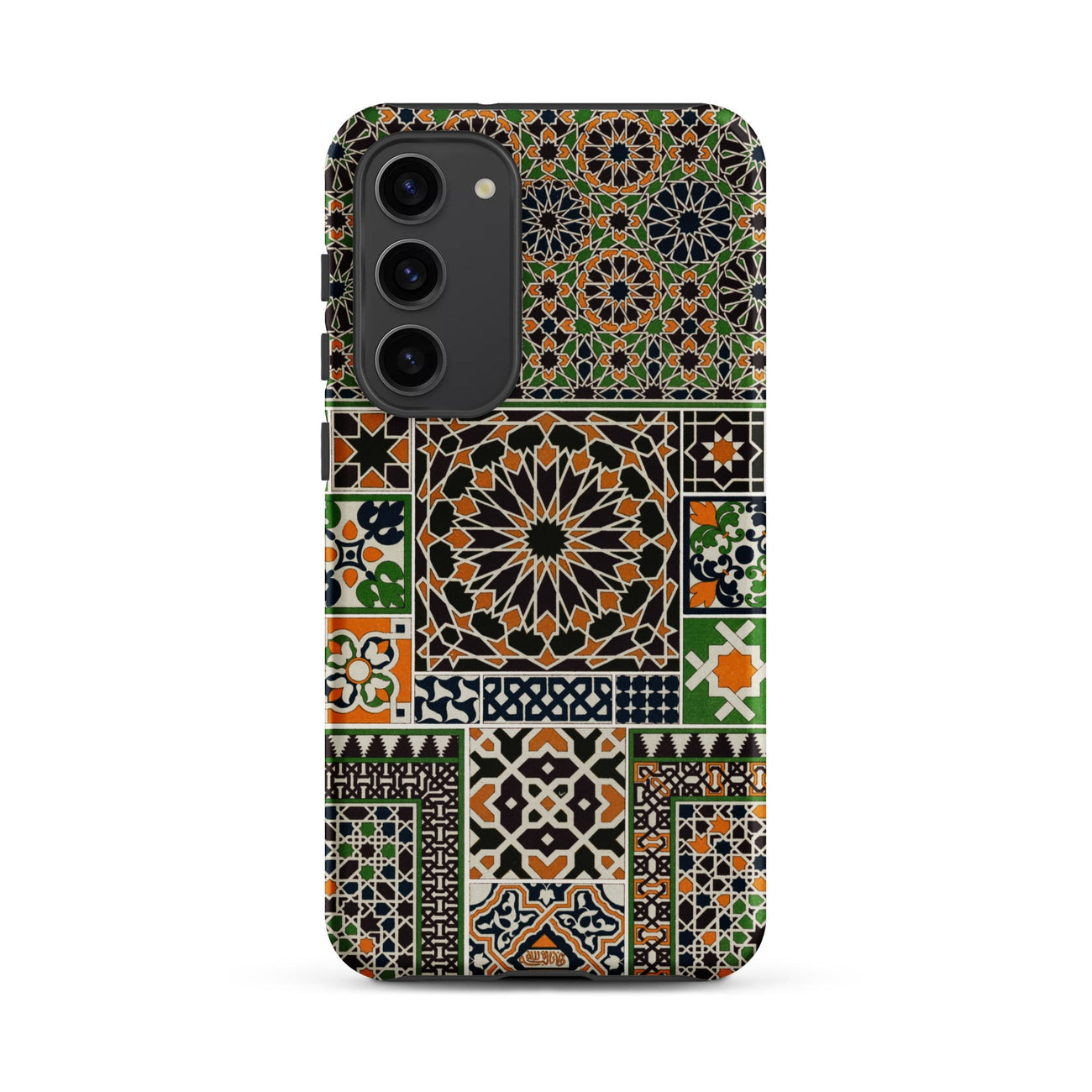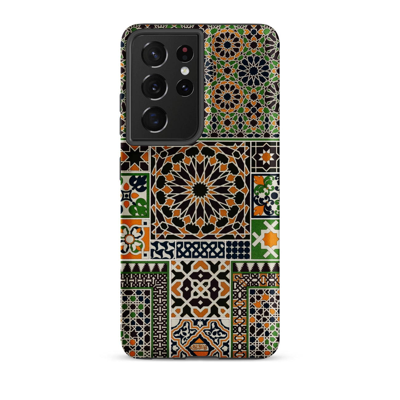 A kaleidoscope of interlaced stars and floral mosaics, this Auguste Racinet Moorish pattern wraps your Samsung in centuries of Andalusian mastery. Burnt orange, deep navy, verdant green, and ivory collide in precise tessellations. Each tile a memory of palace courtyards, cool fountains and carved cedar screens.