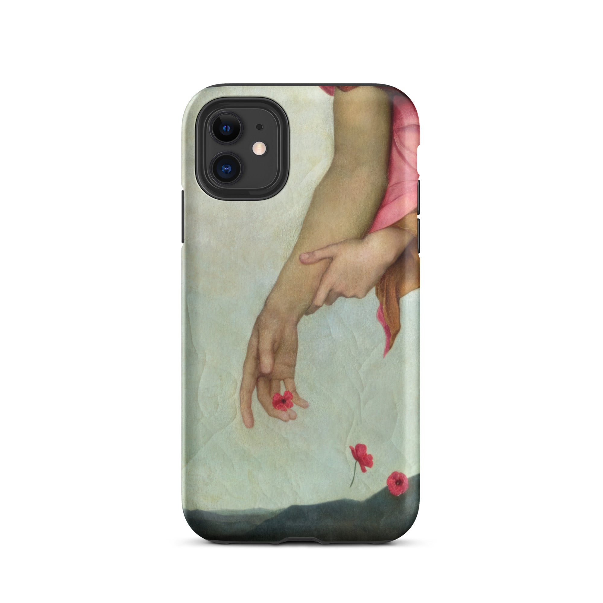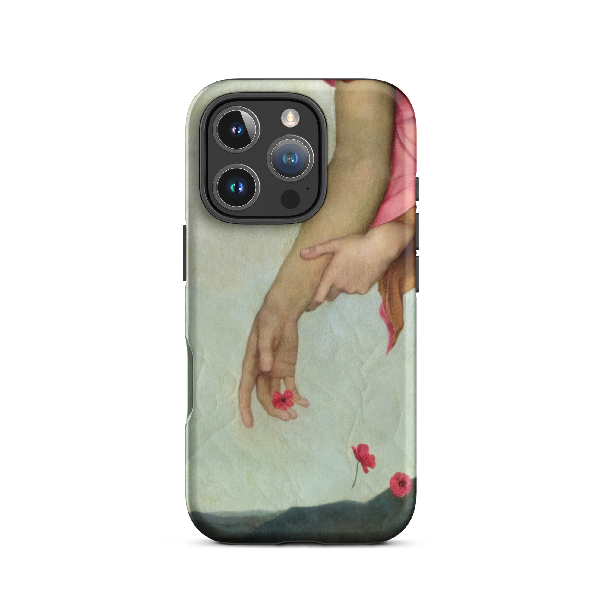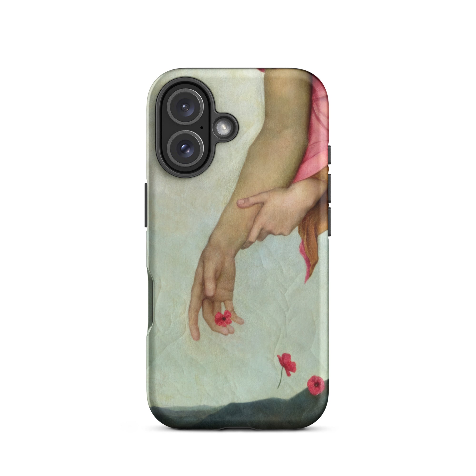 A twilight of touch—two hands, suspended in ceremony, one mid-fall, the other mid-thought—float above a quiet swell of darkened hills. This Evelyn De Morgan iPhone case captures a fragment of Night and Sleep, where myth is distilled not into grand gesture, but into the pause before it.