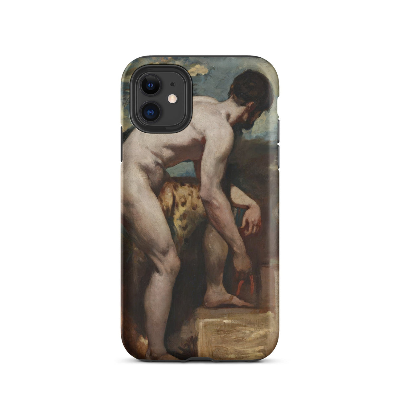 You crave visual seduction? Etty's Nude Man Tying His Sandal delivers. This iPhone case flaunts a masterpiece of flesh-rendered audacity. Muscled contours ripple, caught mid-motion. Alabaster skin gleams, defying Victorian prudery. Etty's brushwork dances between academic precision and proto-Impressionist fervor.