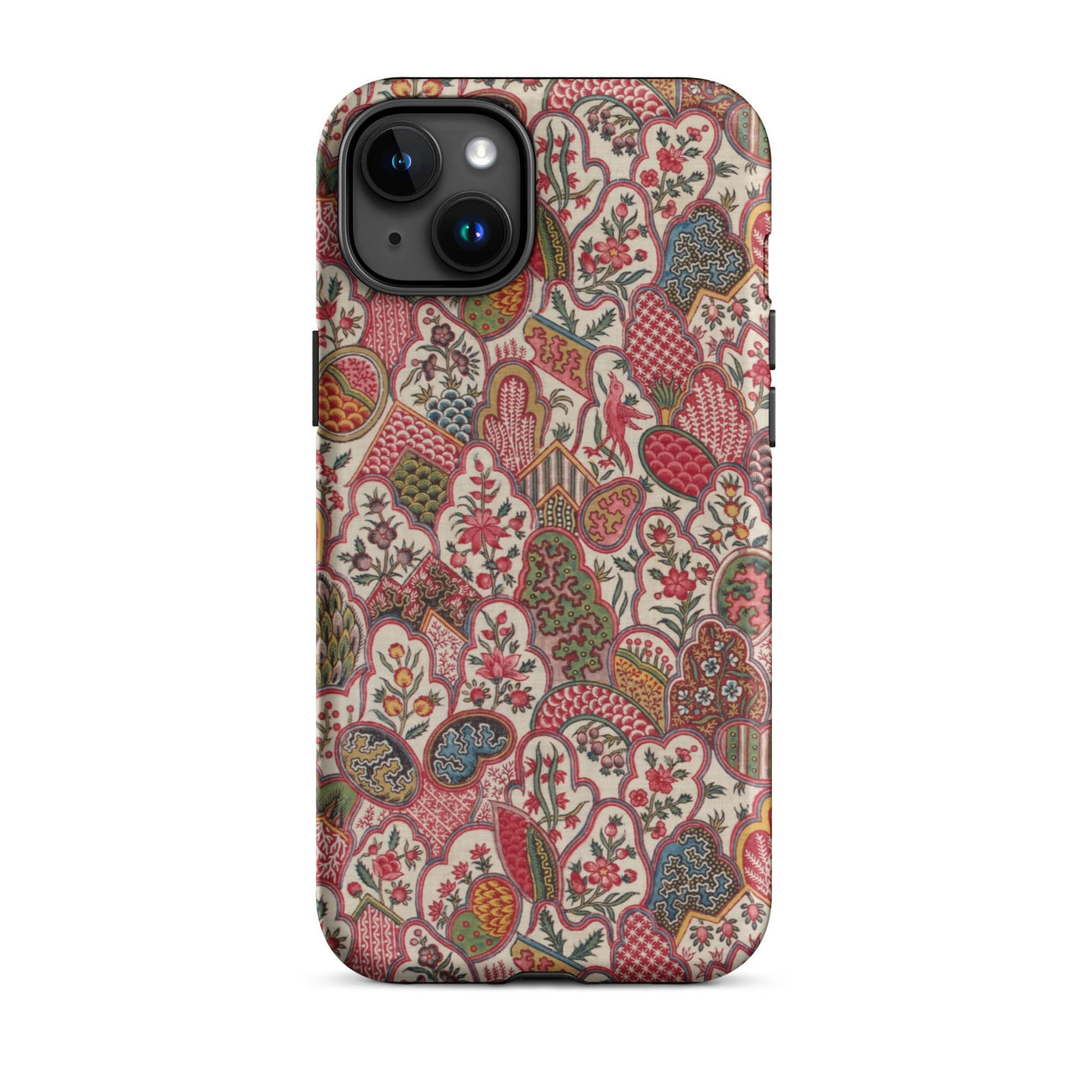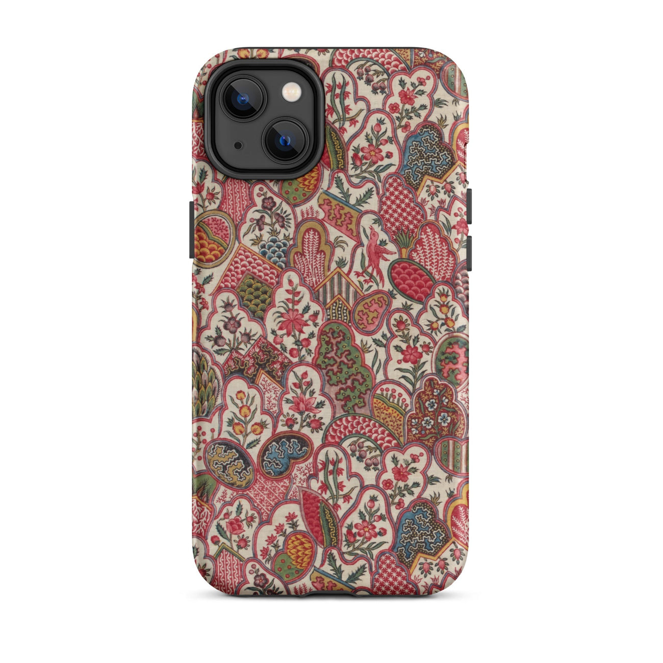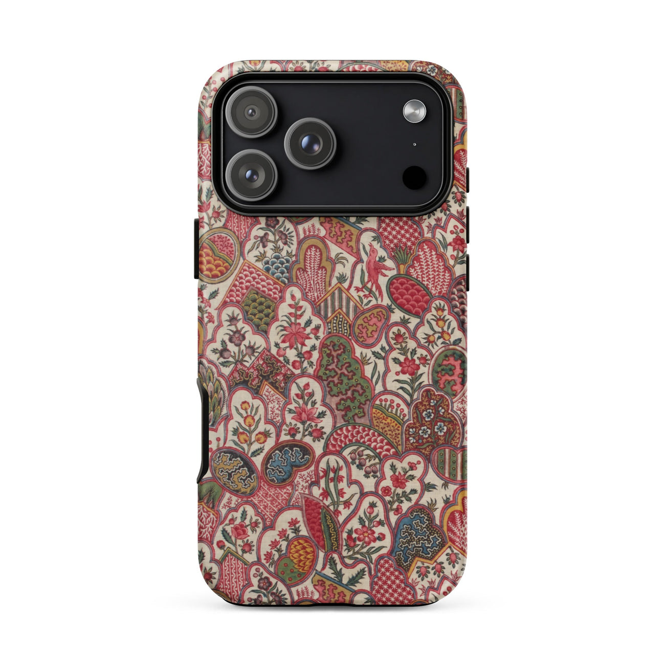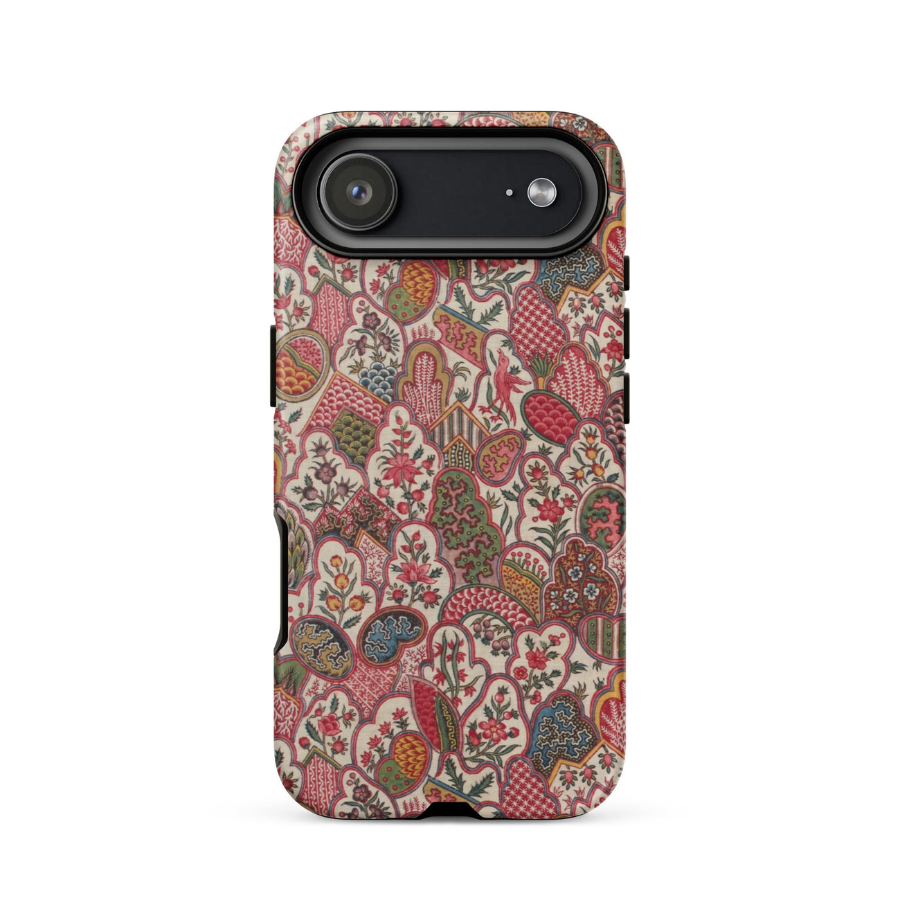 Drape your iPhone in the sartorial splendor of pre-Revolutionary France! This Oberkampf & Cie. vintage pattern iPhone case transforms your device into a pocket-sized salon, circa 1792. You'll be cradling a cornucopia of Rococo excess, where crimson blooms and indigo ferns tango across a creamy canvas.