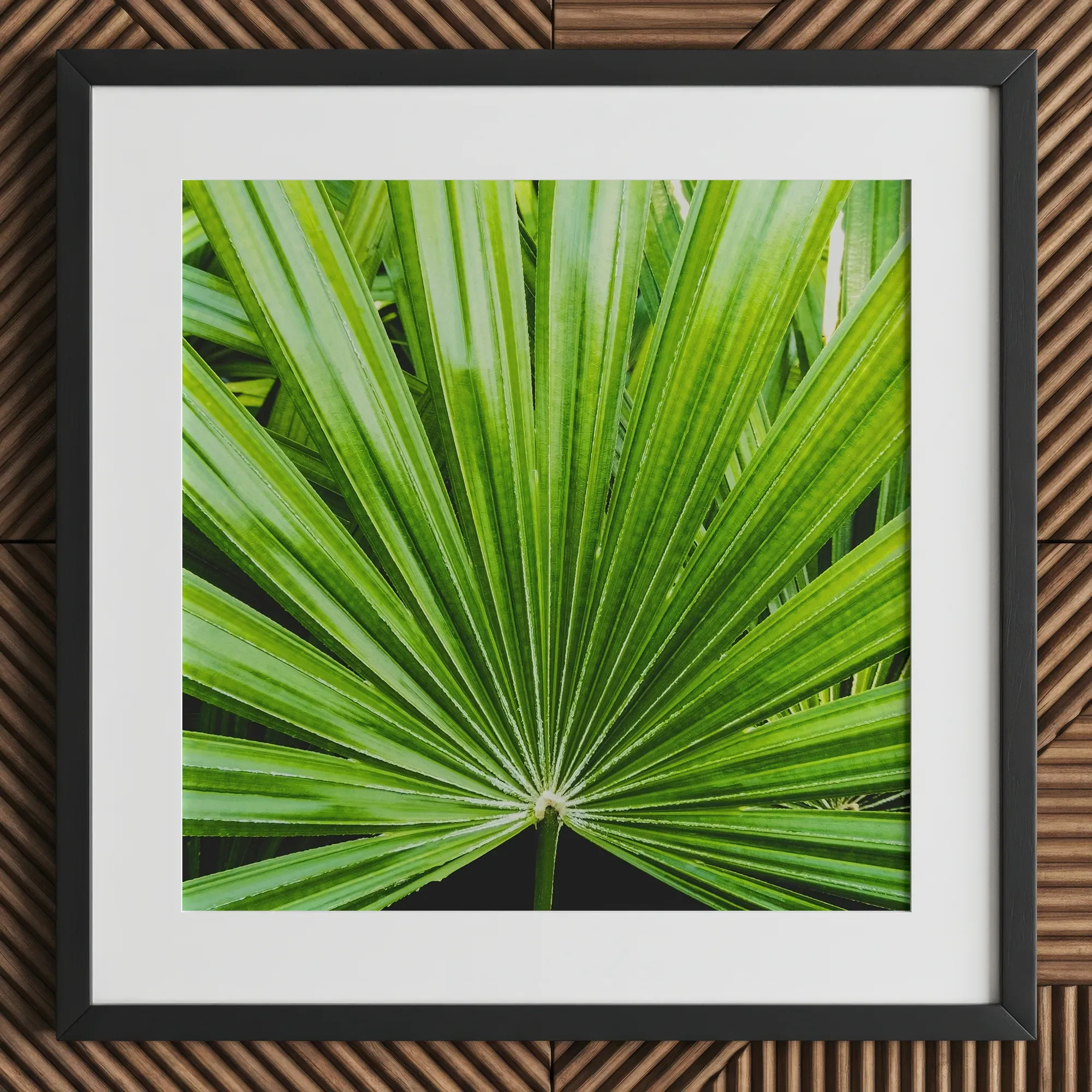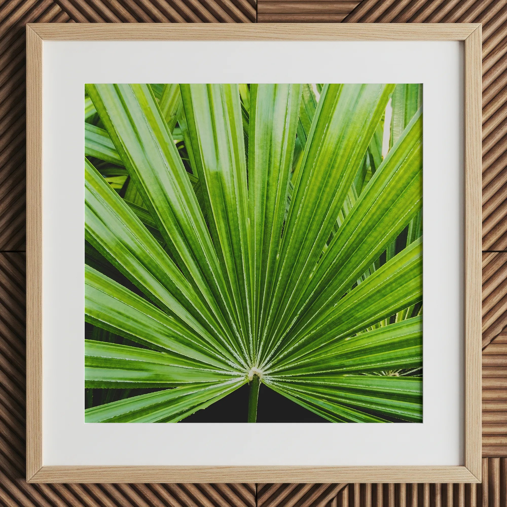 he radial palm frond, splaying out like a peacock's tail, beckons you to trace its every vein and contour. You'll find yourself lost in its mesmerizing labyrinth of lime and forest greens, each striation telling a story of island biodiversity. This photographic masterwork elevates humble flora to fine art status, capturing Thailand's lush essence with razor-sharp clarity.