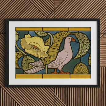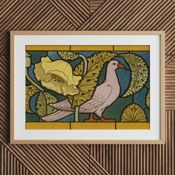 You'll marvel at the dove's curvaceous form, a stark contrast to the jagged poppy leaves that frame it. The artist's hand weaves a tapestry of nature and design, each brushstroke a rebellion against Victorian stuffiness. Verneuil's mastery of stylized flora and fauna will entrance you, the ochre and teal palette evoking the decadence of absinthe-soaked salons.