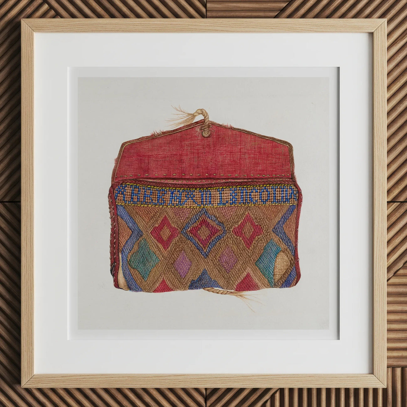 This retro handbag isn't just an accessory; it's a time capsule of Depression-era aesthetics. The beaded embellishments and rustic rope handle add textural intrigue, inviting your fingers to trace their contours. Hung in your boudoir or study, this decorative print will infuse your space with the romance of a bygone age.
