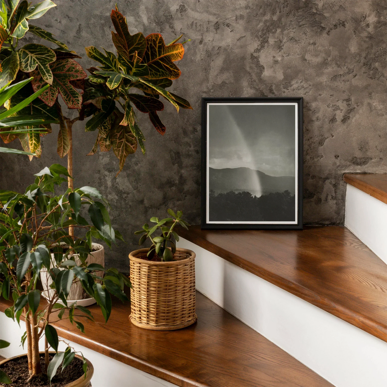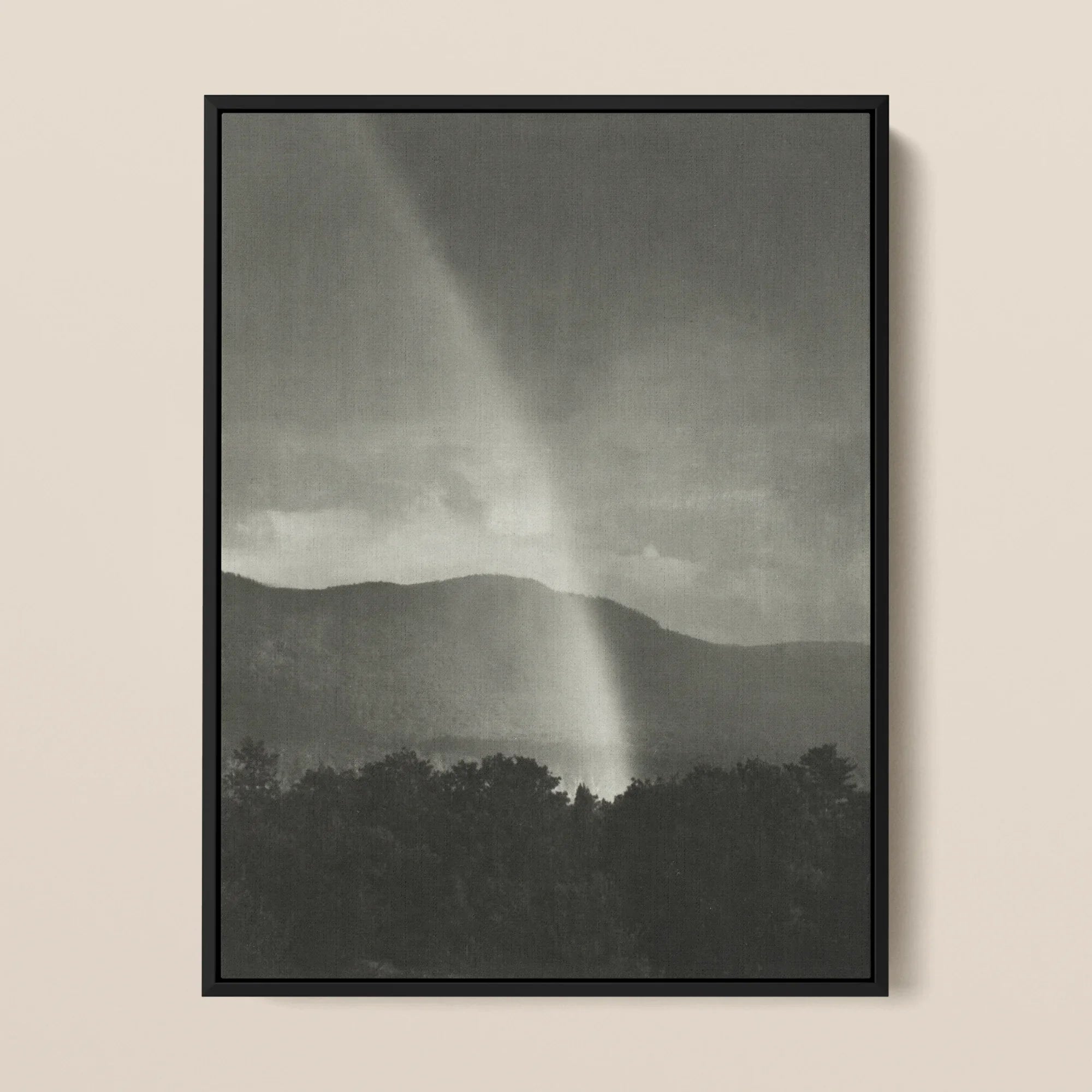 Immerse yourself in the ethereal beauty of Alfred Stieglitz's Rainbow (1920), a mesmerizing black and white photographic art print that captures nature's fleeting magic in monochrome. Transporting you to a moody lakeside scene where a luminous rainbow pierces through ominous storm clouds, creating a dramatic interplay of light and shadow.