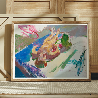 This foreshortened male nude keeps faith with Austrian Expressionism and the Nötscher Kreis, yet hums with modernist risk. Rose highlights flare at the mouth and hand, an umber undertone steadies the torso, a fuchsia swath lifts the air. Figure study becomes heat, turpentine wash becomes weather, and the whole scene feels freshly pulled from the board, still breathing color.