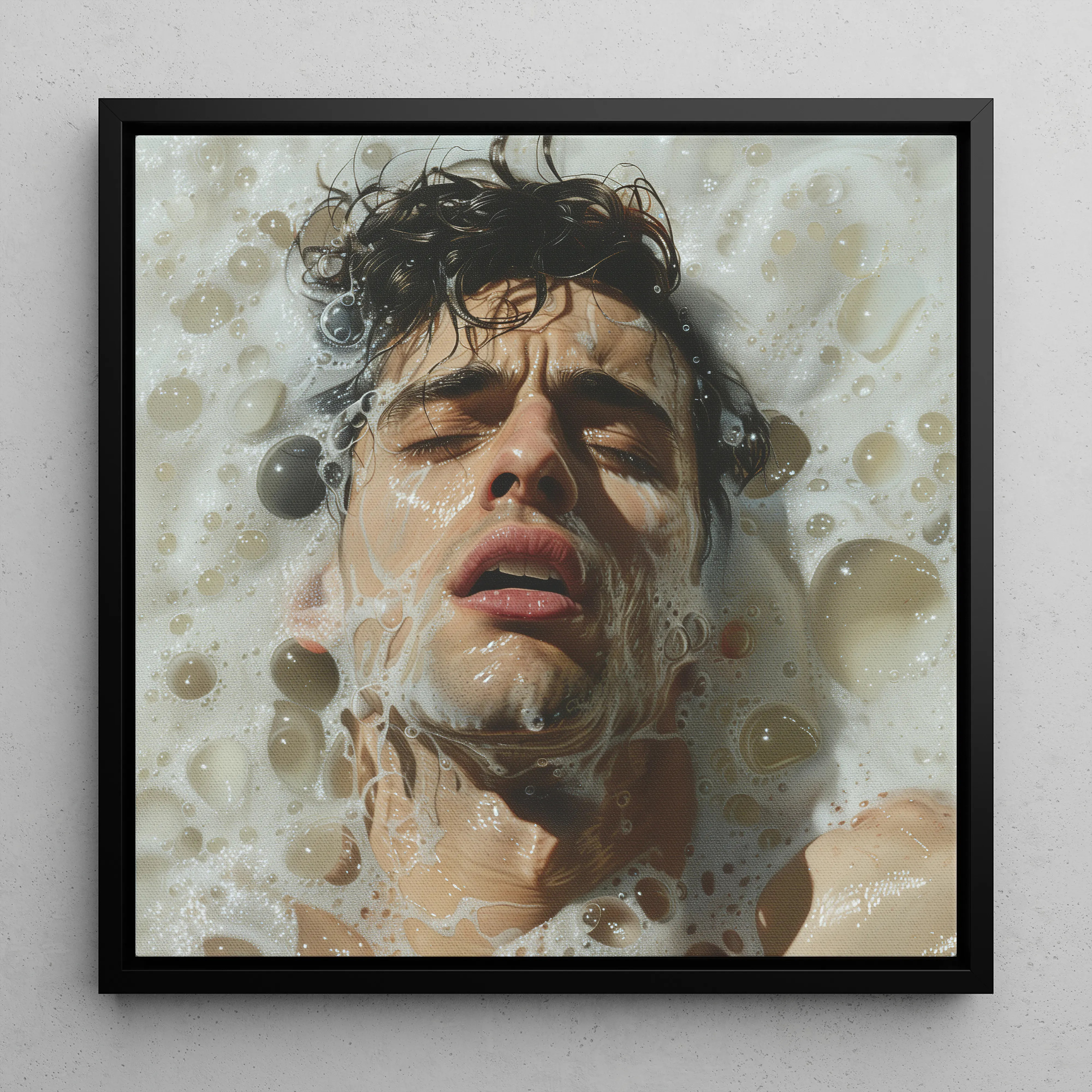 Under a cascade of warm sunlight, he grips le petit mort. Coming to enlightenment as he lays submerged in a liquid universe. Foam bubbles clinging to his salty skin. A crown of dark, tousled hair framing a visage of serenity and surrender. Eyes gently closed. Lips parted on the cusp of rebirth. The water's tender alchemy transforming this moment of release into a ritual of indulgence. Where each drop is a note played just for him. Humming with the sound of reckless abandon and the promise of escape...