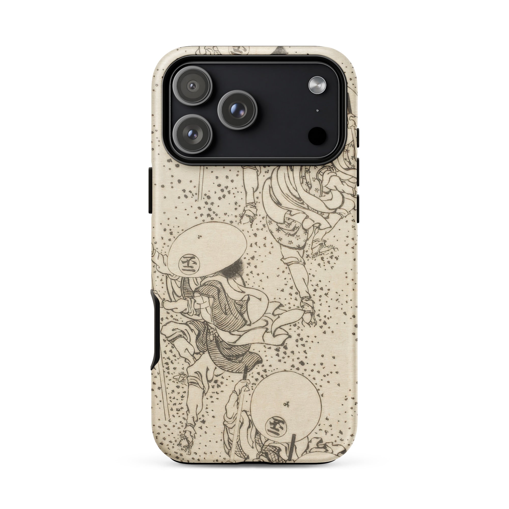 Hokusai’s linework curls like wind itself, folding into sleeves and back-plates, taut and unsteady. On this iPhone case, that moment—a sketch of failing control—becomes your armor. The snow becomes static. The print becomes motion. The brushstroke becomes bruise.