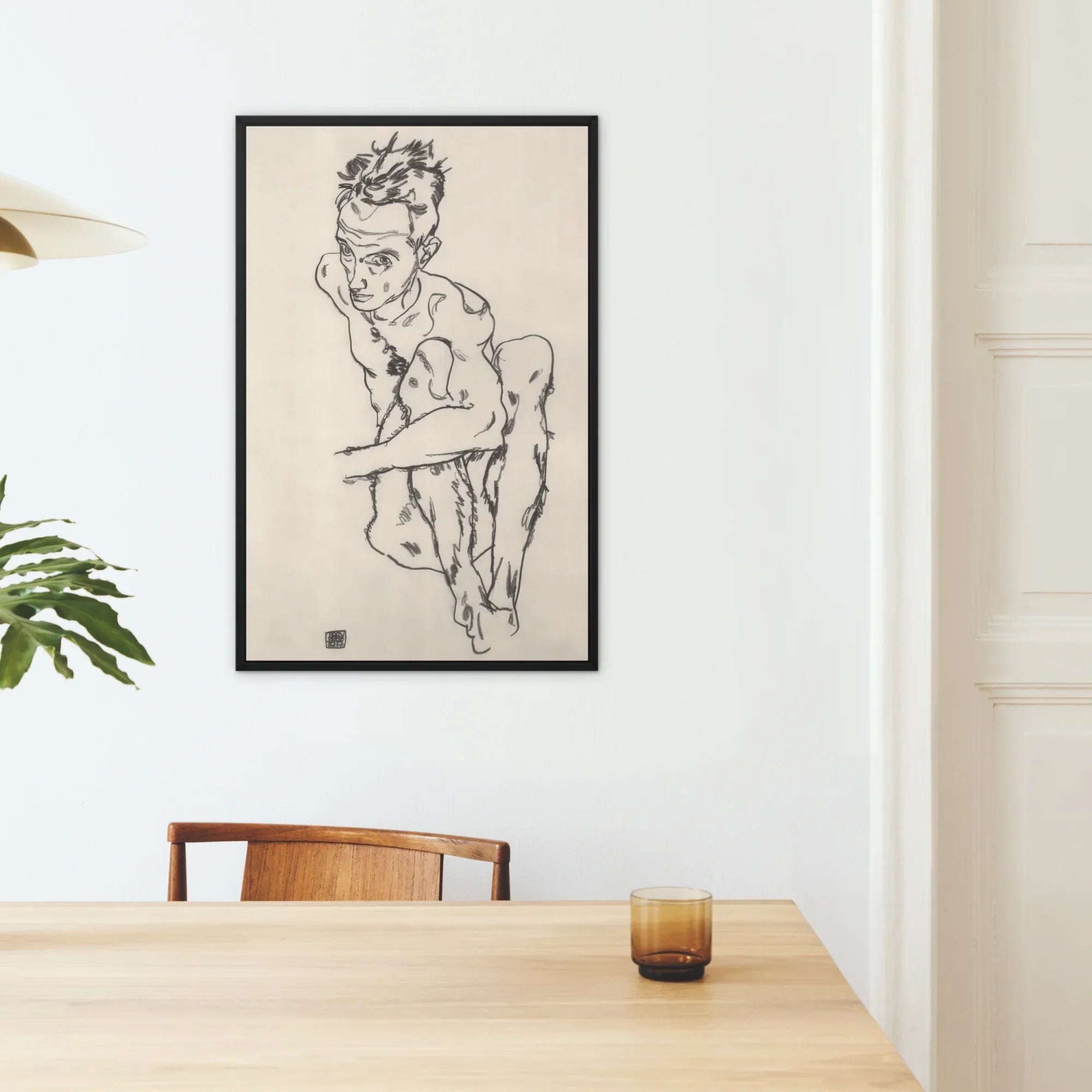 Seated Male Nude (Self-Portrait) - Egon Schiele Framed Canvas
