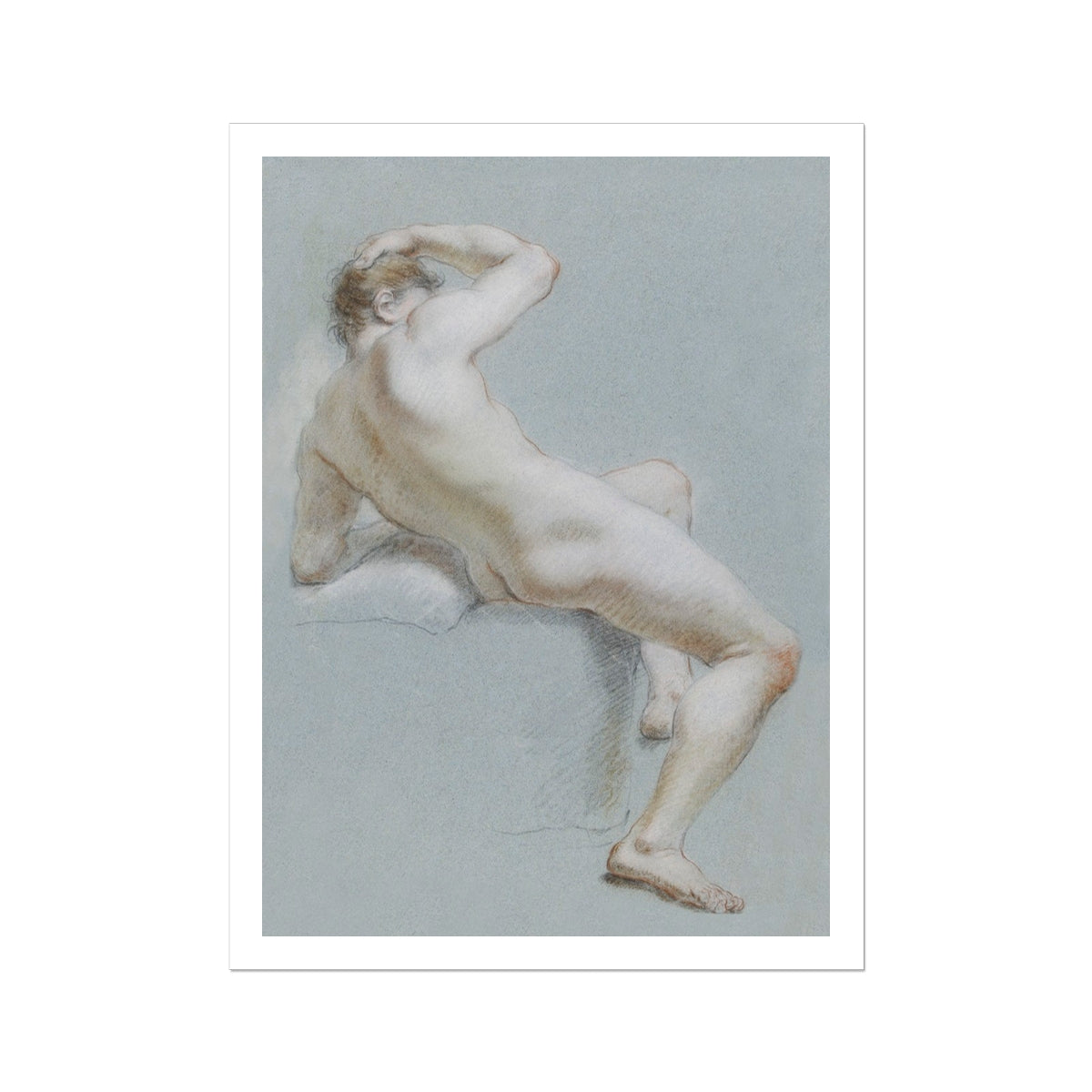 Draftsmanship rules here, from scapular ridge to gluteal plane to thigh anatomy. The classical training shows in the balanced rotation and quiet chiaroscuro, a figure sketch that turns close study into something enduring.