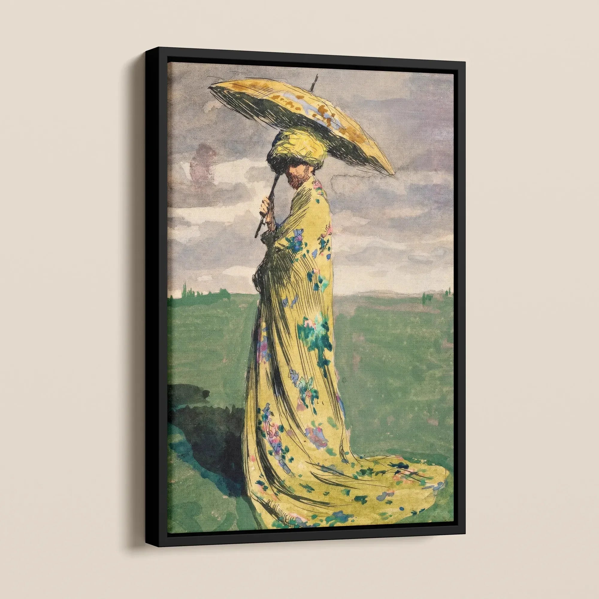 Self Caricature with Parasol - Max Švabinský Framed Canvas