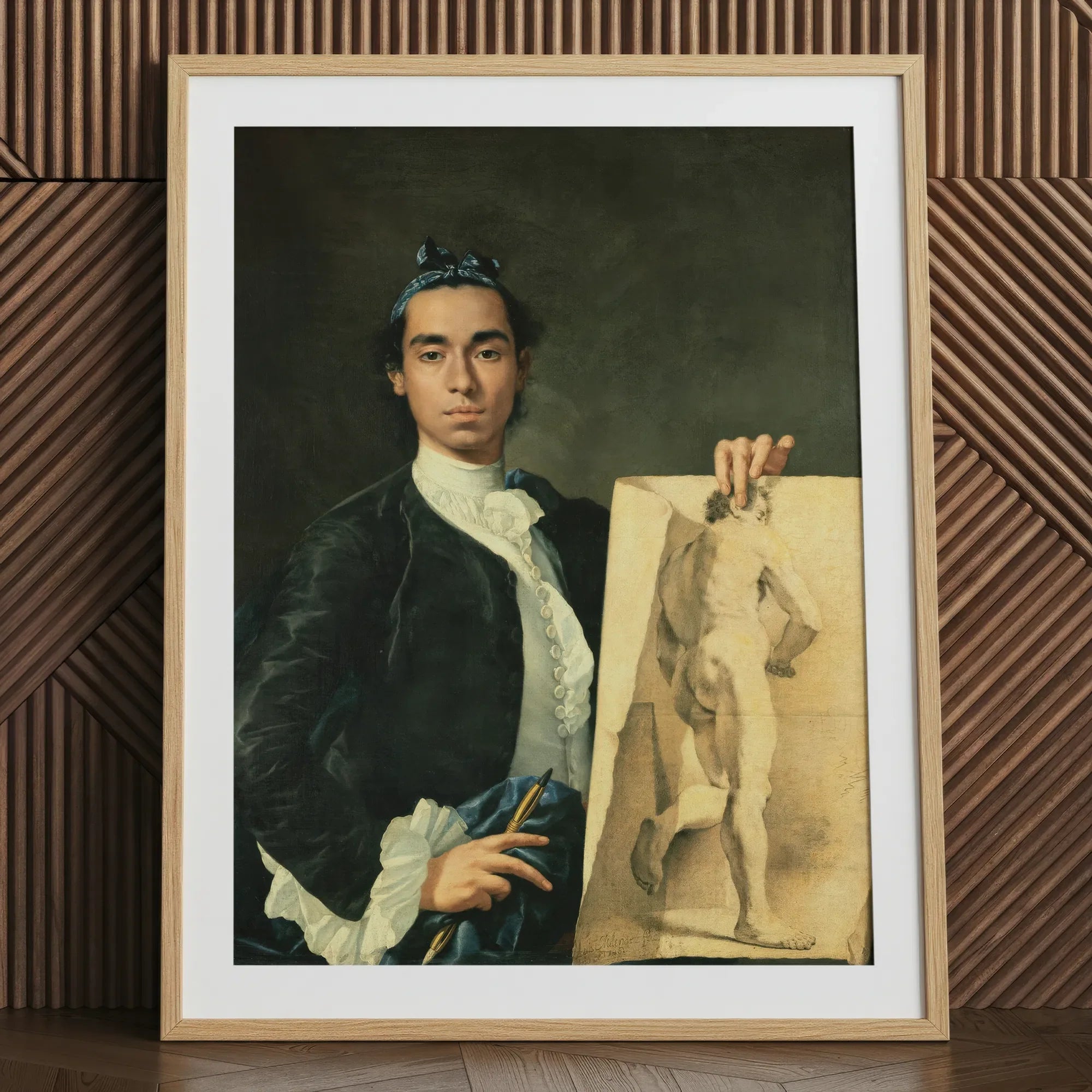 Self Portrait Holding a Nude Study - Luis Egidio Melendez Art Print