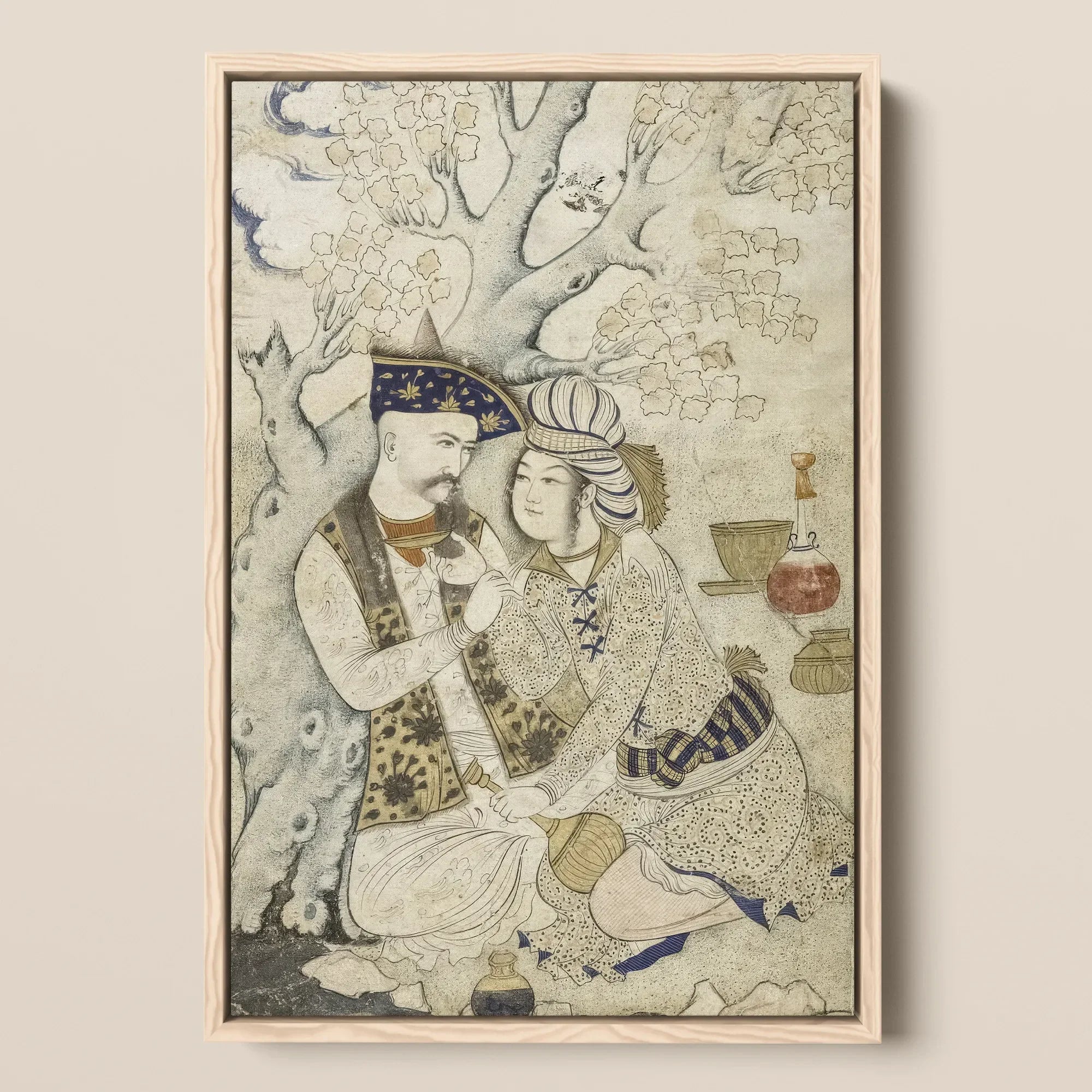 Shah Abbas and His Page - Muhammad Qasim Musavvir Framed Canvas