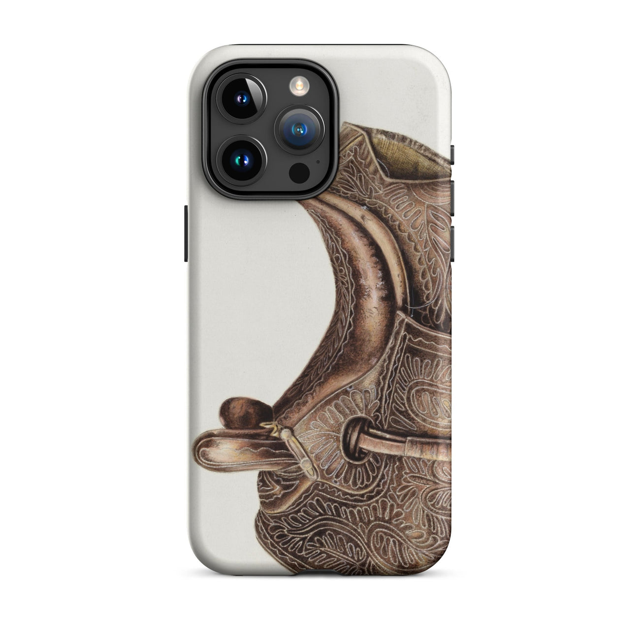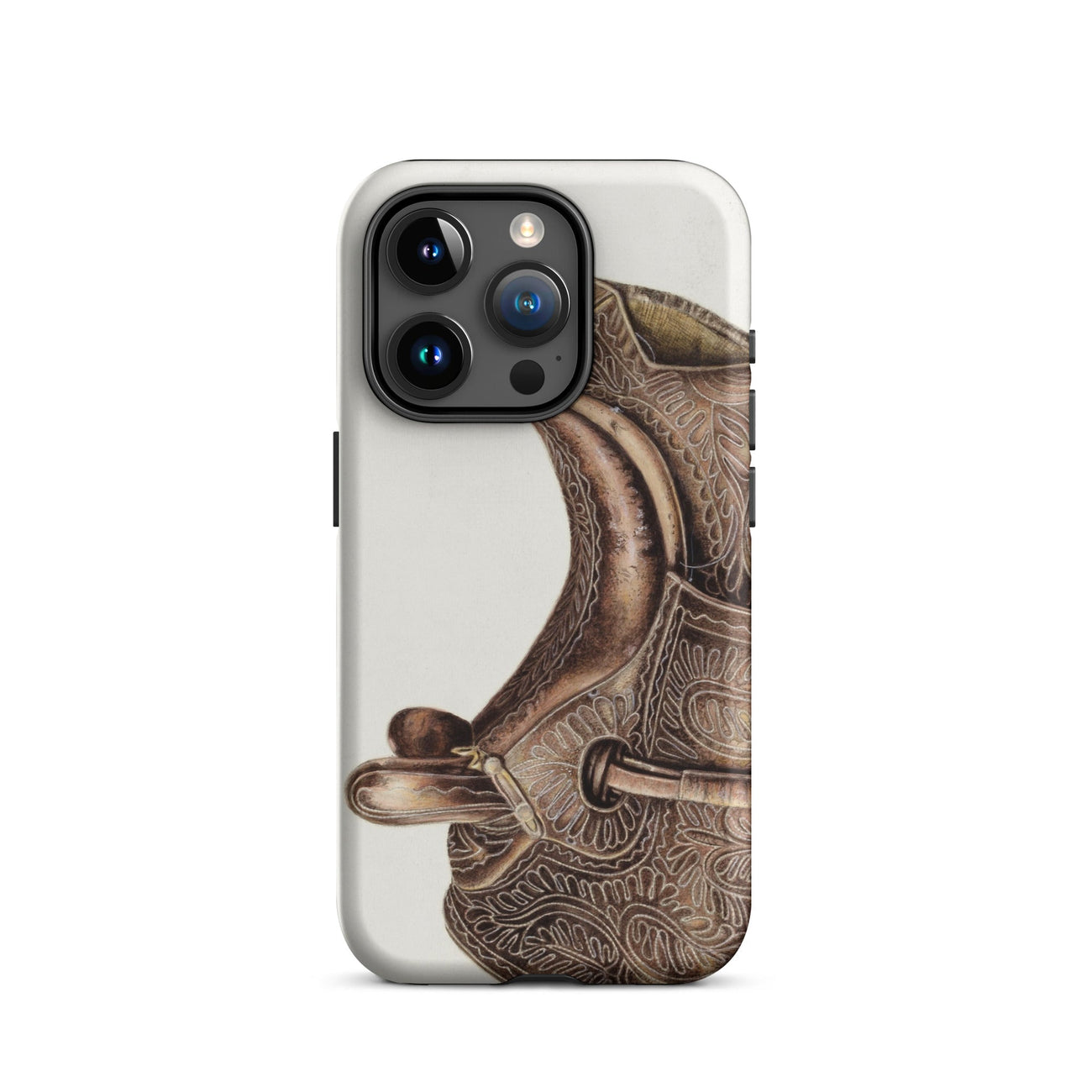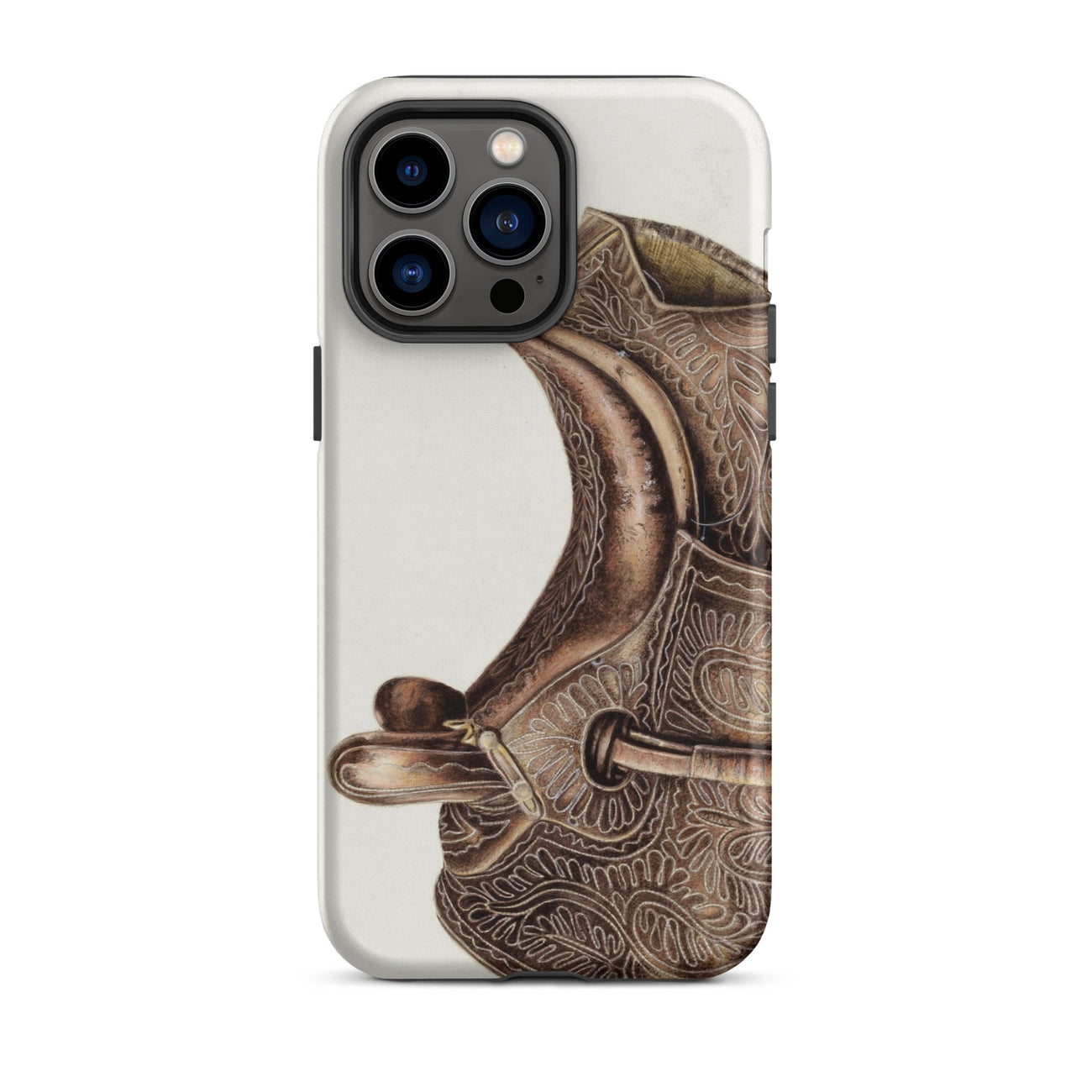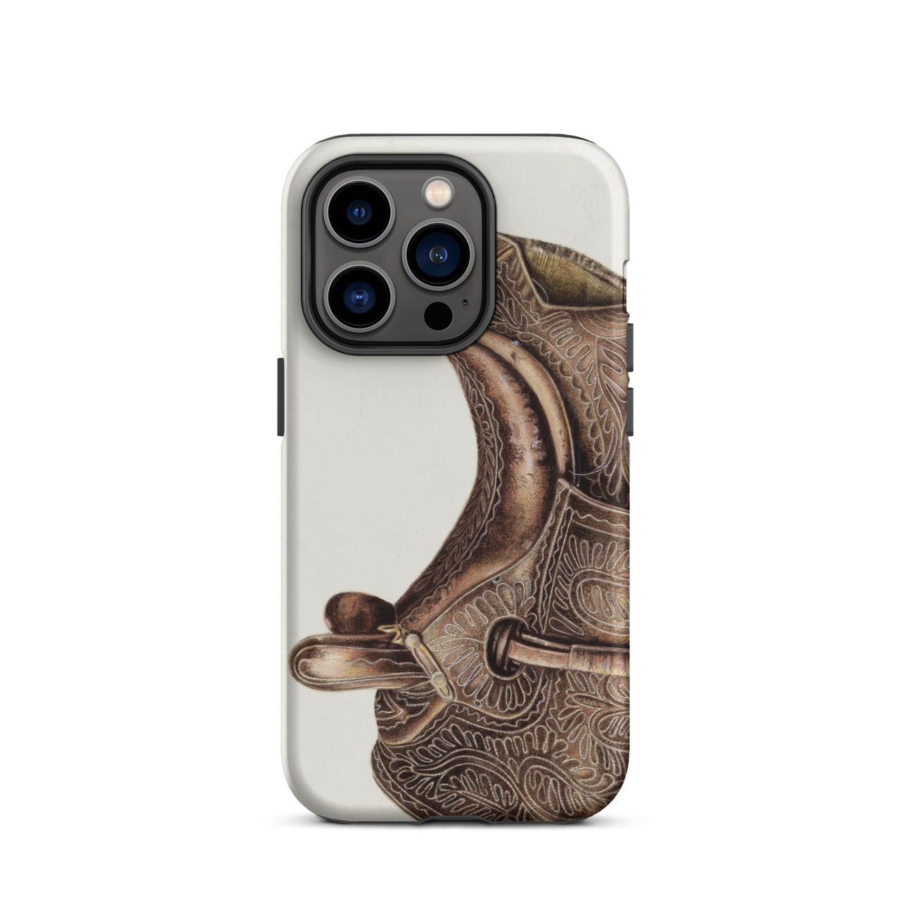This iPhone case is a portal to equestrian heritage, where artistry meets tradition. Bertha Semple’s masterful depiction of an antique side saddle breathes life into equestrian tack design, every ornate leather engraving whispering of past rides and poised elegance.